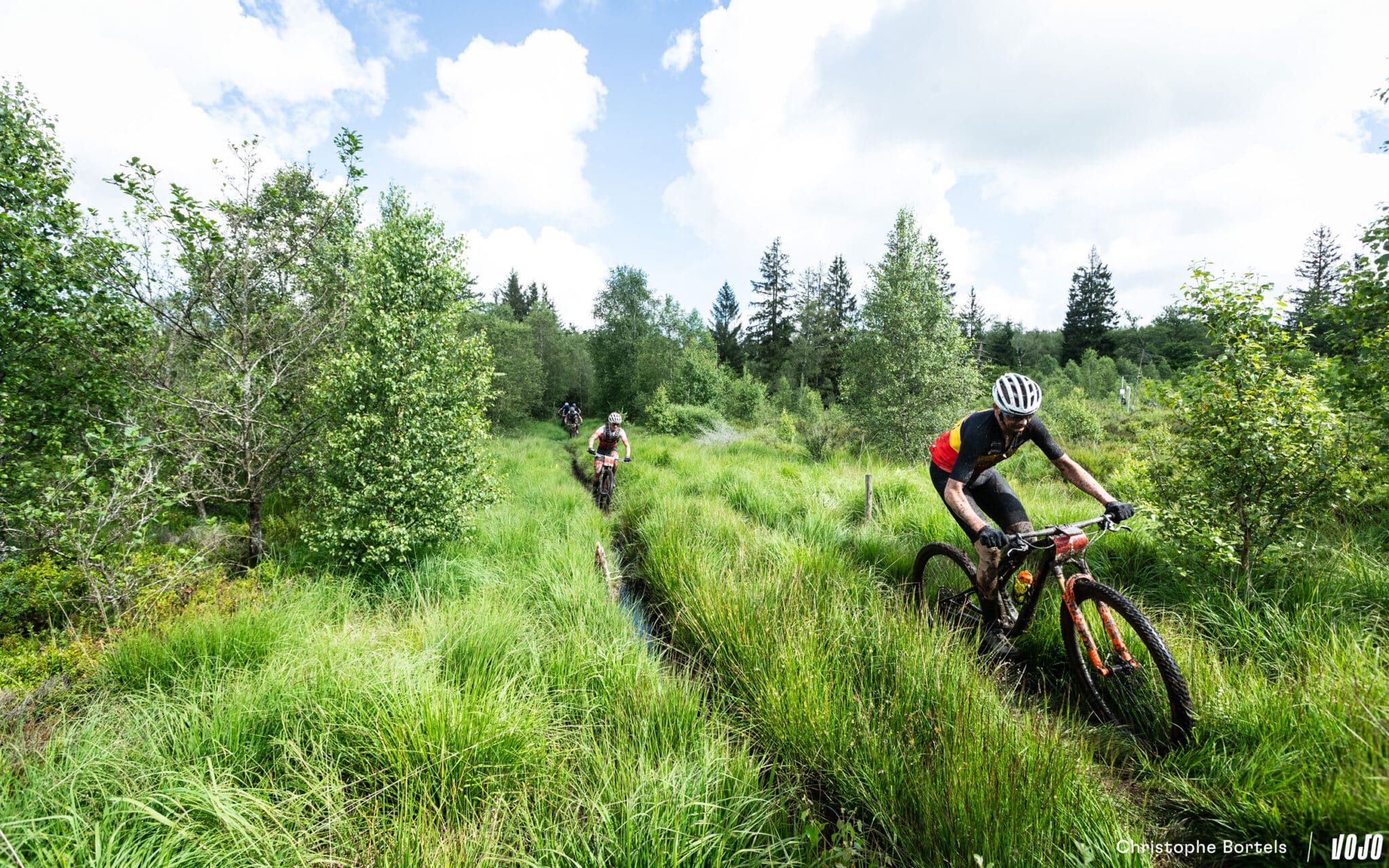 Nous voilà au coeur des Fagnes ! C’est notamment ici que les organisateurs ont procédé à plusieurs modifications de parcours afin d’éviter certaines portions trop humides et boueuses. Le terrain n’en reste pas moins lourd par moments, avec des ornières qui se creusent au fil des passages, mais les risques de galère ont été bien réduits grâce aux changements effectués. Ouf !