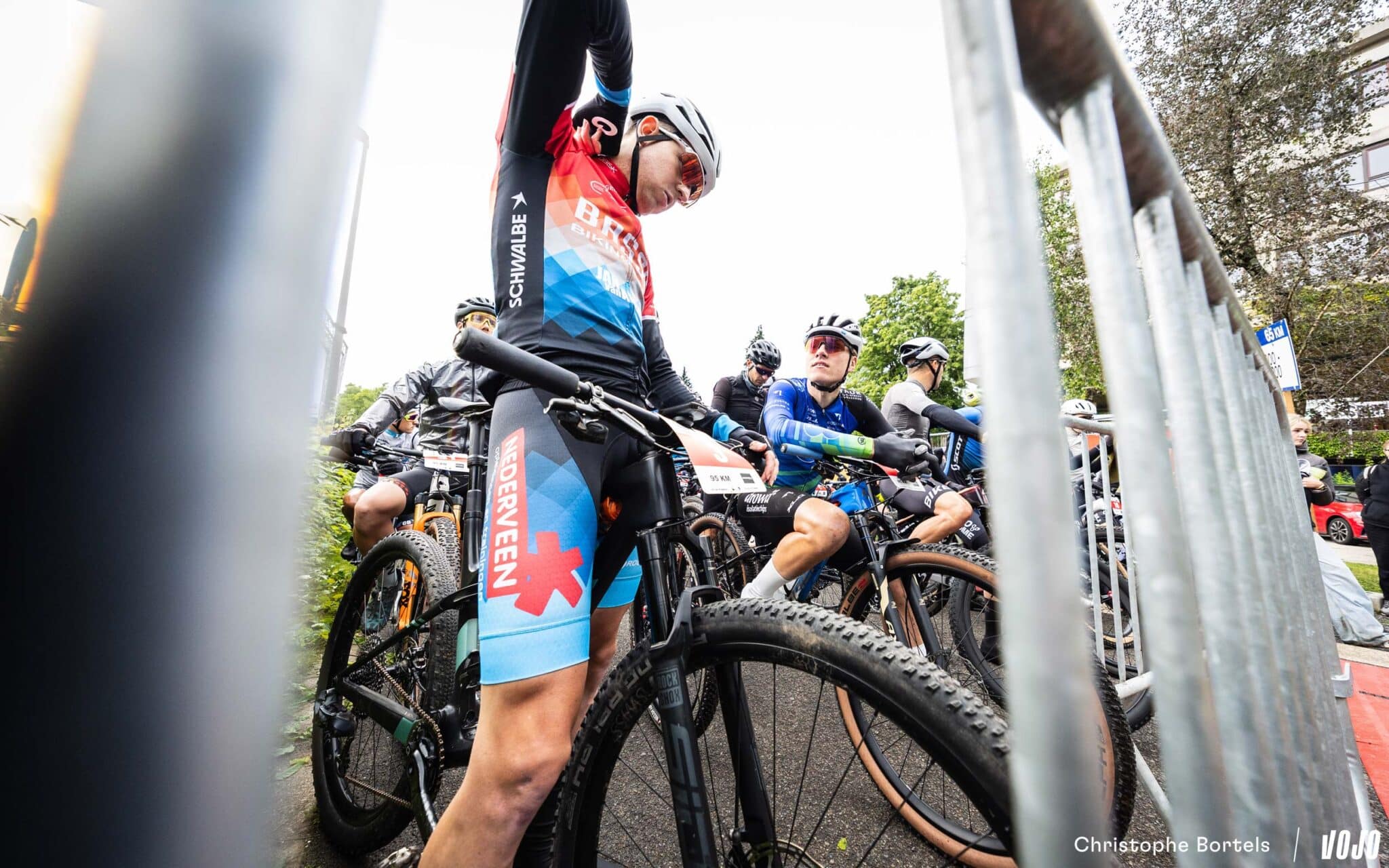10h approche, il est temps pour les concurrents alignés sur le 95 km de prendre place sur la grille de départ. Malgré l’absence de Joris Massaer (en Italie pour les championnats d’Europe de XCM), les prétendants à la victoire ne manquent pas. A commencer par Maxime Dony, le vainqueur sortant, qui s’était justement imposé au sprint face à Massaer.