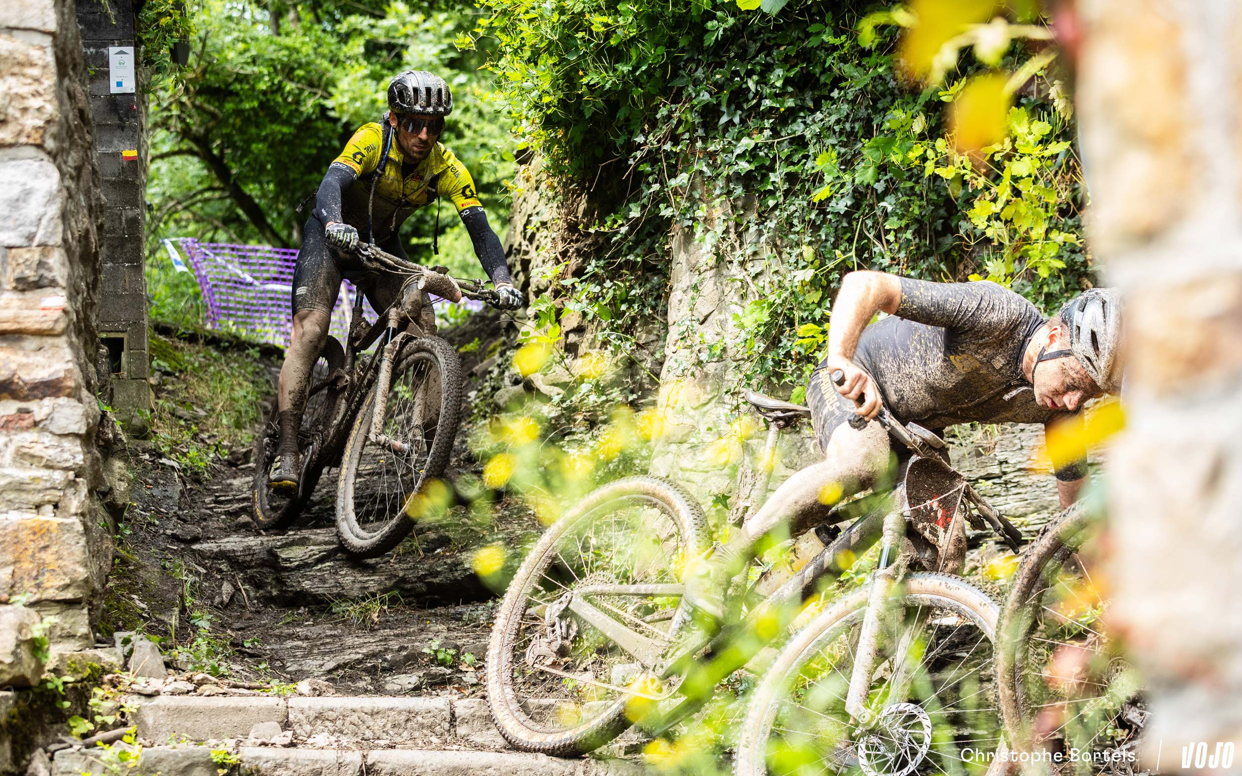 Un autre duo pointe à une trentaine de secondes seulement : Thomas Sprengers et Wim De Bruin. Pas le temps de flâner et de profiter du paysage dans cette nouvelle côte bien raide menant à la Potagerie d’Antan.