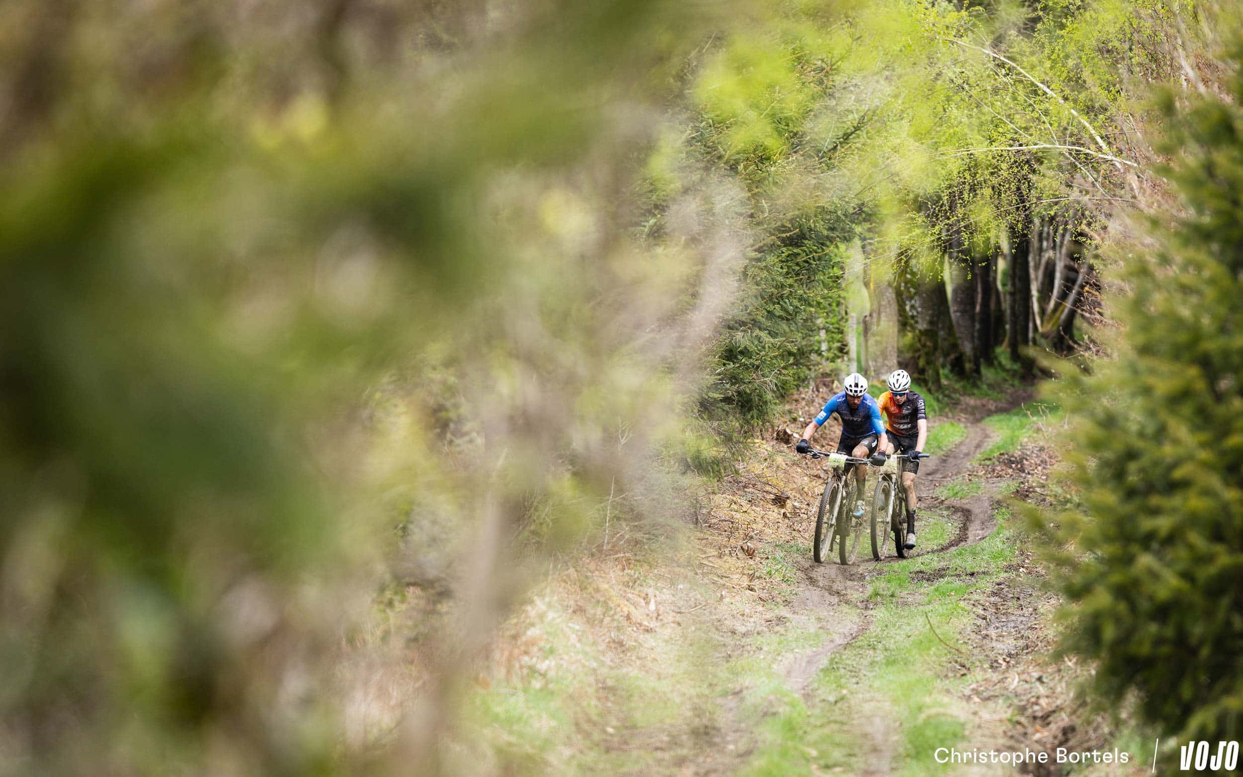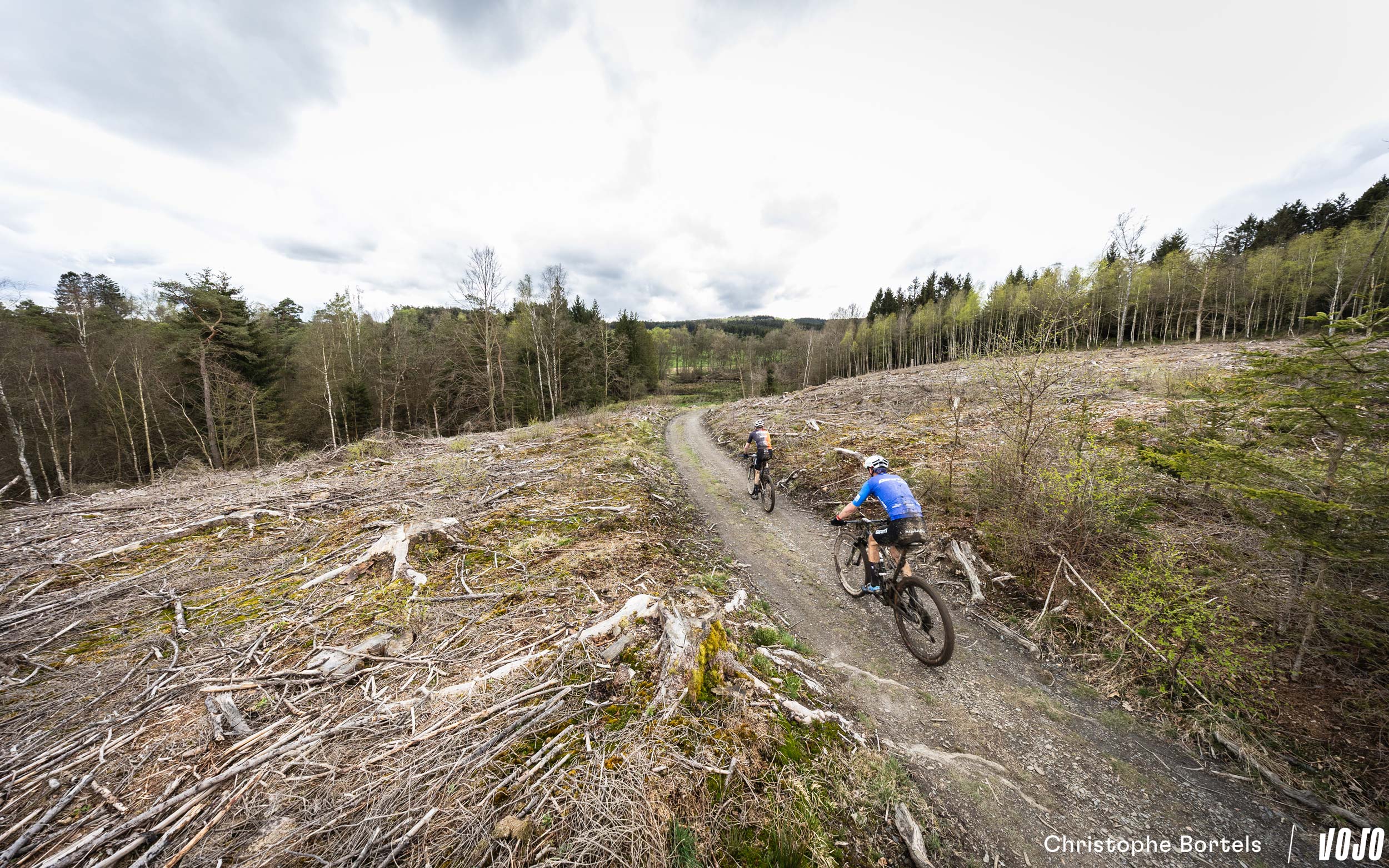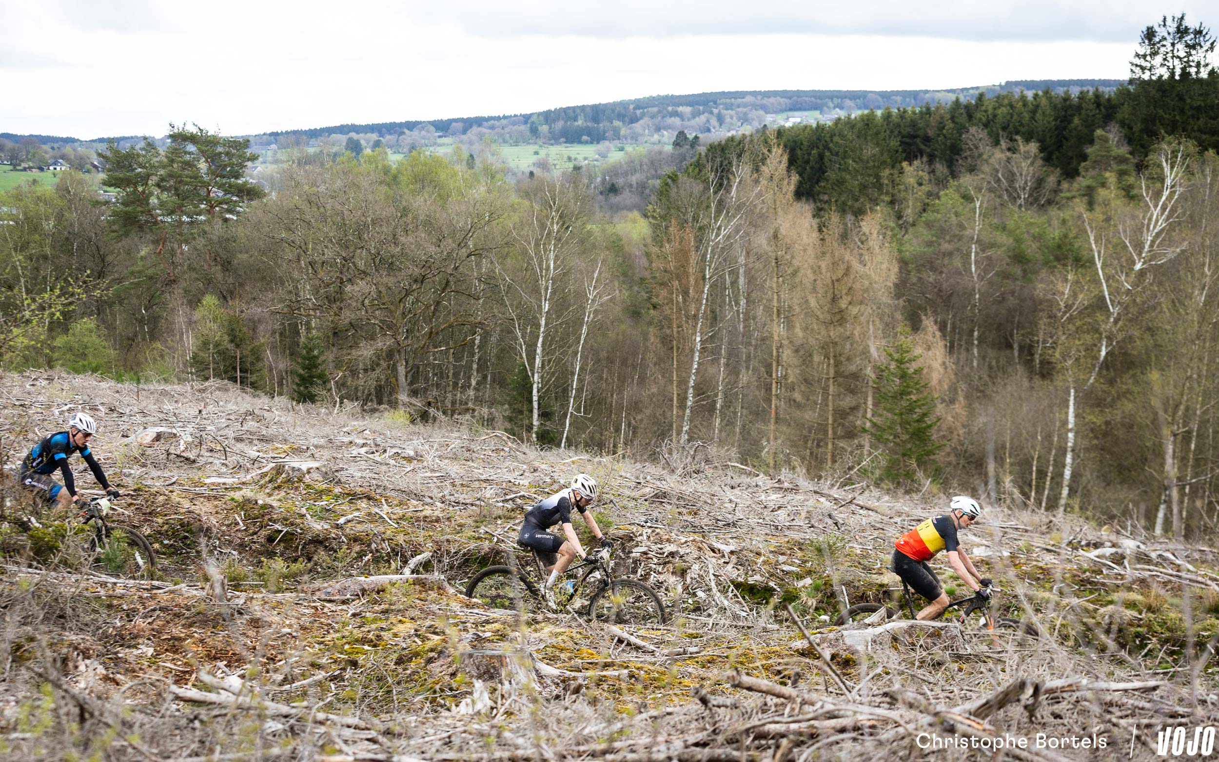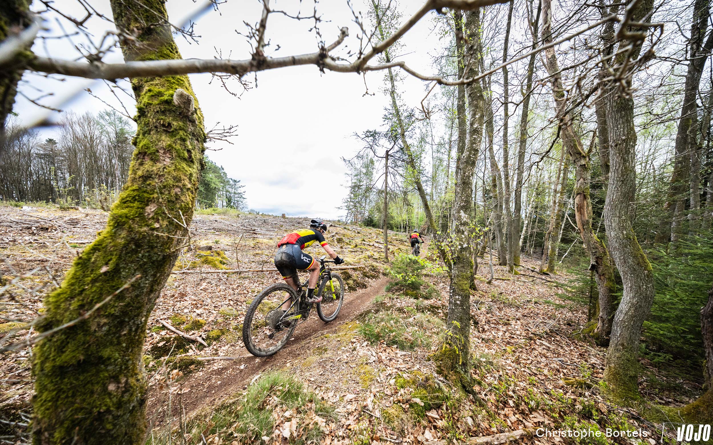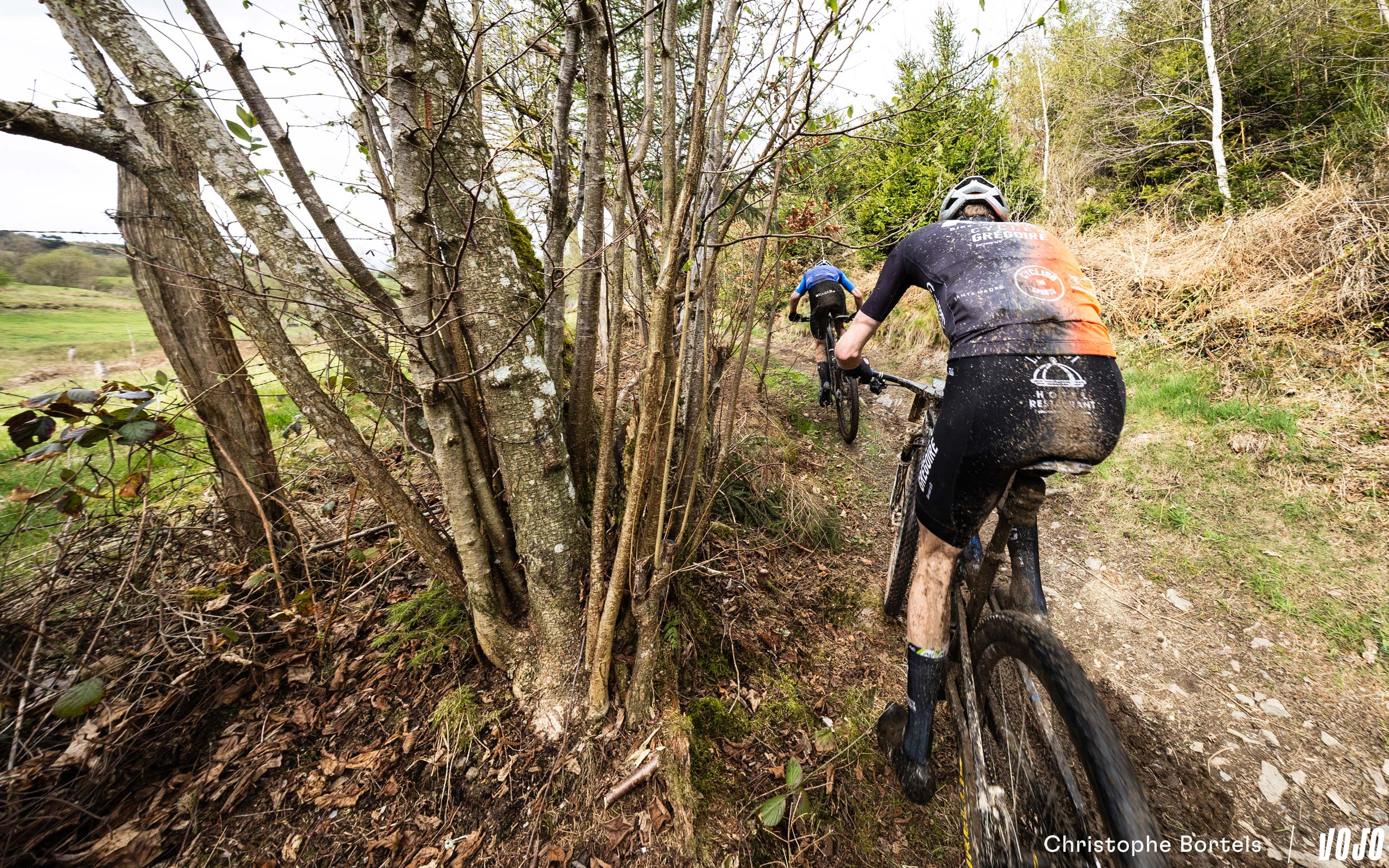 Après 8 kilomètres, Kevin Panhuyzen, qui emmène Simon Grégoire dans son sillage, semble s’être ménagé une petite avance. Mais les descentes peuvent parfois étirer un peloton, on verra plus loin si nos impressions se confirment.