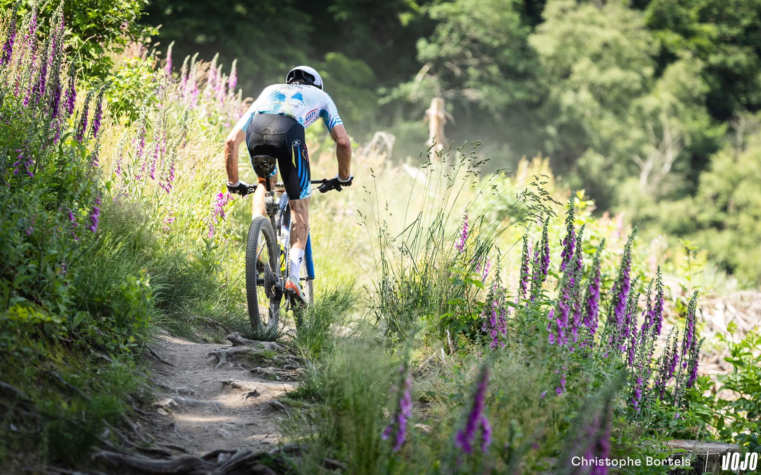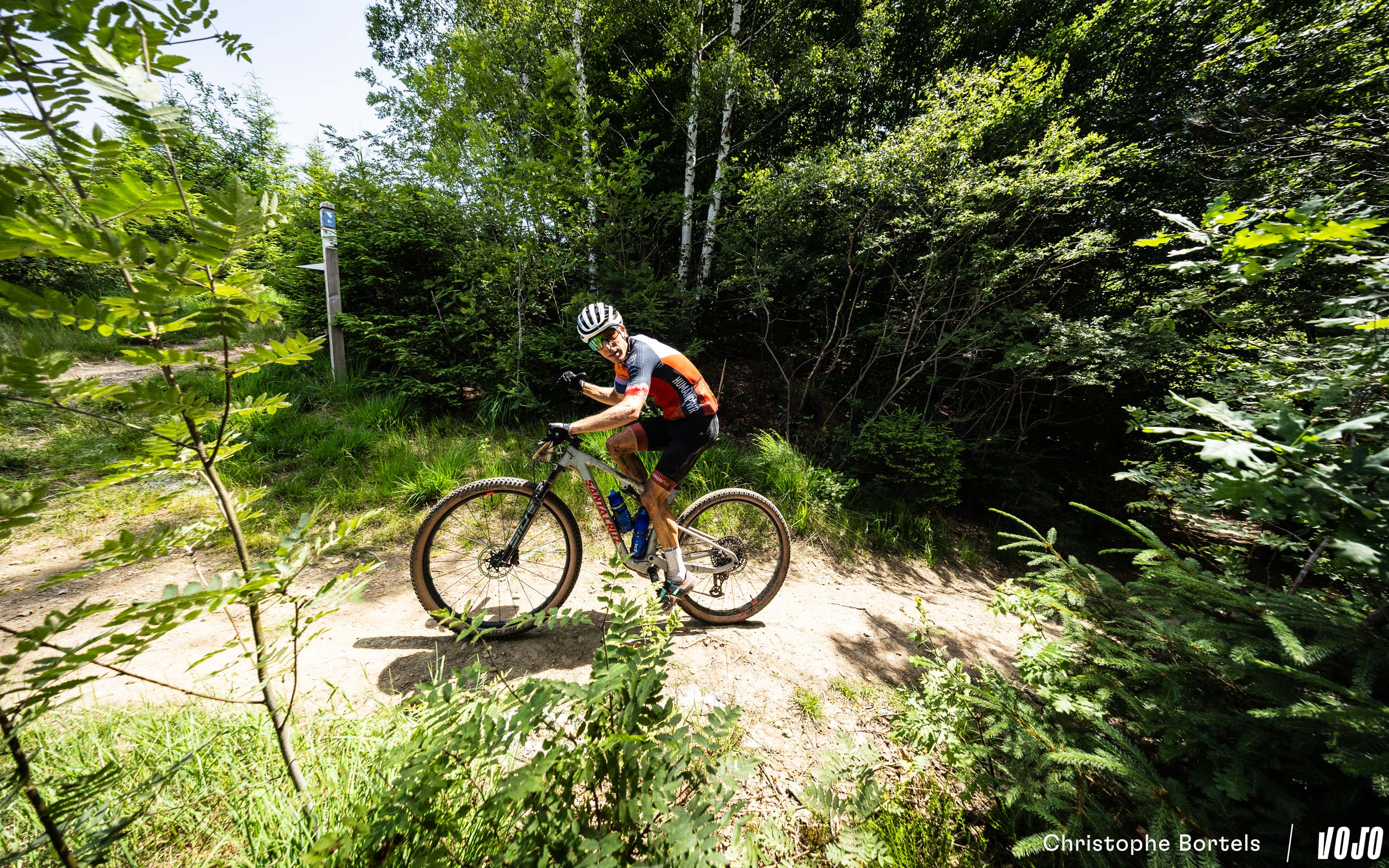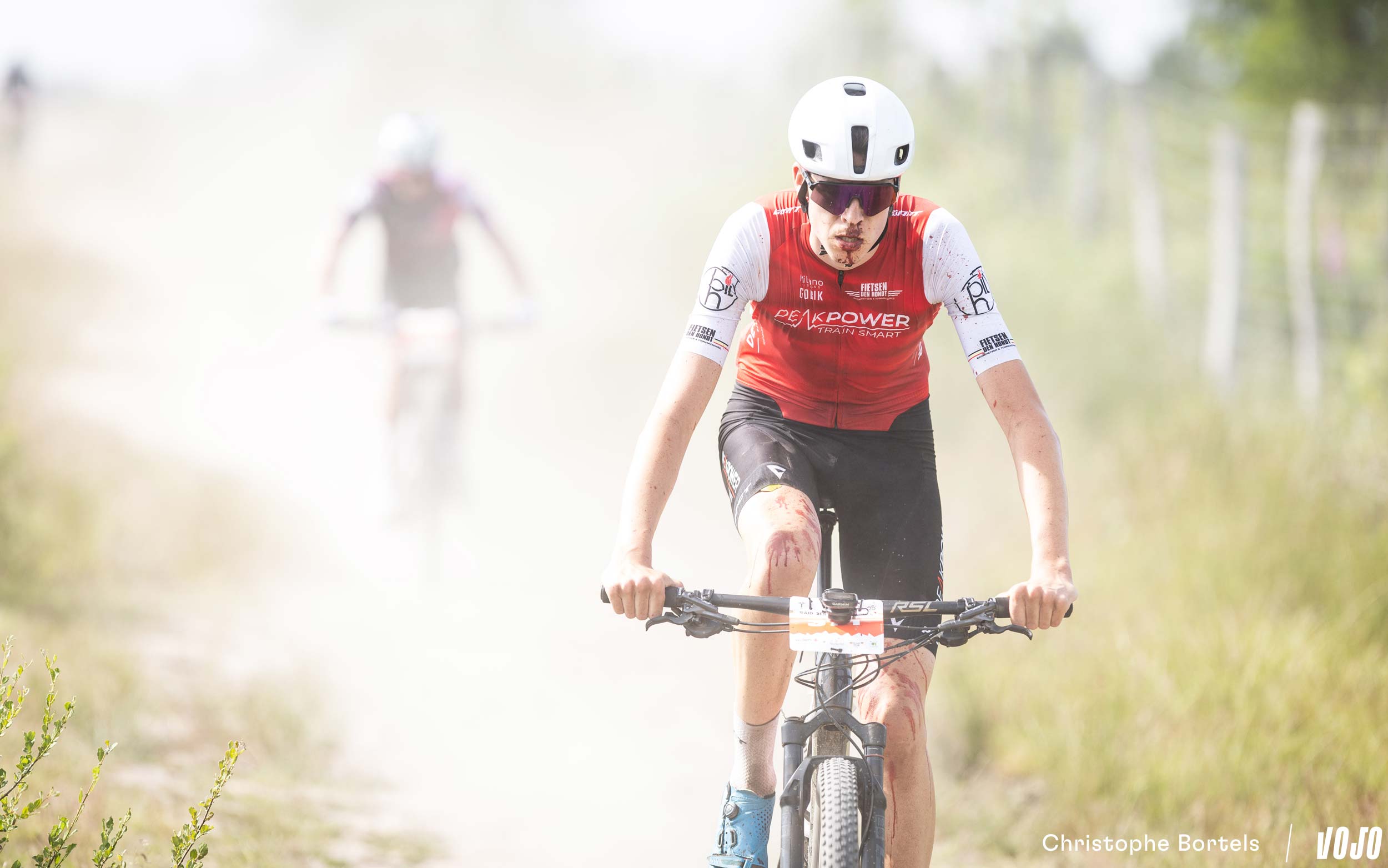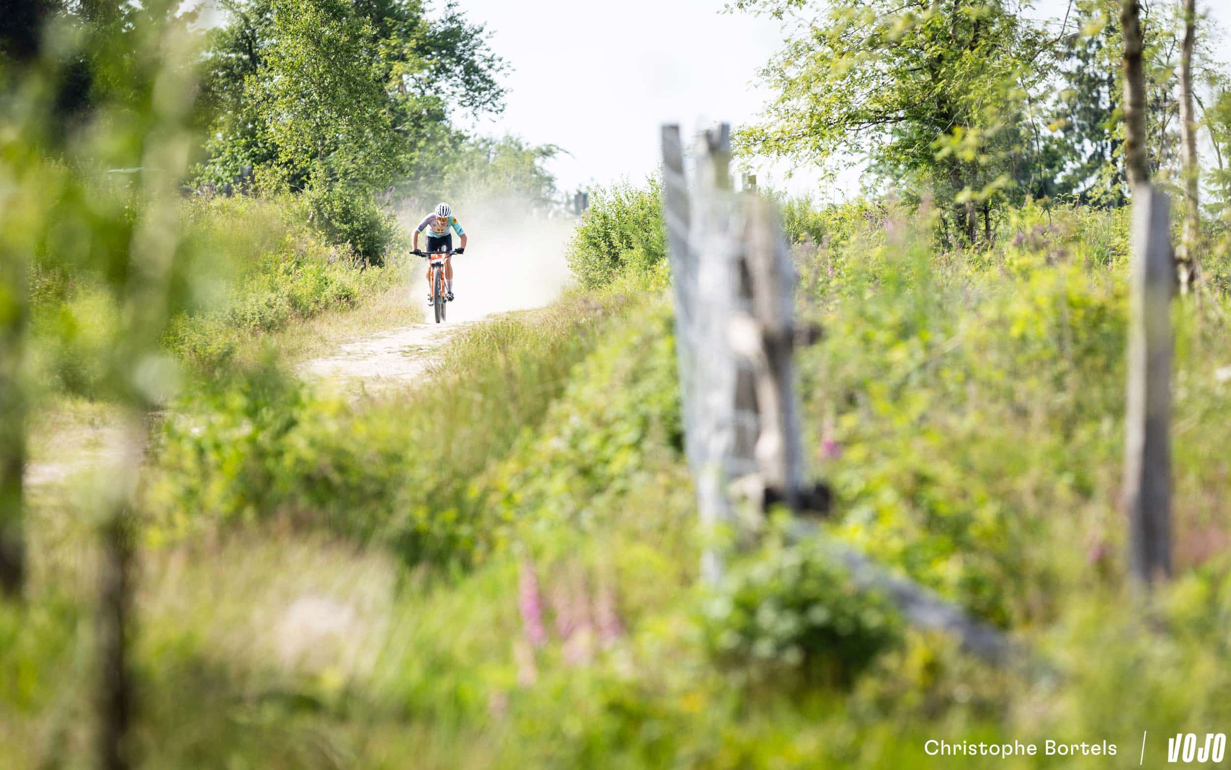 Devant, Wout Alleman continue de rouler à un rythme digne d’un XCO malgré son avance confortable. Mais on est bien sur un marathon de 115 kilomètres, et sur un terrain loin d’être roulant ! Impressionnant…