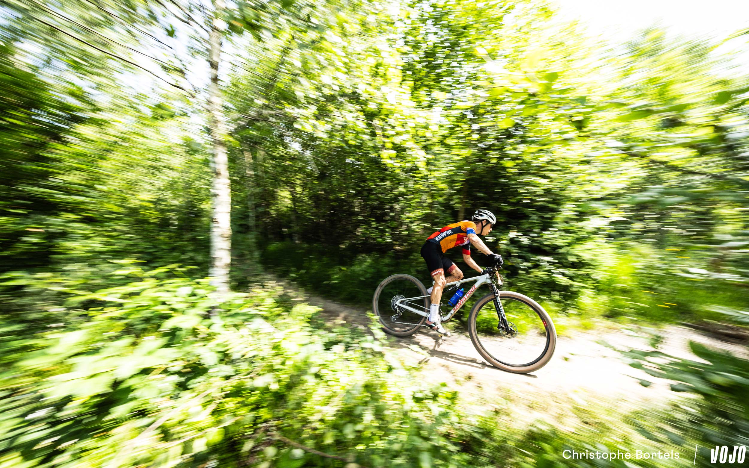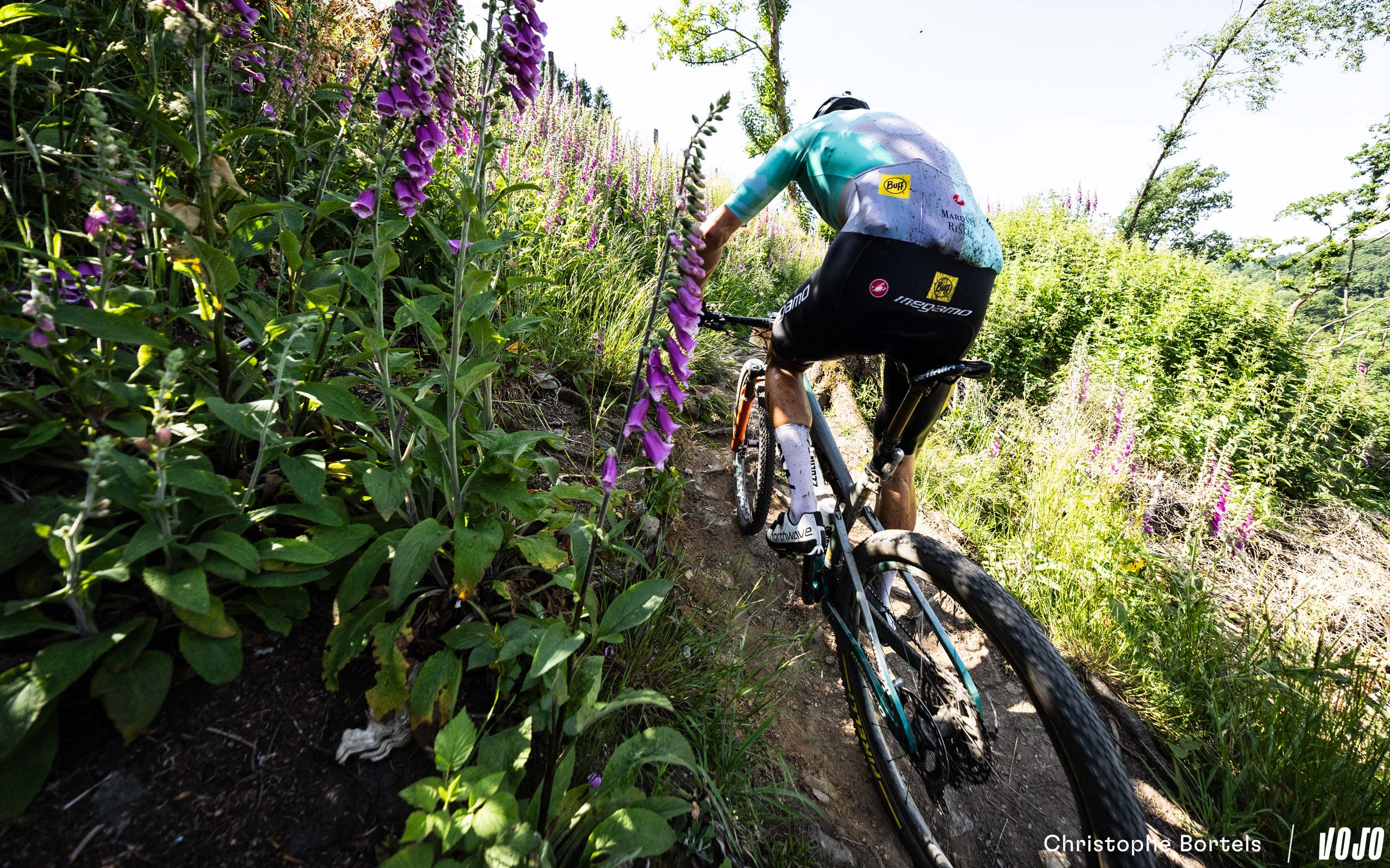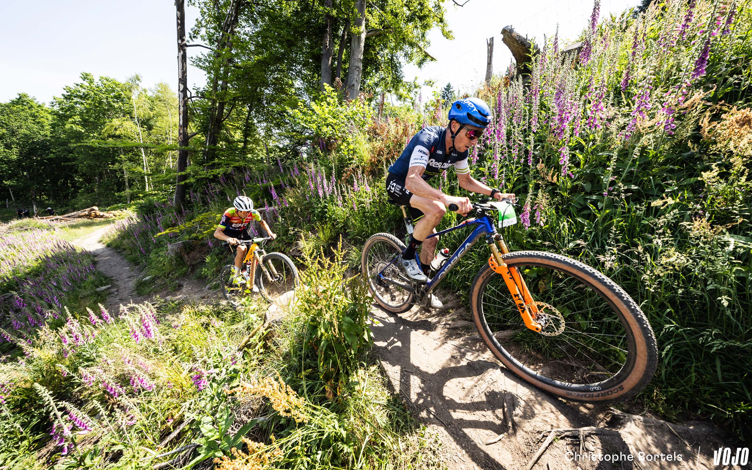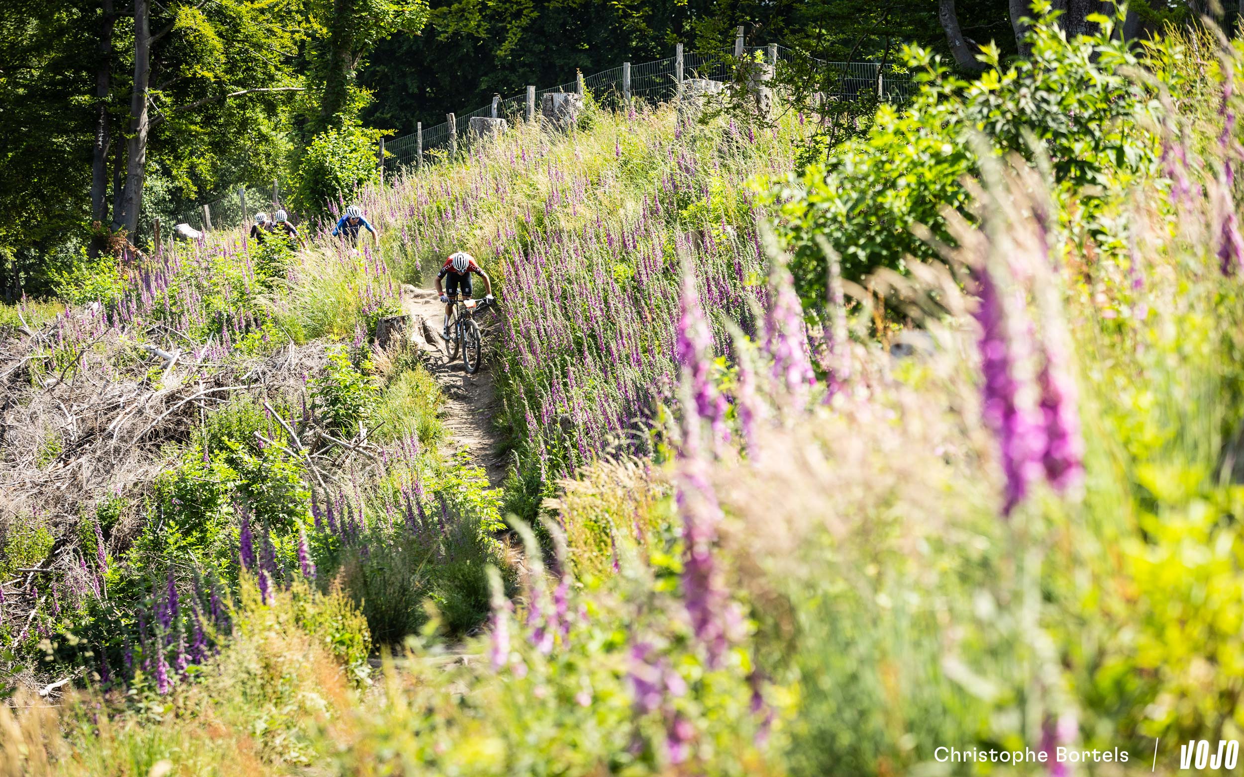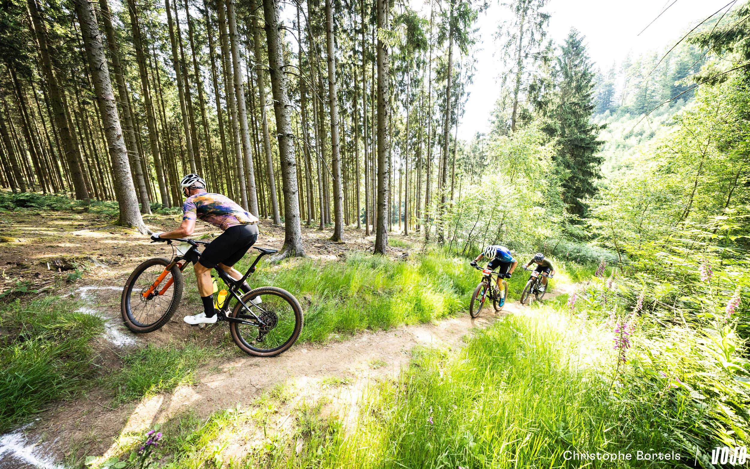 Devant, Wout Alleman continue de rouler à un rythme digne d’un XCO malgré son avance confortable. Mais on est bien sur un marathon de 115 kilomètres, et sur un terrain loin d’être roulant ! Impressionnant…