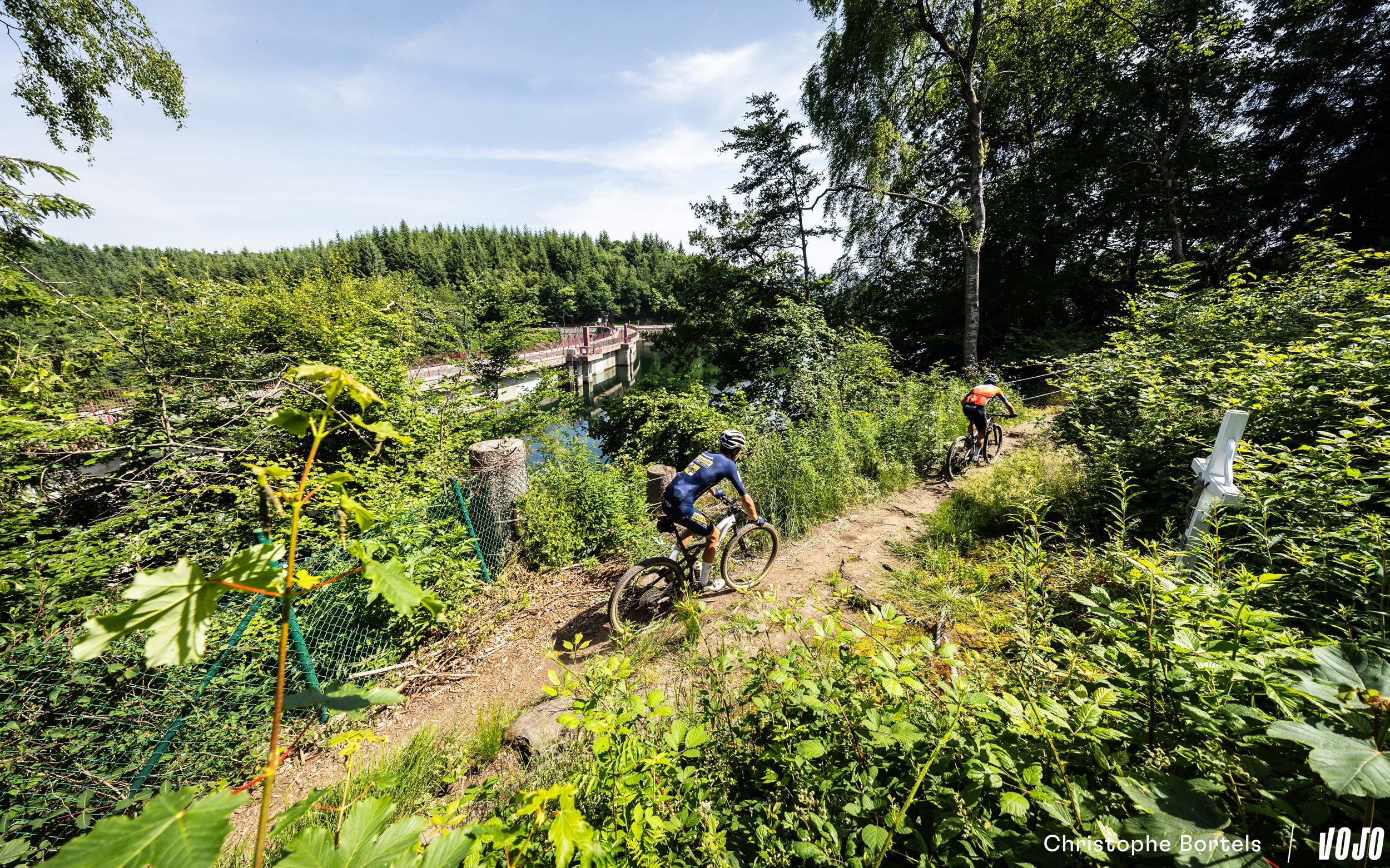 Petit singletrack avec vue sur le barrage de Robertville.