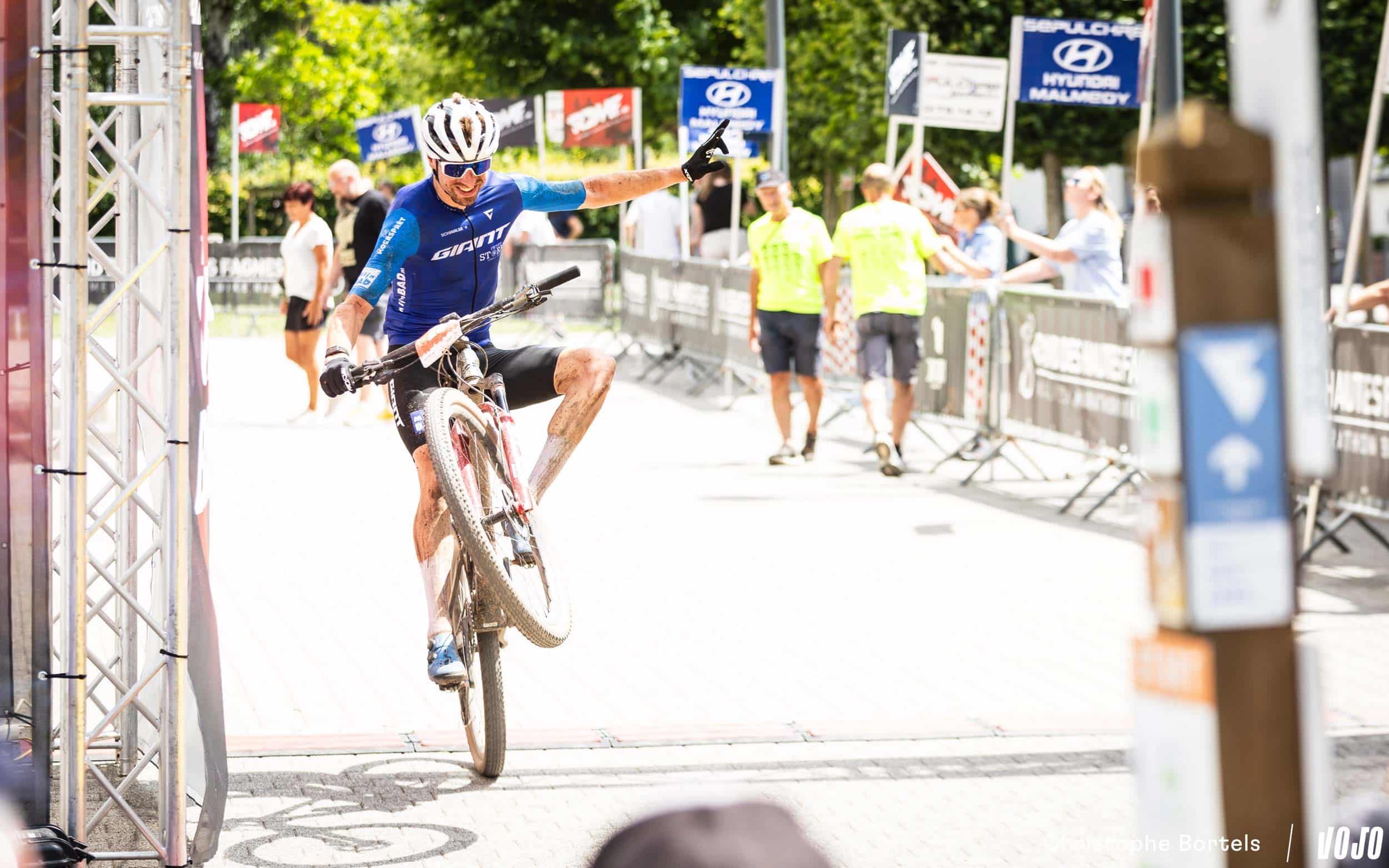Célébration signature pour Kevin Panhuyzen, qui complète le podium après être parvenu à s’extraire du groupe de poursuivants.