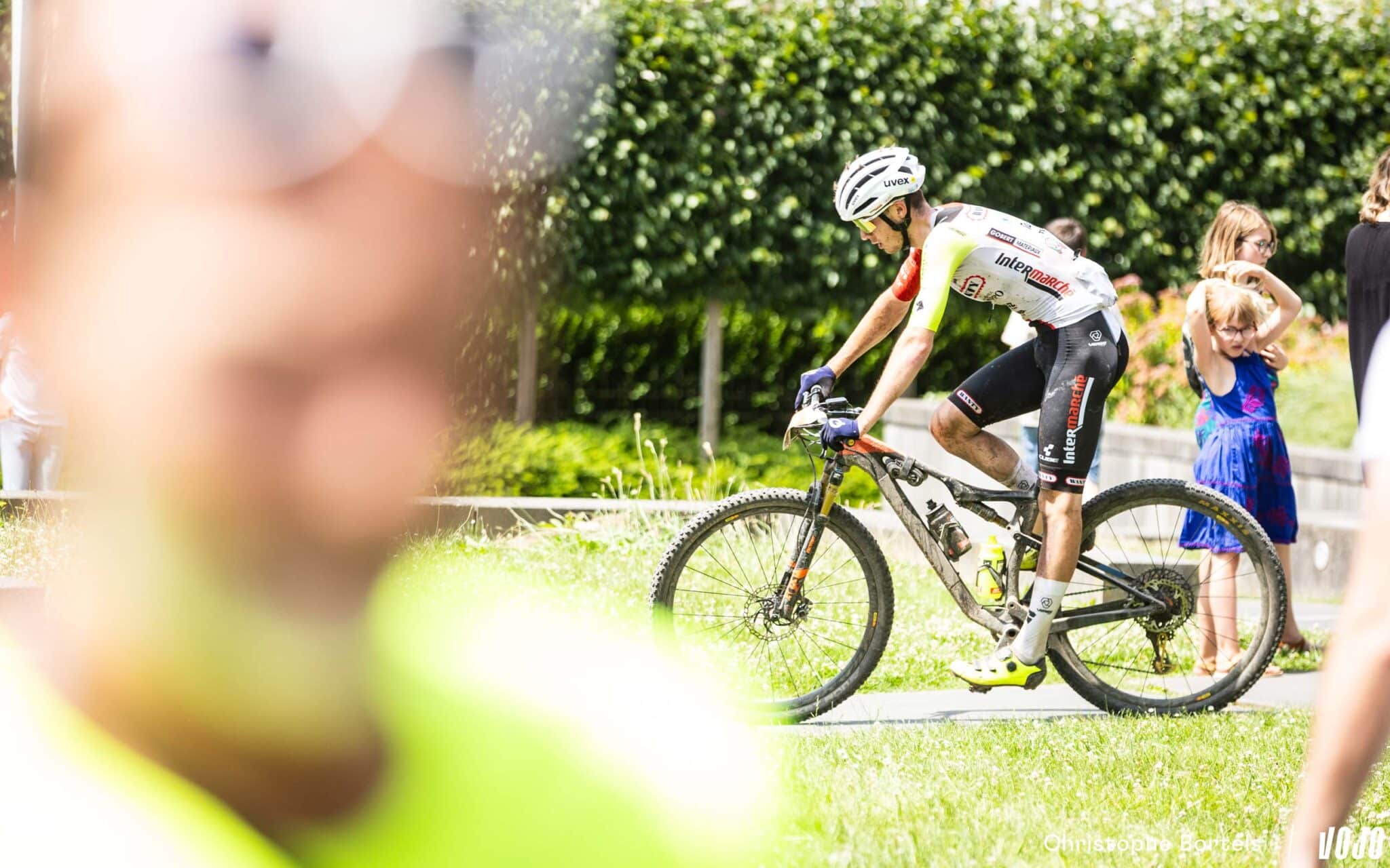 En suivant la tête de course de la longue distance, on assiste aussi au passage des concurrents des autres épreuves. Sur le 90 km, Arthur Courtois file vers la victoire…