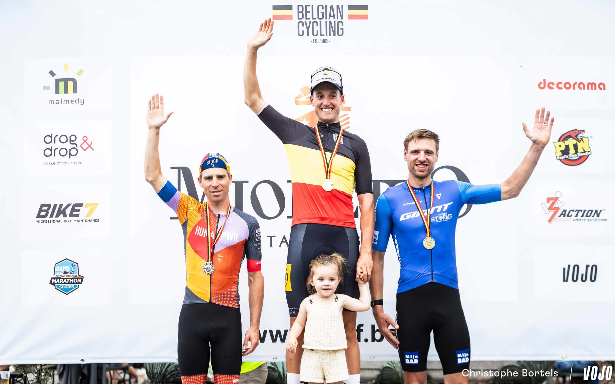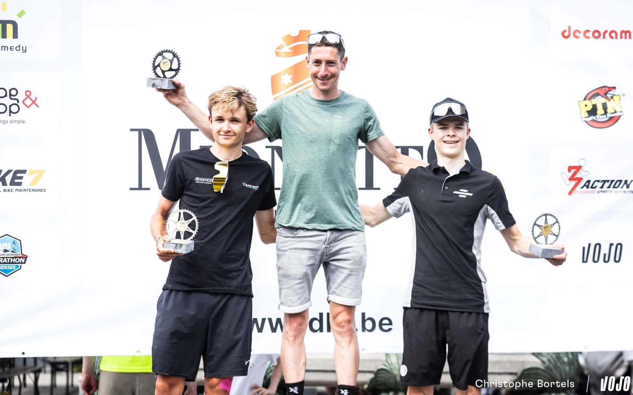 Le podium Hommes Elites des championnats de Belgique : Wout Alleman entouré de Frans Claes et Kevin Panhuyzen.