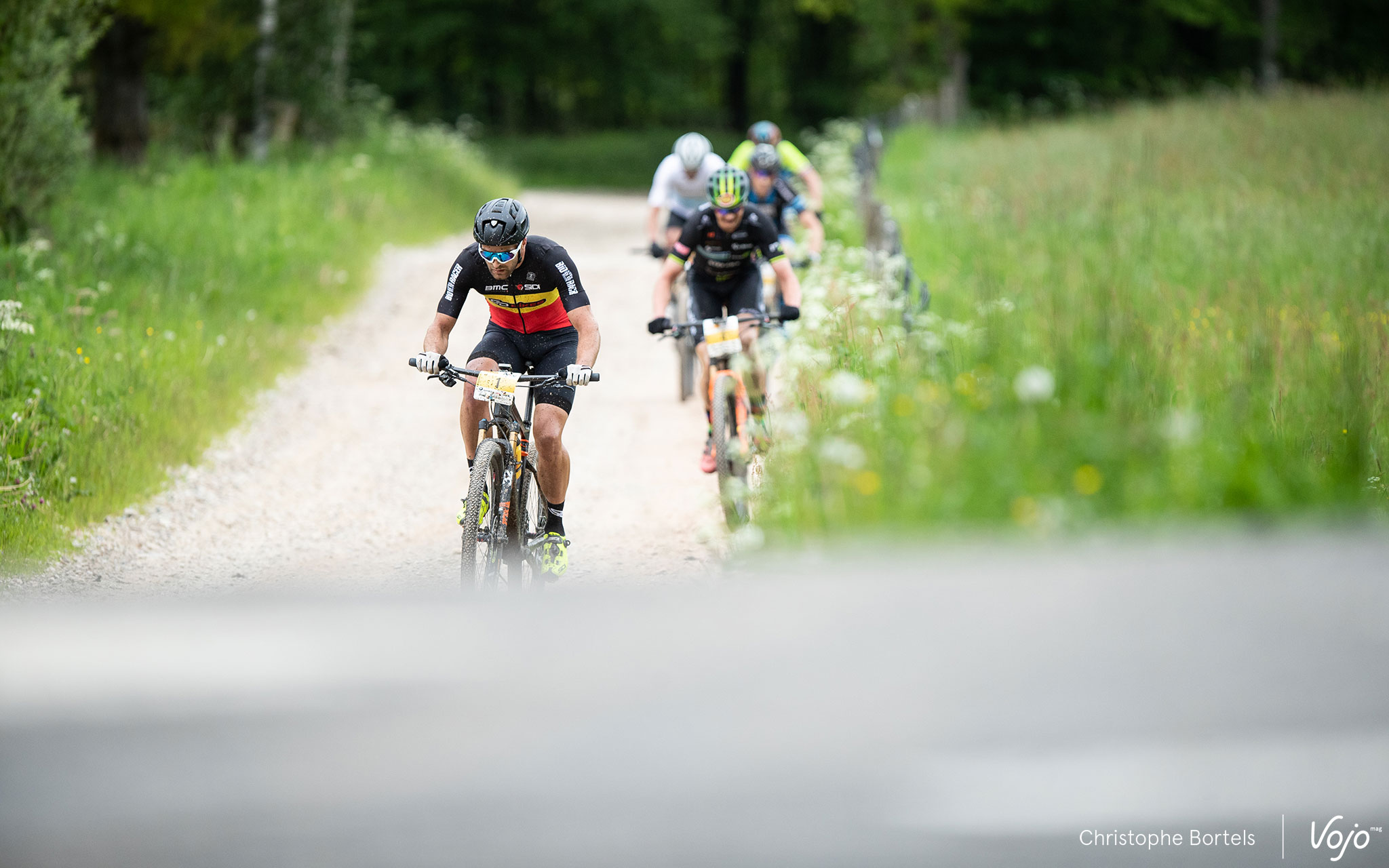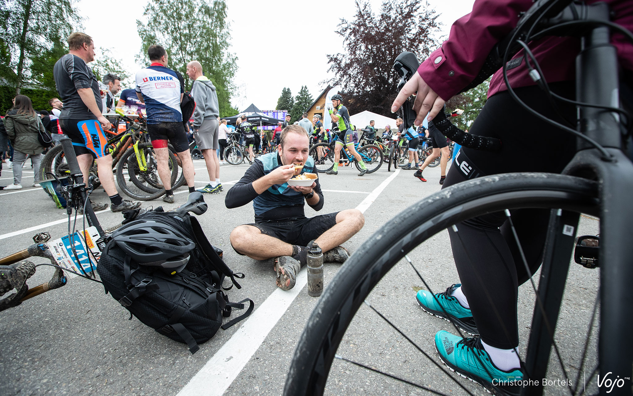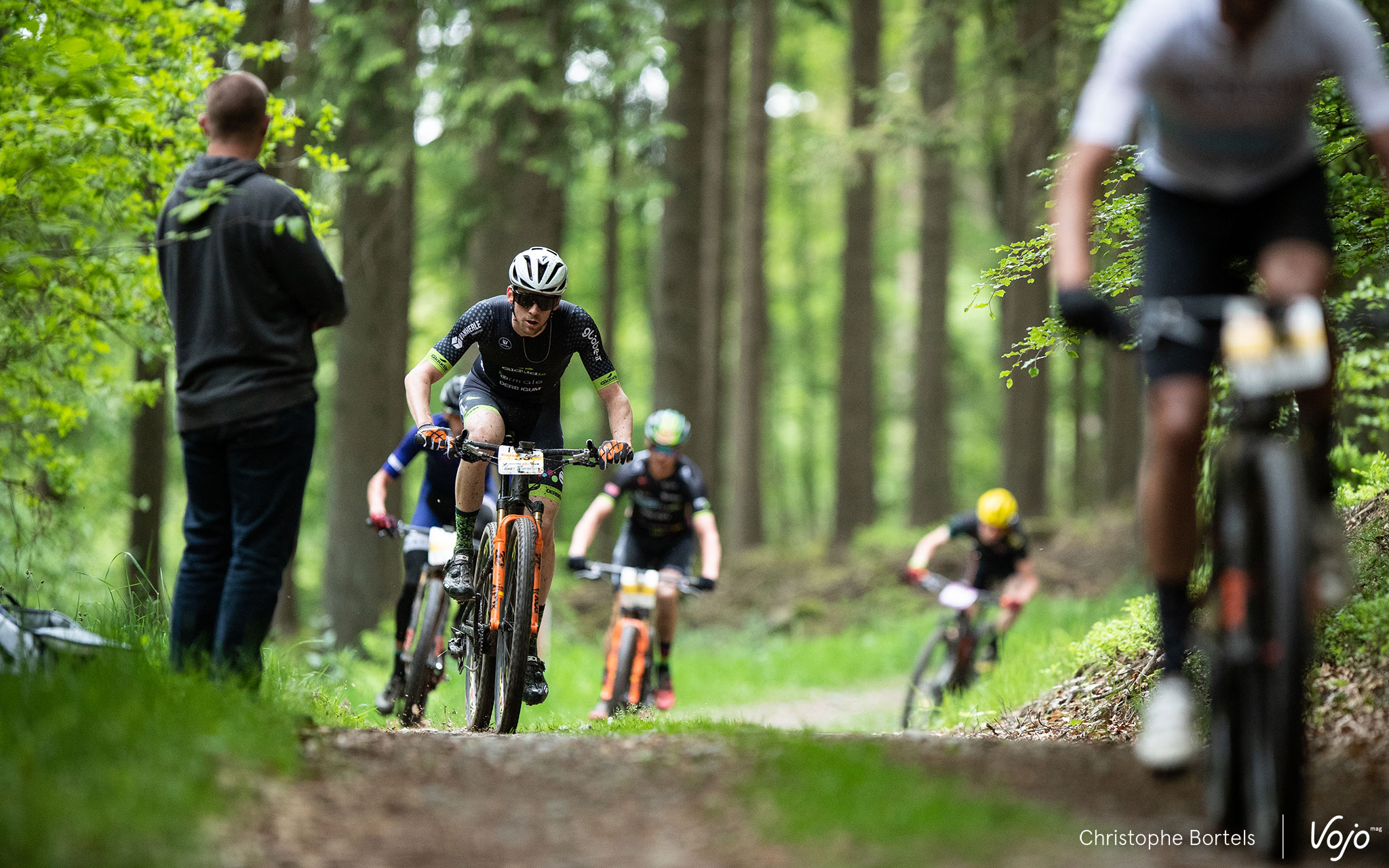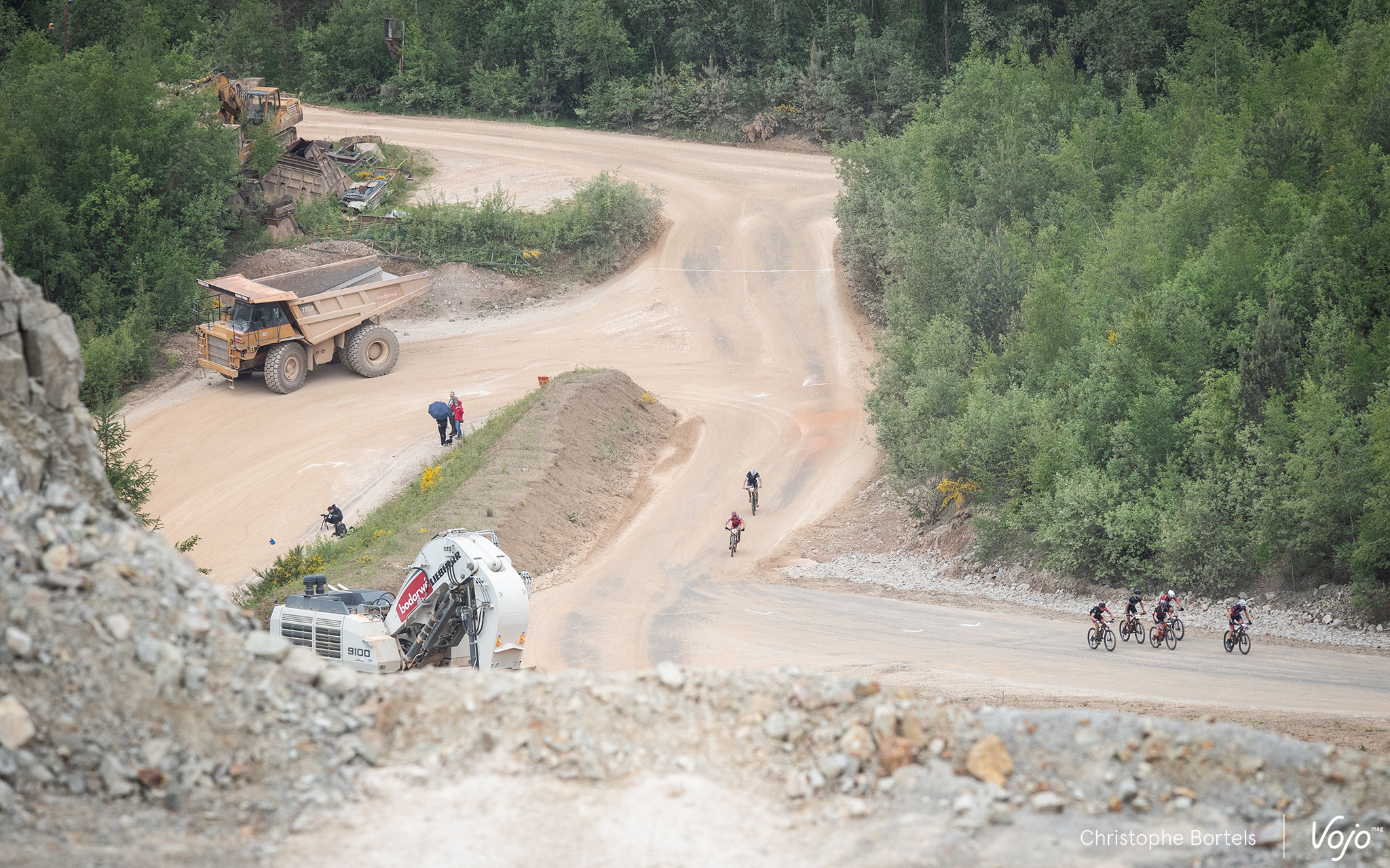 Les poursuivants sont à quatre minutes : Bas Peters, Erwin Bakker, Joris Massaer et… Kevin Van Hoovels, qui a recollé avec la tête de course au pied de la carrière après avoir loupé une bifurcation, ce qui lui fera gagner 5 minutes (voir un peu plus bas pour l’explication).