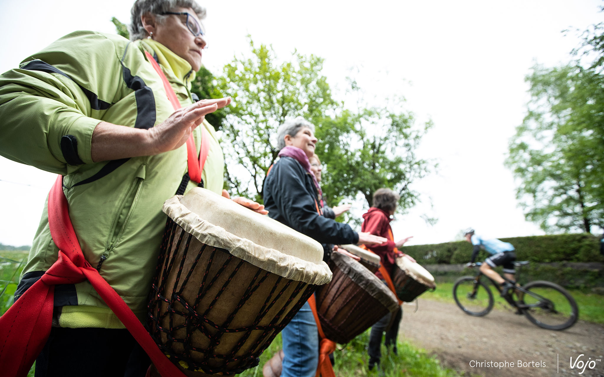 A la sortie de la carrière, ce sont les percussions qui sont là pour encourager les valeureux marathoniens.
