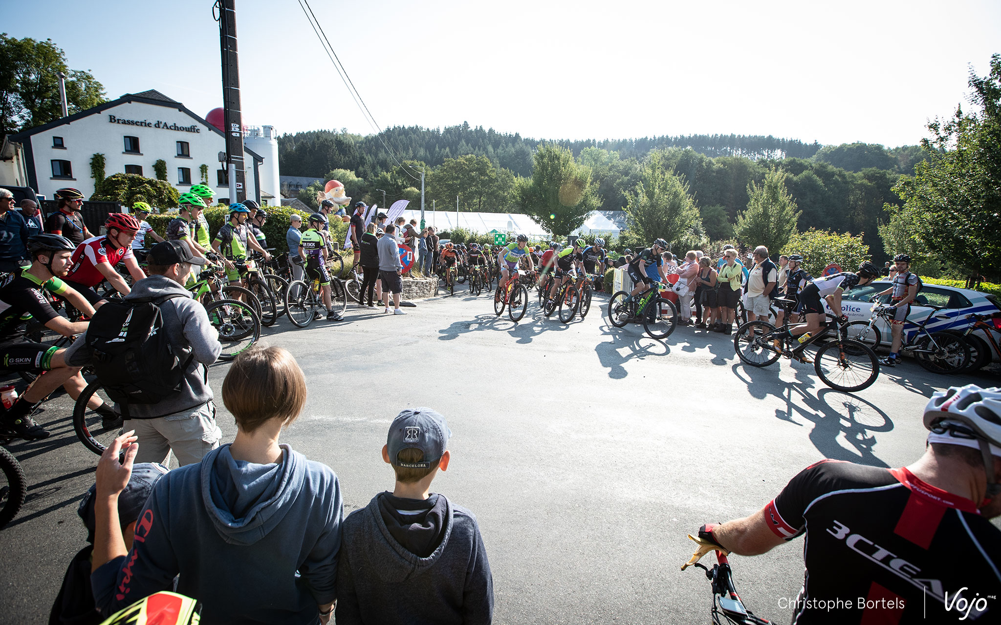 Vainqueur l’an dernier, Joris Massaer (au centre de l’image) est présent pour défendre son titre. La start list est logiquement moins prestigieuse que lors de la précédente manche du BAMS, le Raid des Hautes Fagnes qui faisait office de championnat de Belgique, mais il y a du beau monde au départ comme Stijn Van Boxstael, Bram Cools, Ken Van Den Bulke, etc. Pourtant, comme on le verra plus loin, ce sont d’autres hommes qui vont s’illustrer sur cette manche…