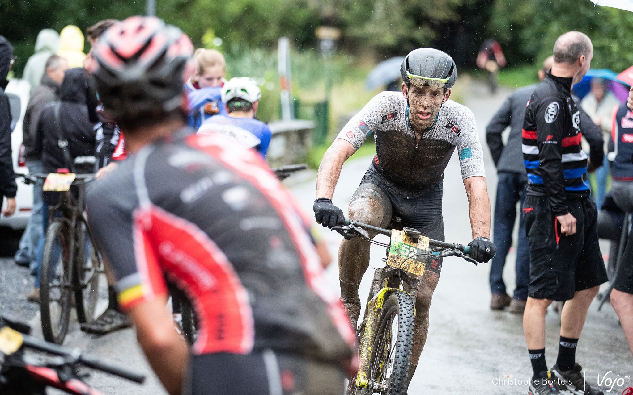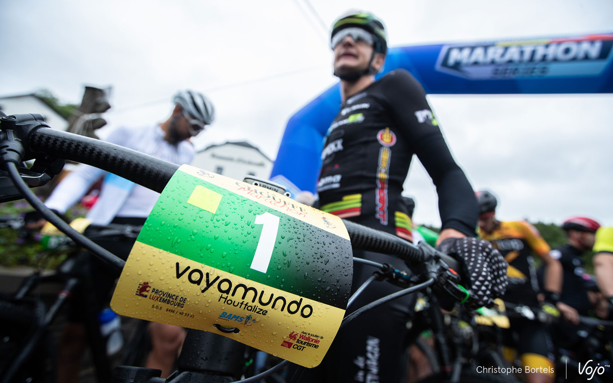 Car comme en témoigne la plaque n°1 arborée par Joris Massaer, il a plu toute la nuit et il pleut encore un peu ce dimanche matin. Mais il semble écrit que les manches du BAMS passeront entre les gouttes cette saison, et ce sera une fois de plus le cas à Achouffe et aux alentours puisque seules quelques gouttes seront à déplorer pendant la course et il se mettra seulement à pleuvoir un peu plus sérieusement après l’arrivée des premiers.