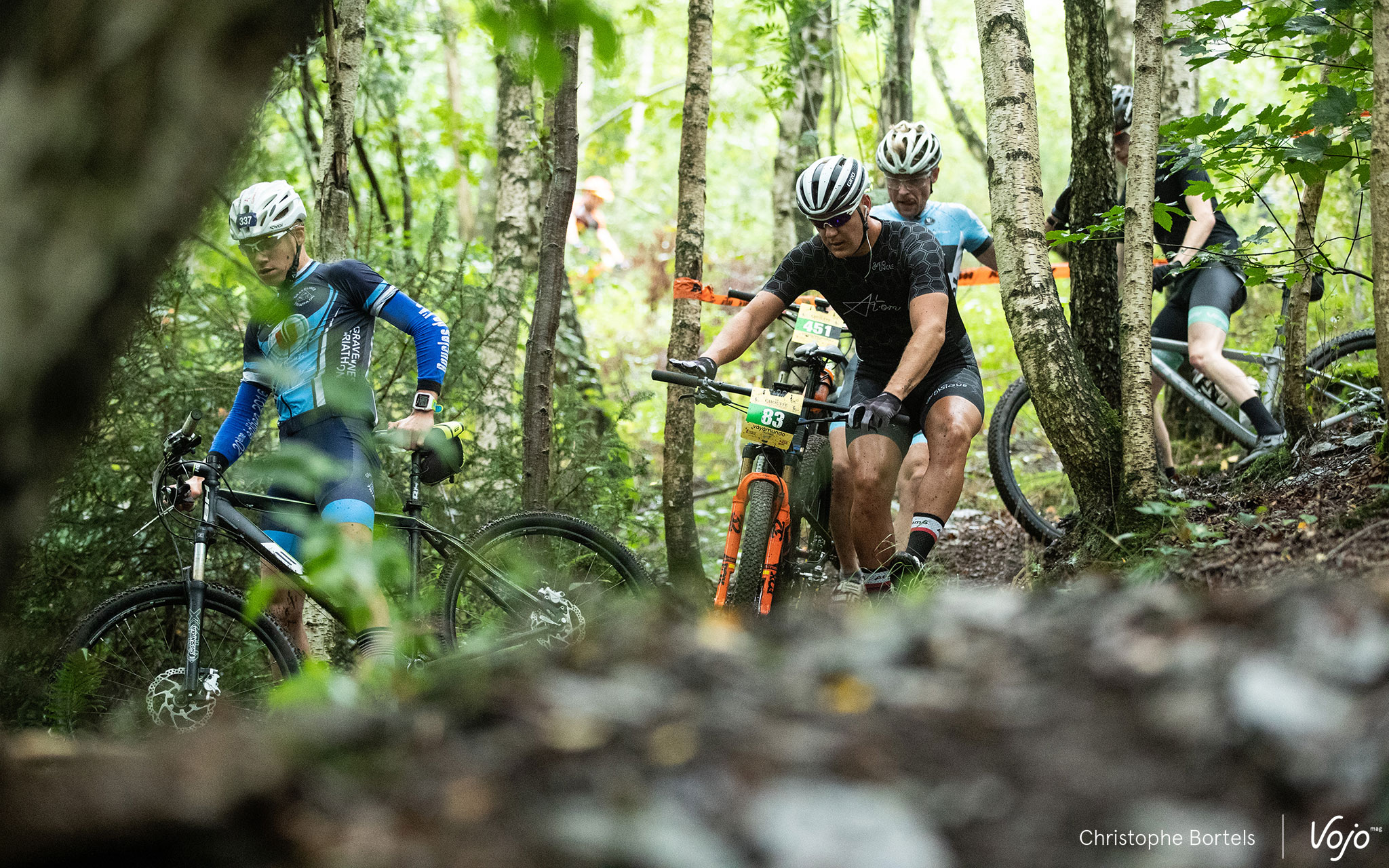 Après le passage par Achouffe qui marquait la fin de la première boucle de 65km et le début de celle de 30km, Joris Massaer a été rejoint par Jasper Ockeloen en tête !