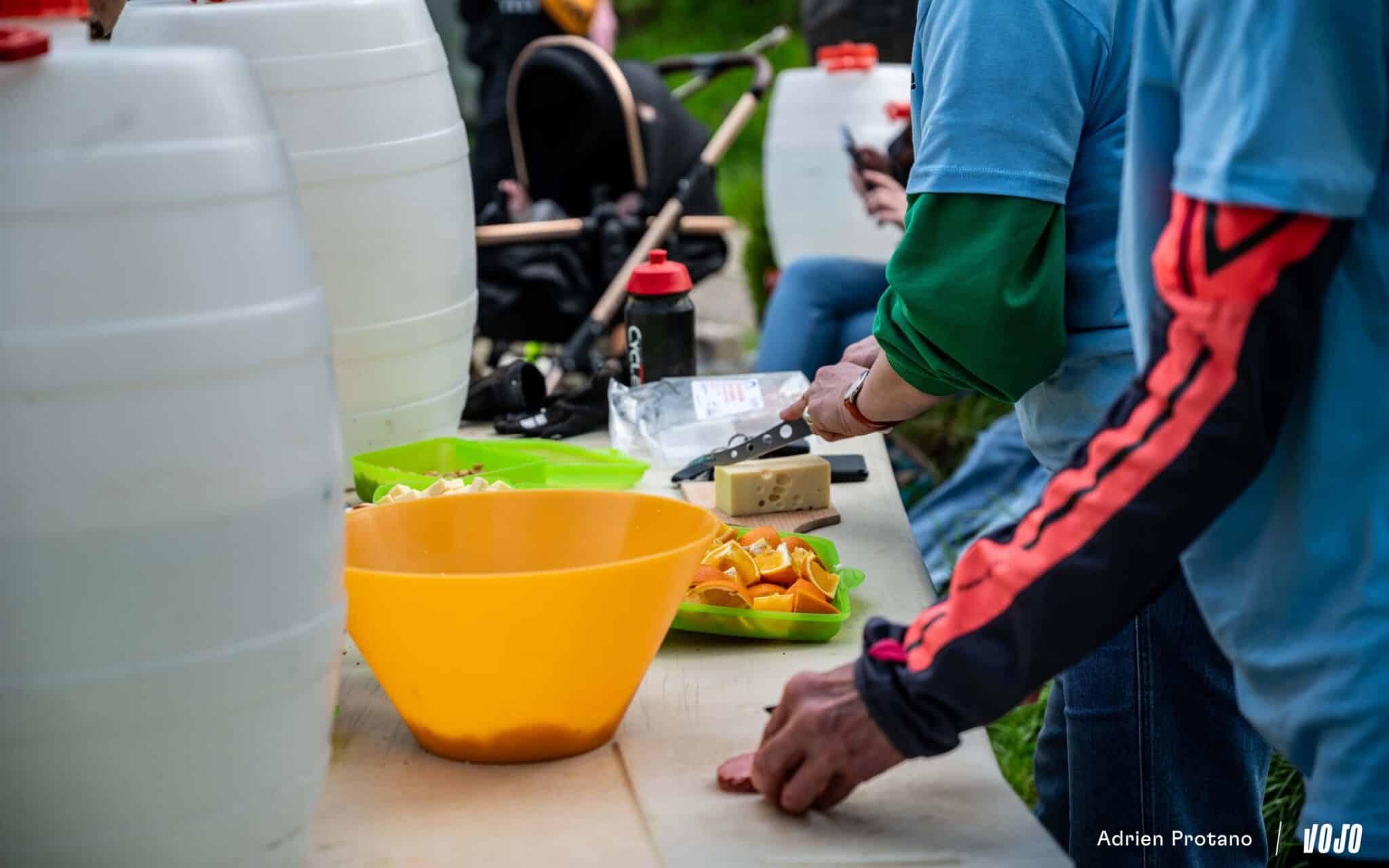 Un petit arrêt ravito avant d’attaquer les dernières spéciales de la journée. Et vous, vous êtes plutôt orange, salami… ou les deux ?