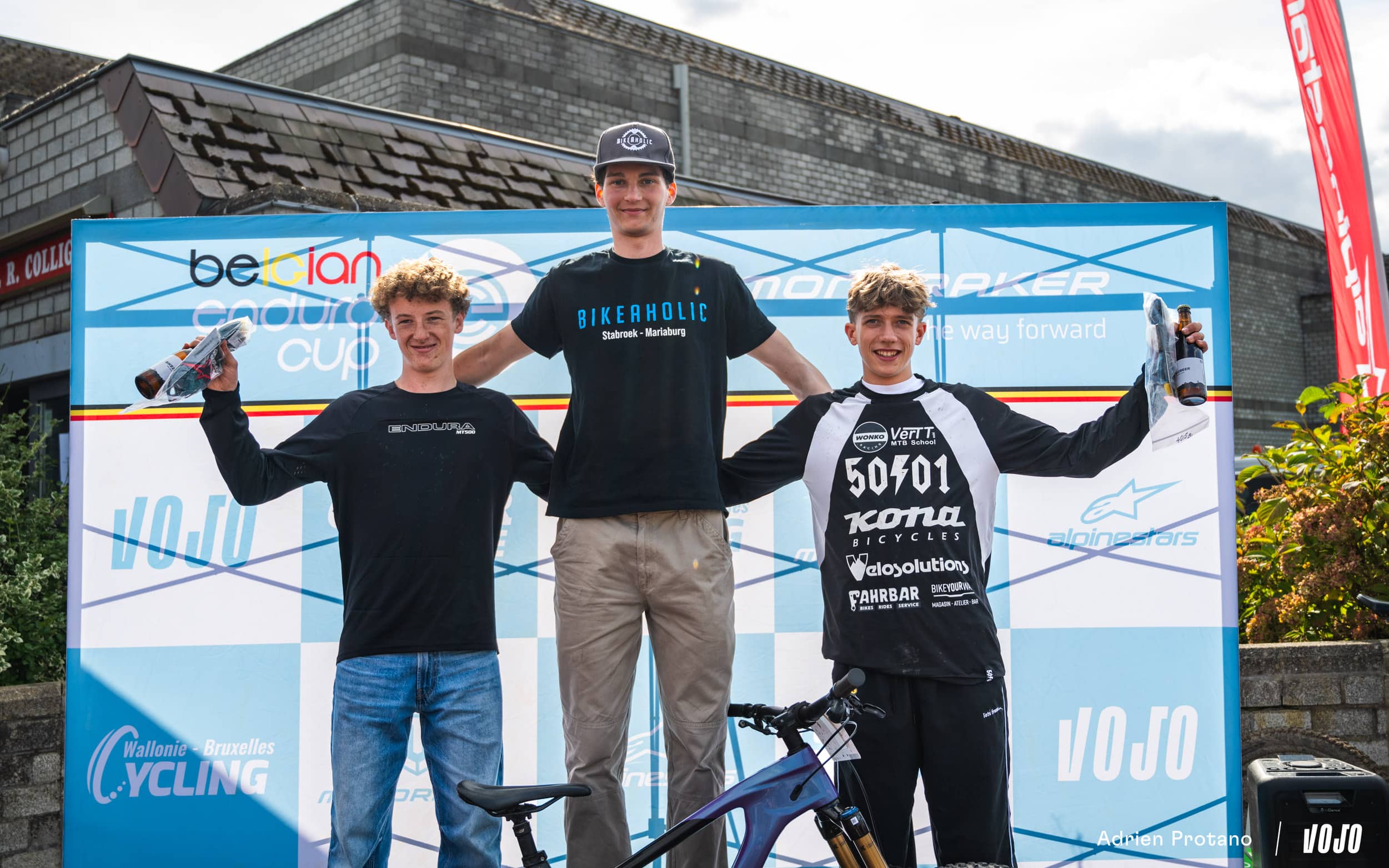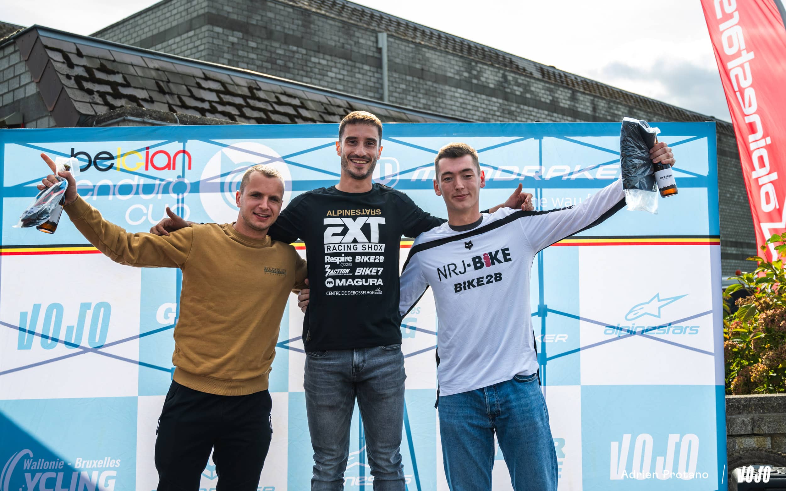 Toujours sur le podium, mais jamais victorieux cette saison, Tibo Breugelmans décroche enfin sa première victoire de la saison sur la Belgian Enduro Cup au sein de la catégorie Juniors, devant Bastien Giberne et Arthur Desmet.