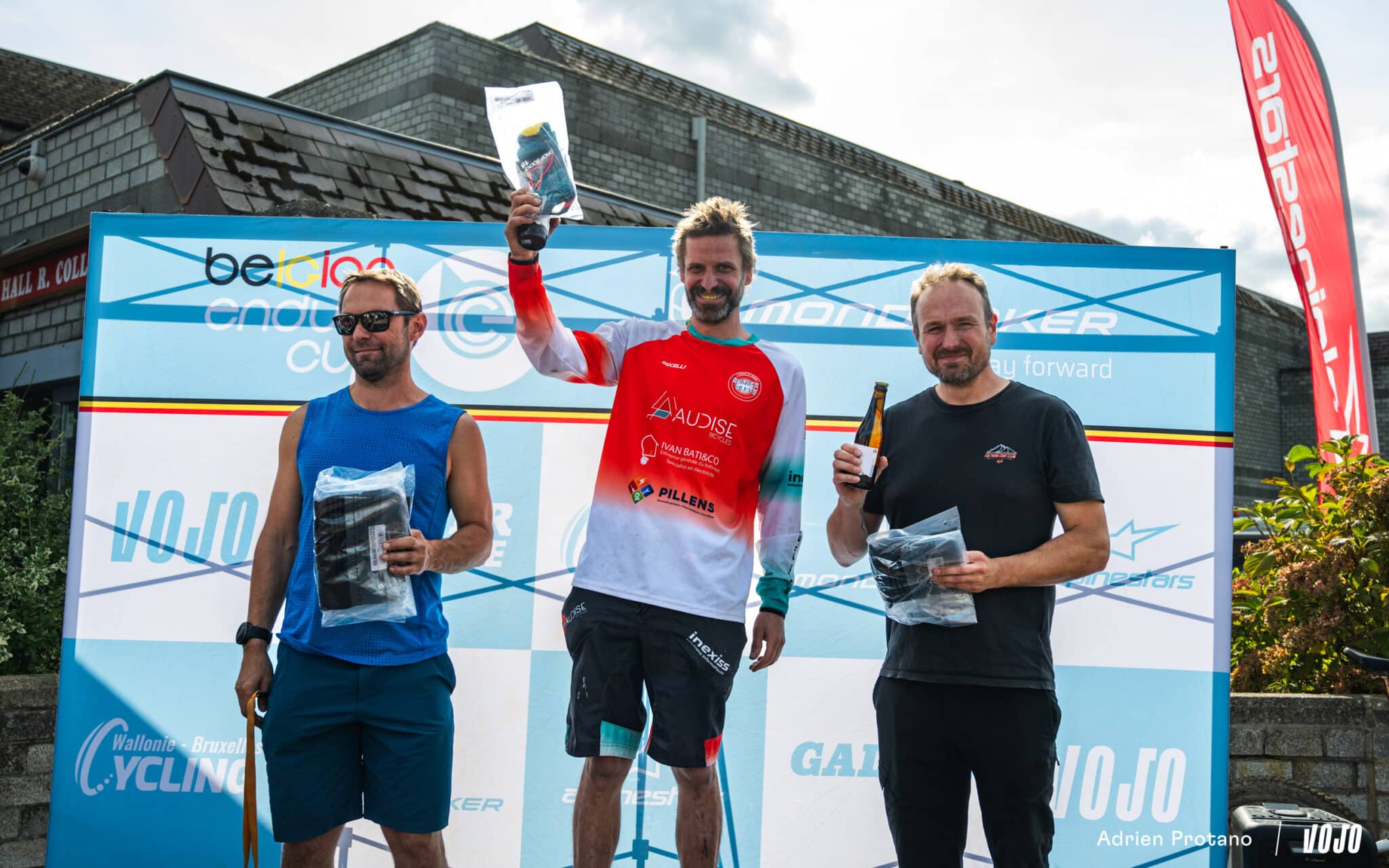 Et voici logiquement le podium Élites, avec les trois hommes précités de la catégorie !
