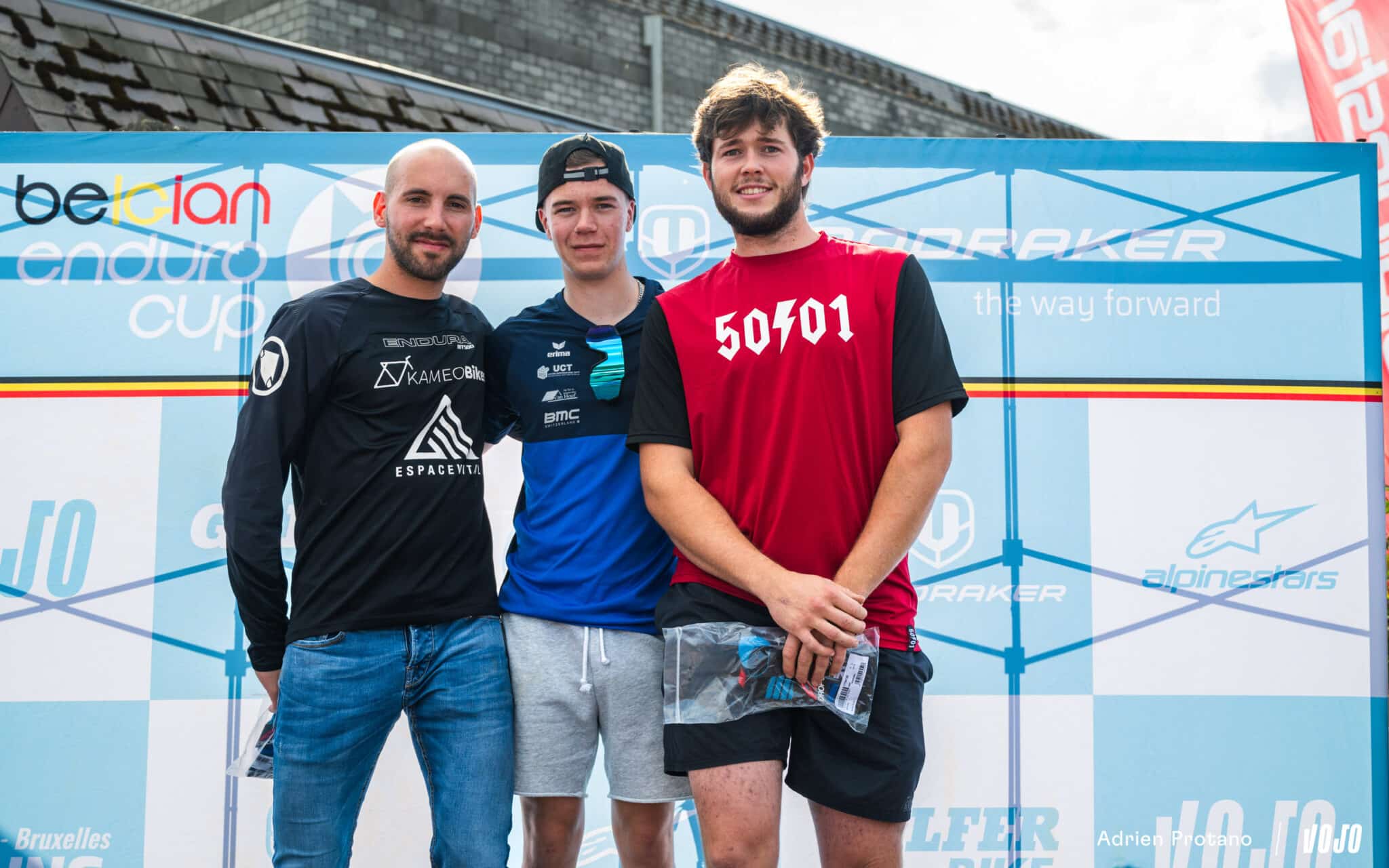 Toujours sur le podium, mais jamais victorieux cette saison, Tibo Breugelmans décroche enfin sa première victoire de la saison sur la Belgian Enduro Cup au sein de la catégorie Juniors, devant Bastien Giberne et Arthur Desmet.
