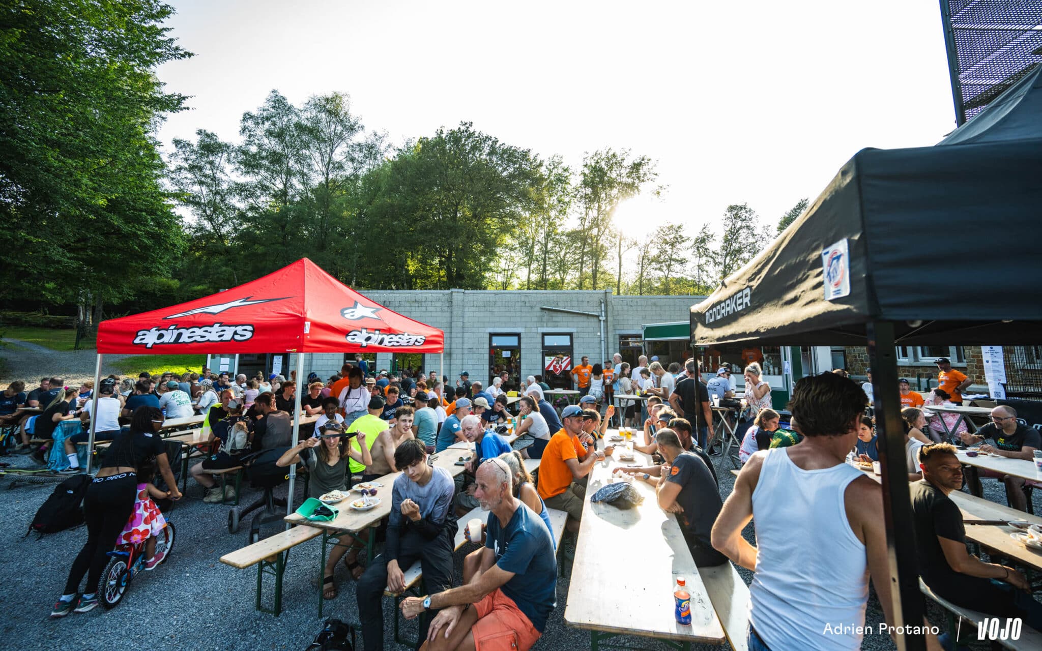 Retour au centre de course pour un verre et un souper bien mérité. Pour ceux qui ont encore de l’énergie, les organisateurs ont prévu un parcours de dual slalom et quelques vélos 16″, de quoi bien décompresser en cette fin de week-end de course.