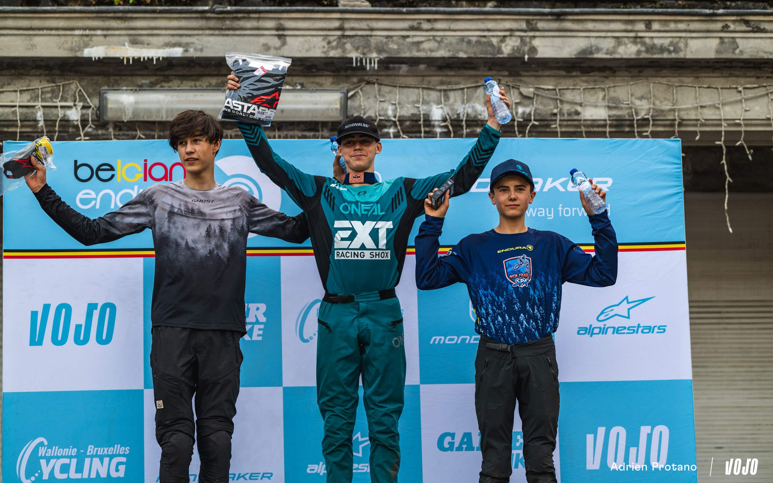Briek Van Duyse, 8e au classement général, remporte la catégorie Cadets. Jowi Cnossen monte sur la deuxième marche du podium, suivi de Sacha Hansoulle.