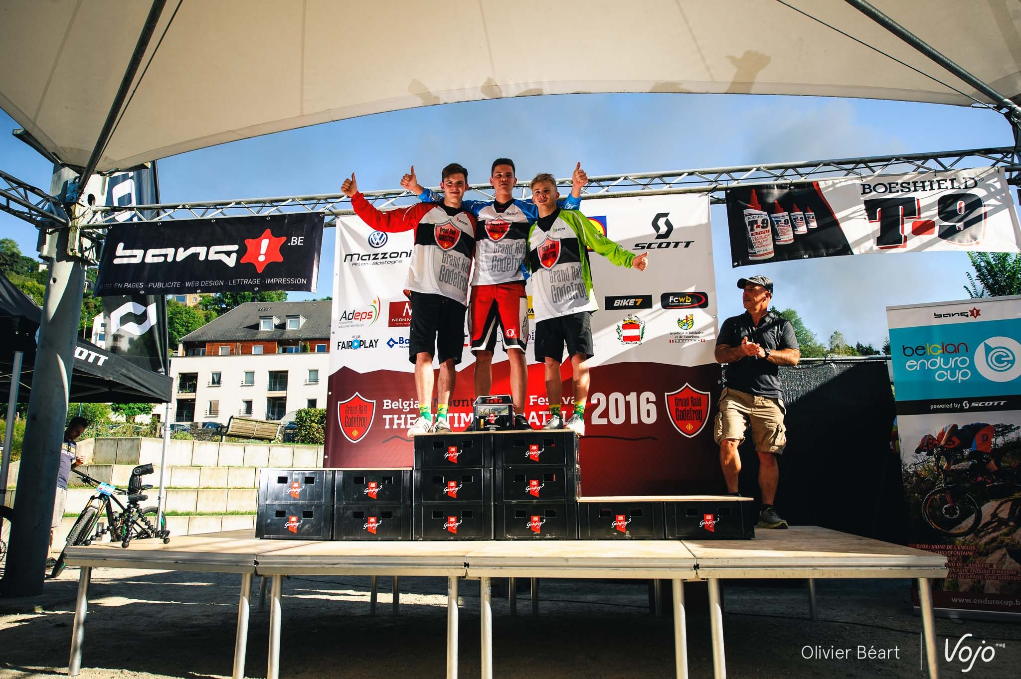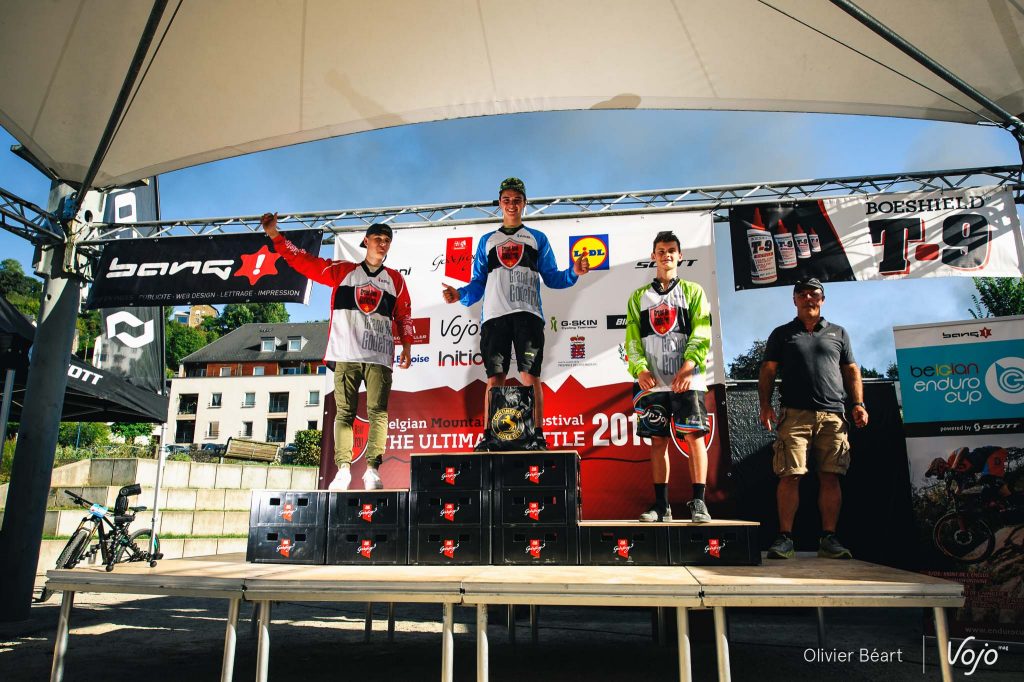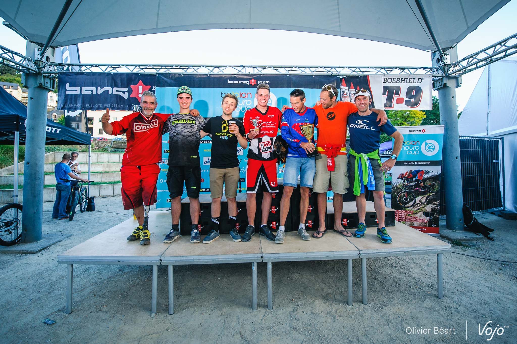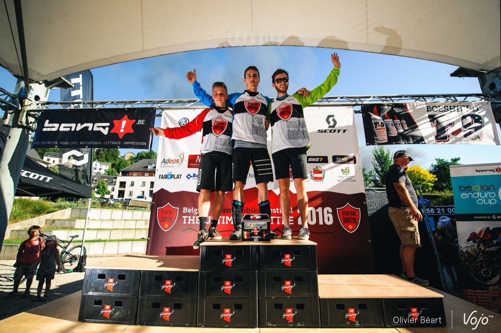 On en a eu des podiums à Bouillon sur l’enduro ! Commençons avec la course et, dans l’ordre : Elites, Cadets, Juniors, Dames, une nouvelle catégorie Handisport créée pour l’occasion pour célébrer la performance de Guillaume Lebleu, amputé de la jambe gauche qui espère en inspirer d’autres pour l’an prochain ; puis enfin les Masters 1, 2 et 3.