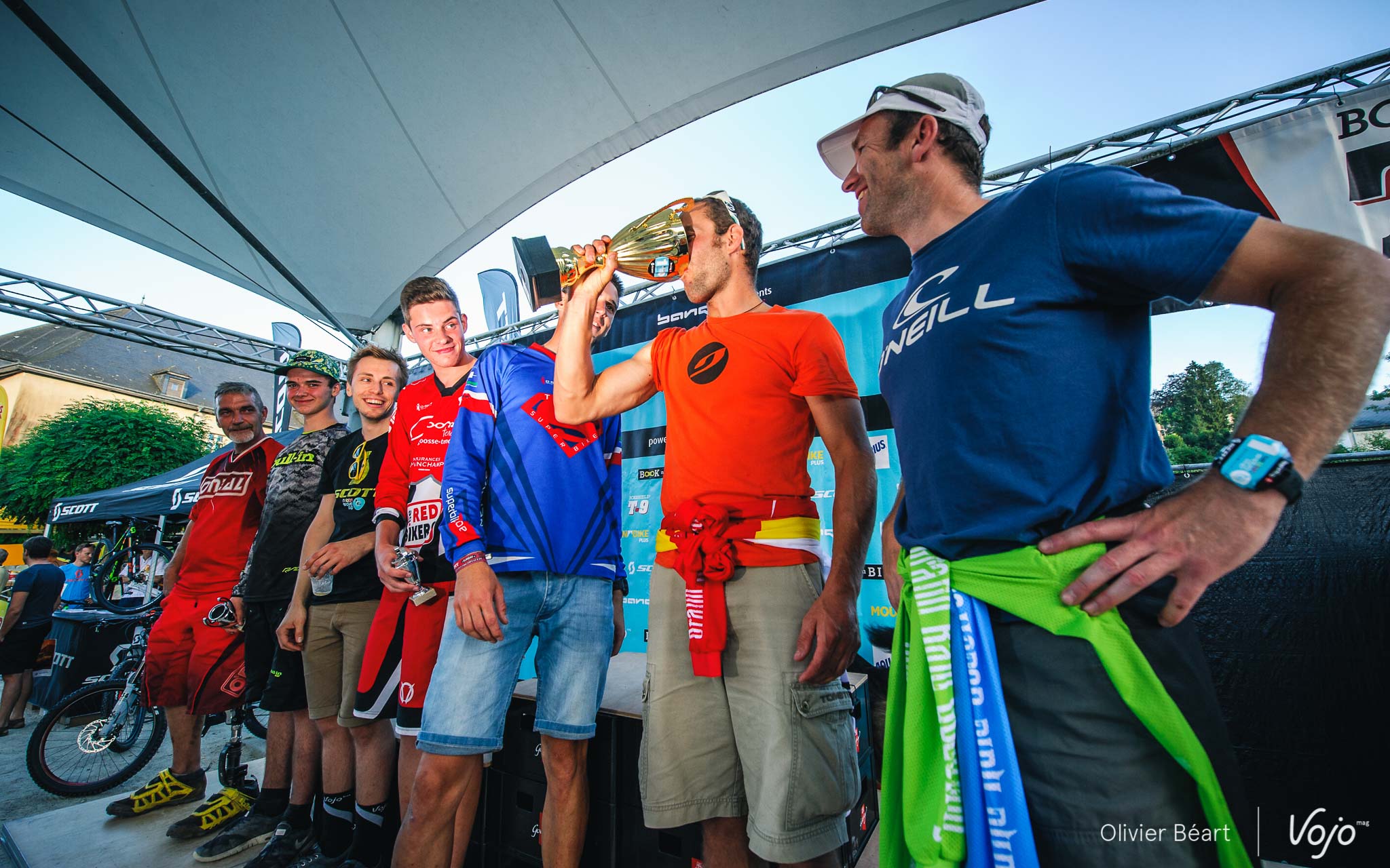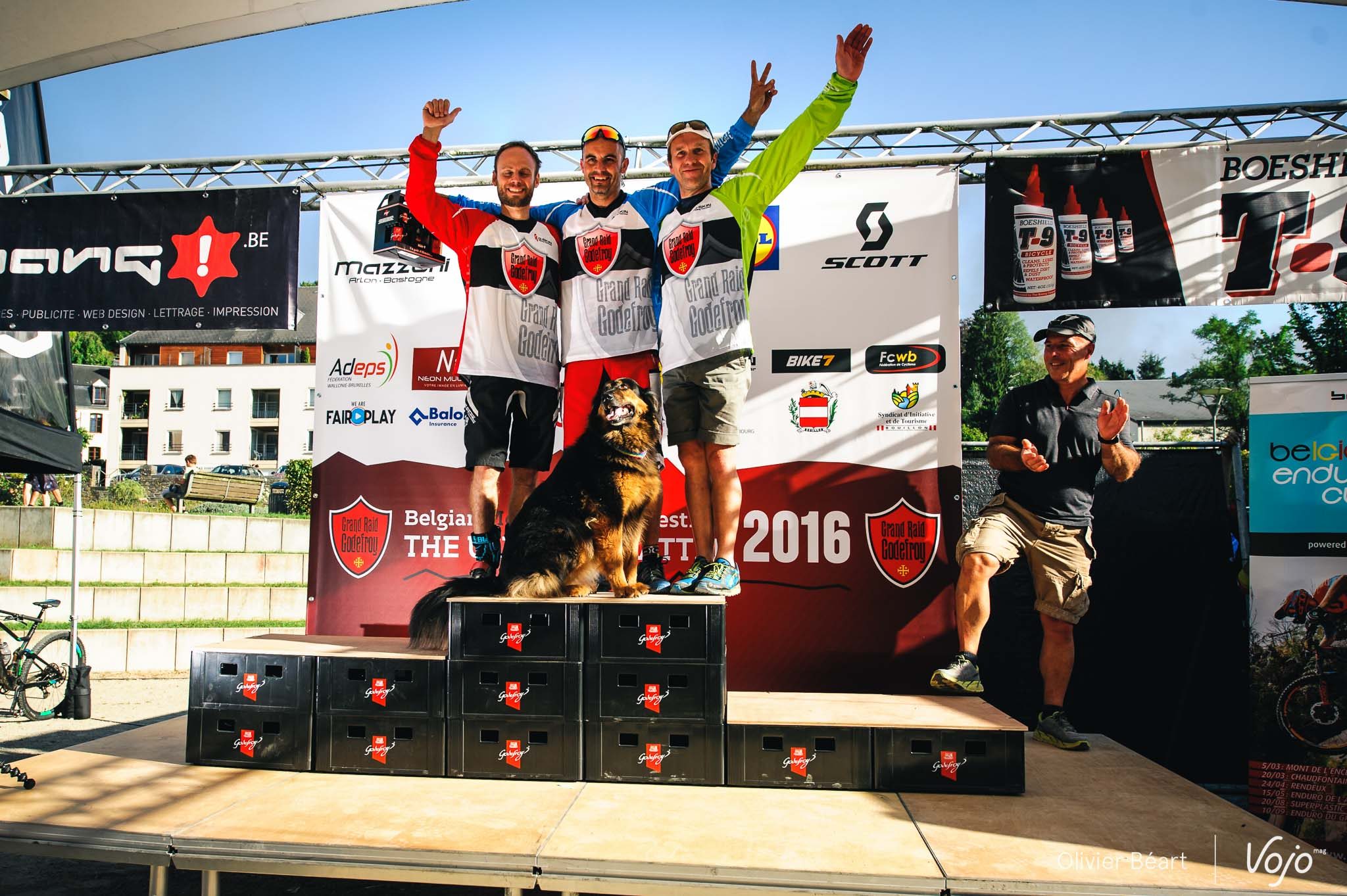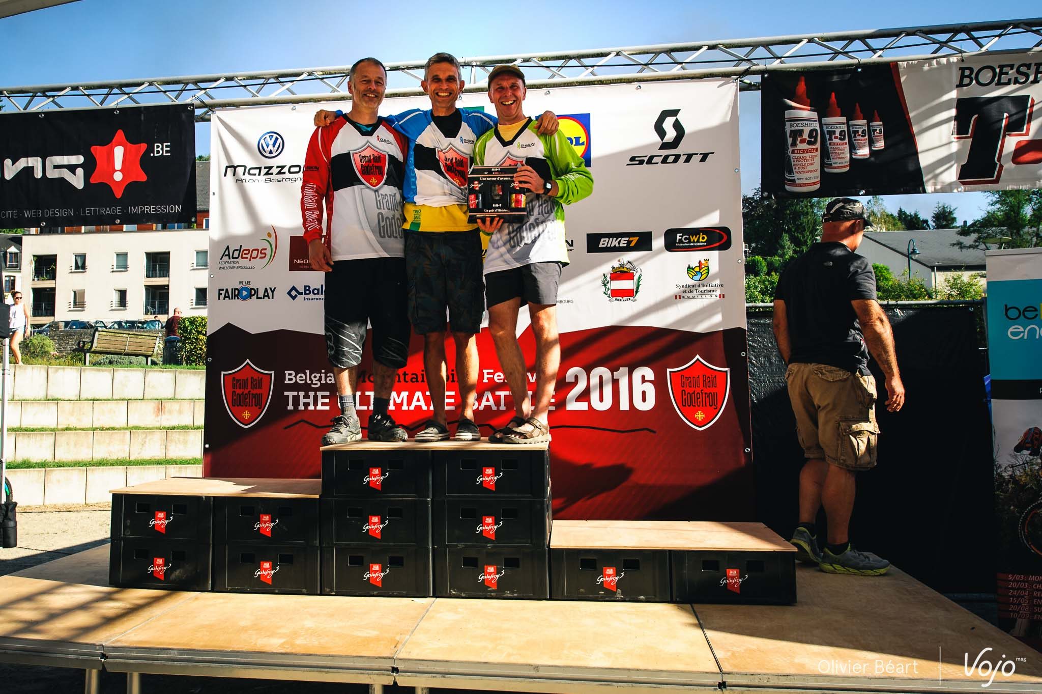 On en a eu des podiums à Bouillon sur l’enduro ! Commençons avec la course et, dans l’ordre : Elites, Cadets, Juniors, Dames, une nouvelle catégorie Handisport créée pour l’occasion pour célébrer la performance de Guillaume Lebleu, amputé de la jambe gauche qui espère en inspirer d’autres pour l’an prochain ; puis enfin les Masters 1, 2 et 3.