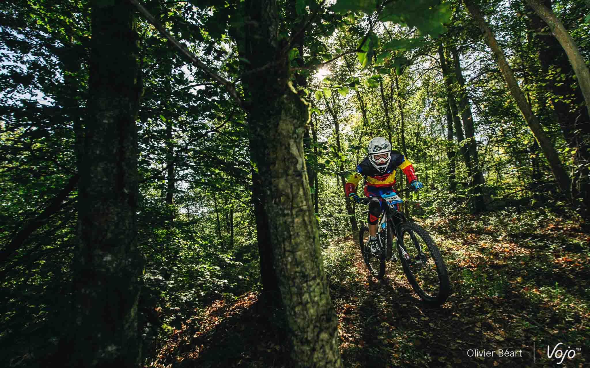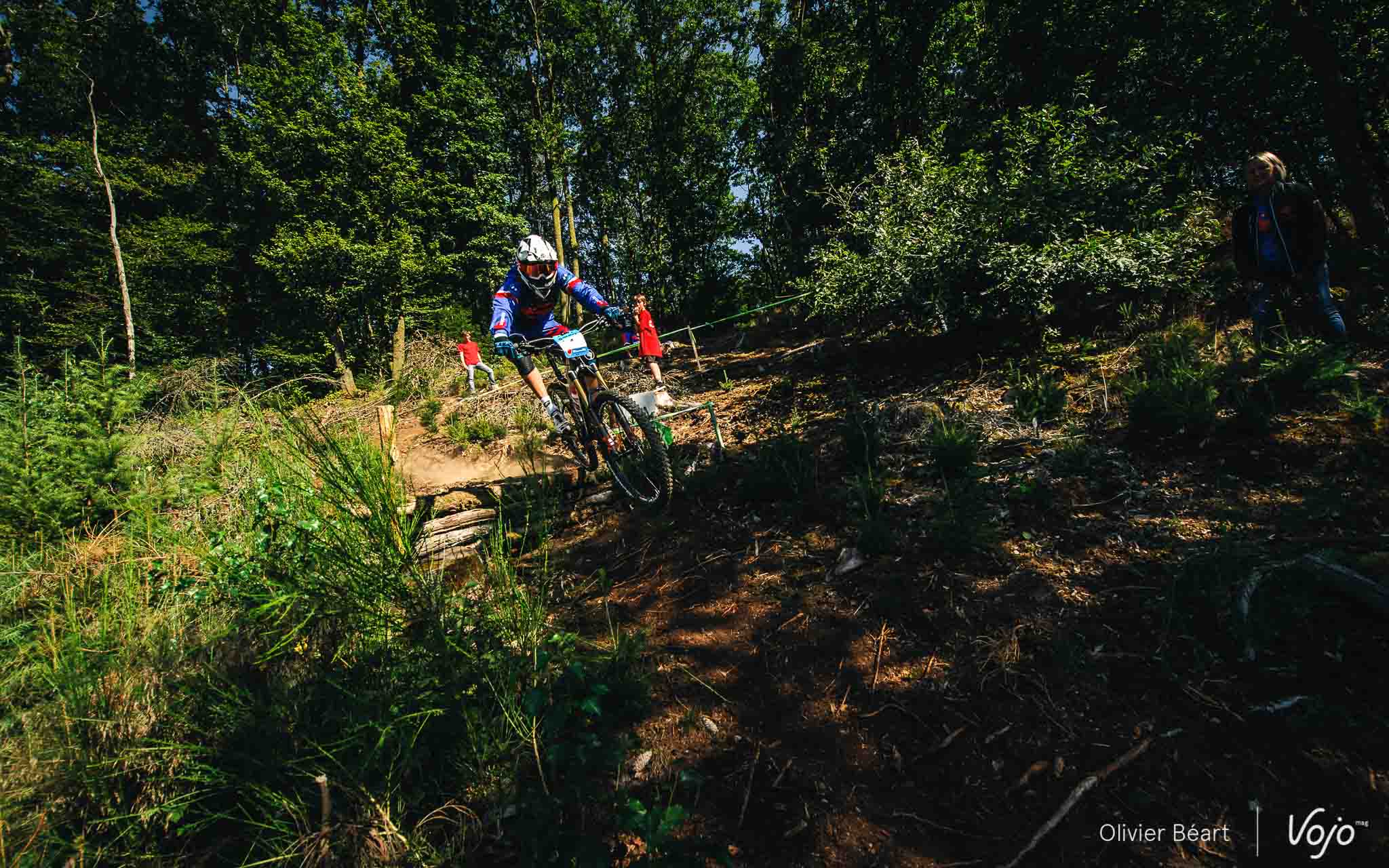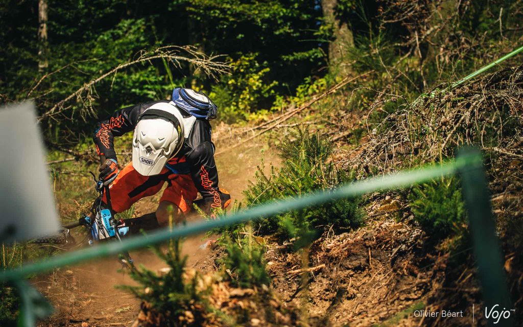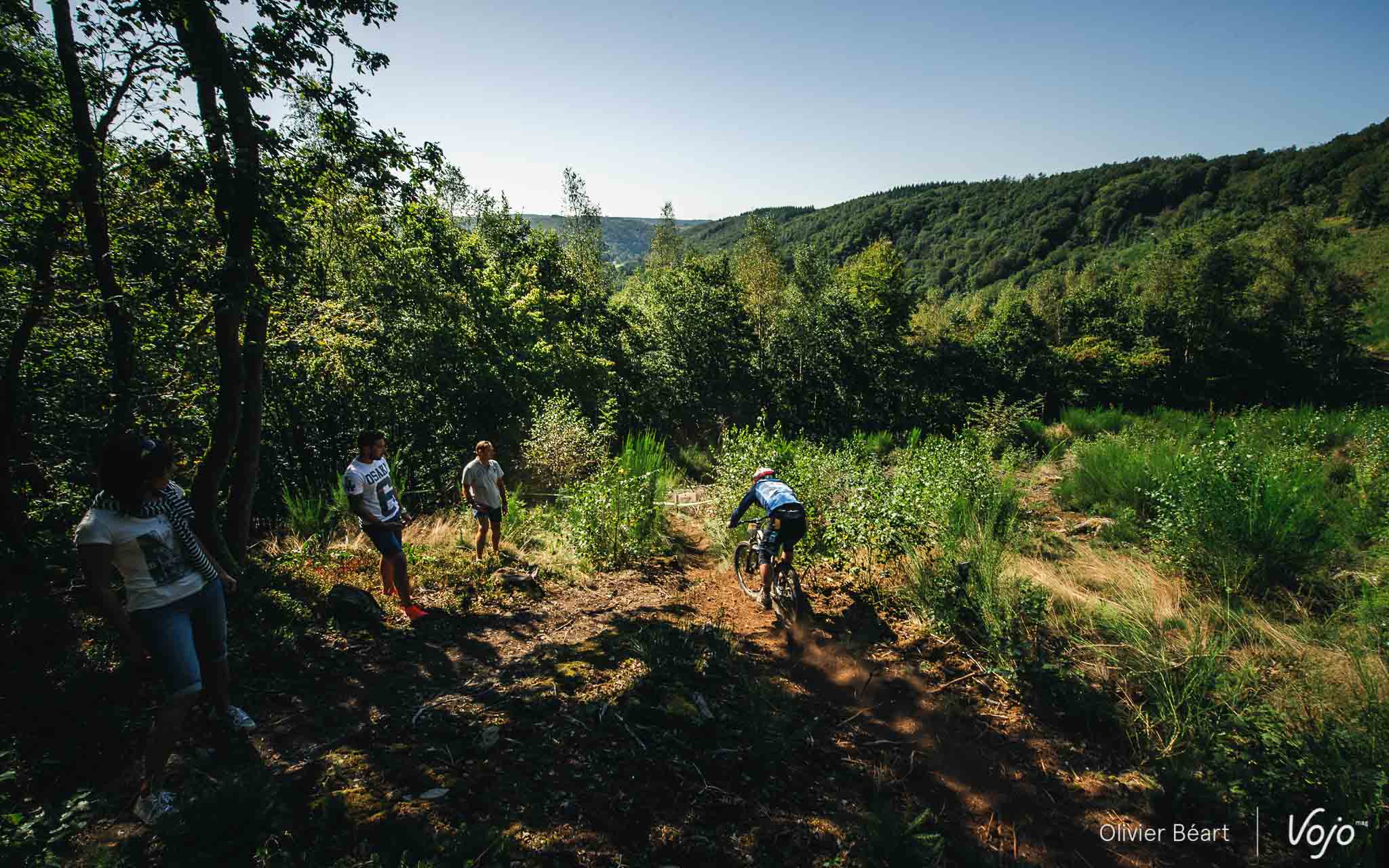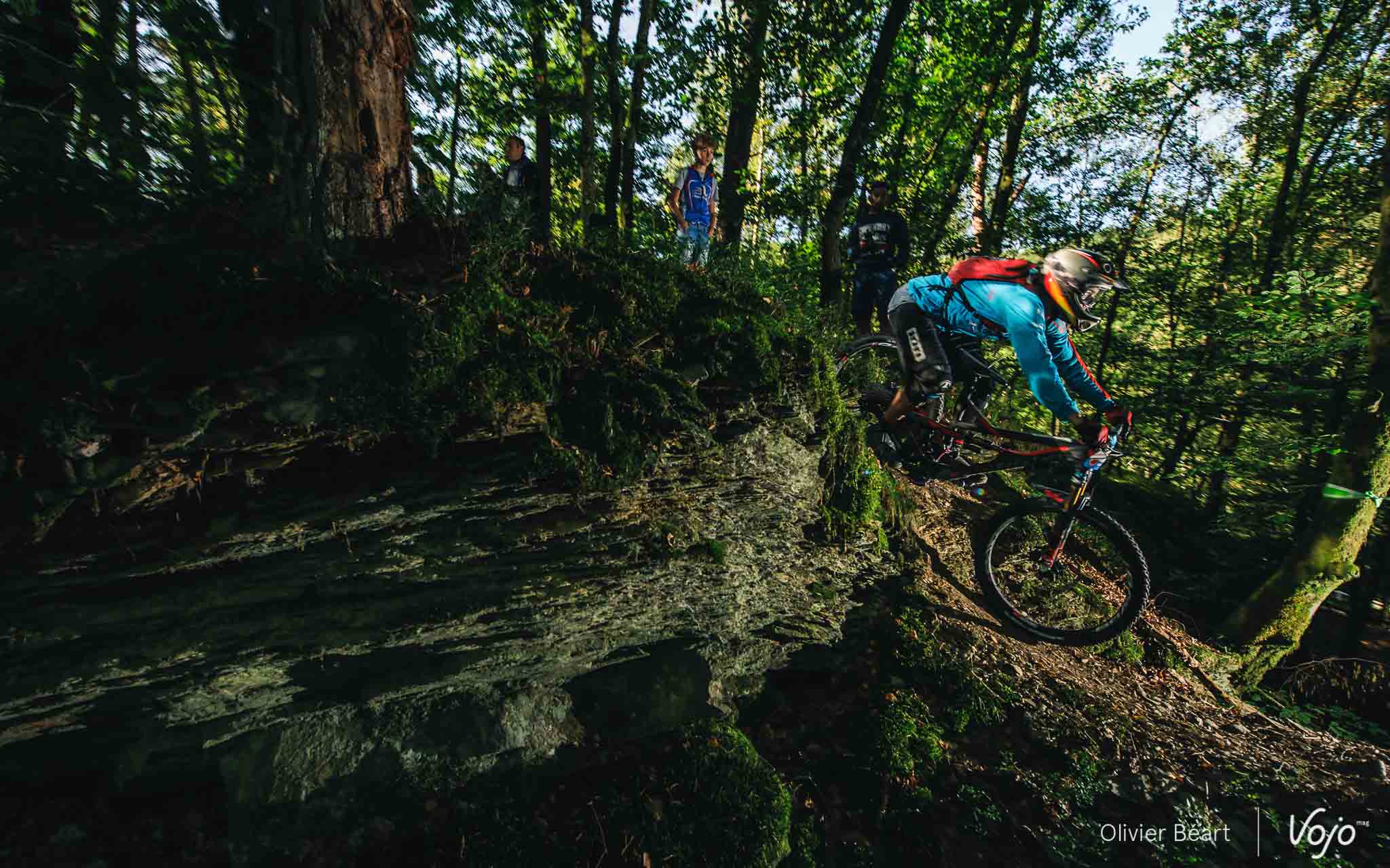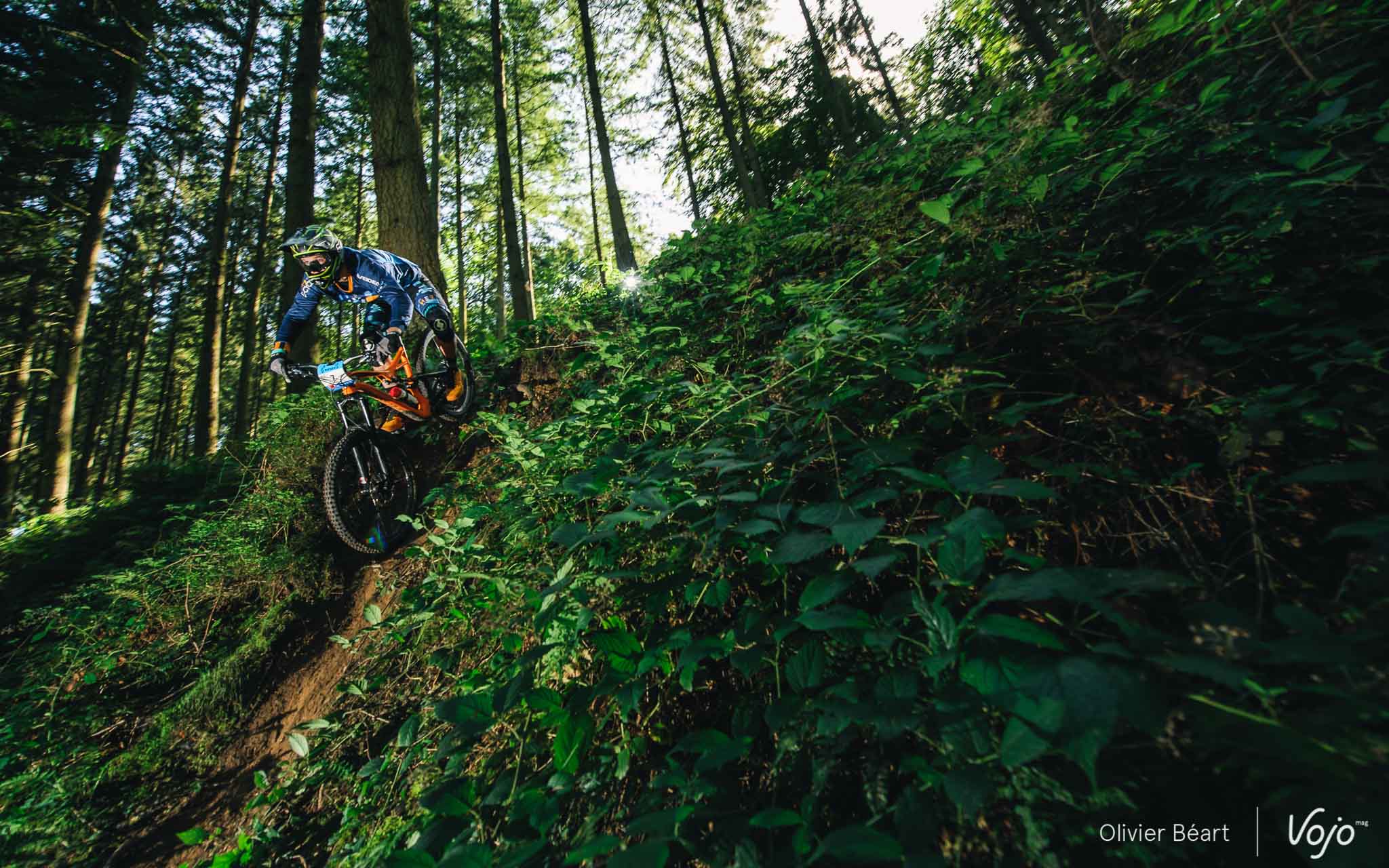 Cette SP3 a fait des dégâts avec pas mal de crevaisons et de belles chutes à cause d’un terrain poussiéreux et glissant, façon World Cup DH à Andorre ou Worlds de Val di Sole. Sur la trace, on croise un des grands animateurs du début de saison de la Belgian Enduro Cup et vainqueur de l’Enduro de l’Amblève, Olivier Bruwiere, qui se remet doucement d’une fracture de la clavicule. Et hop, sans les mains !