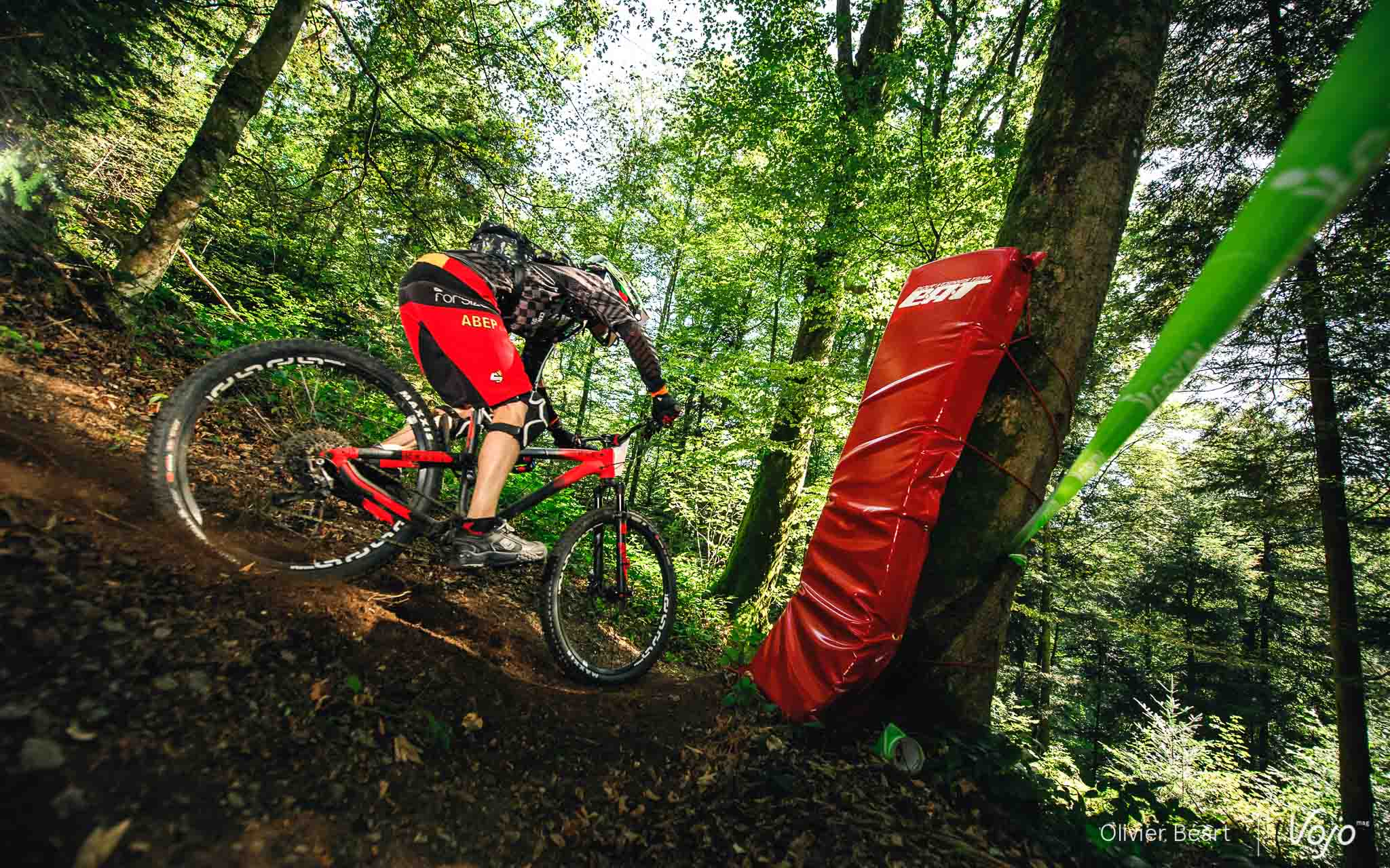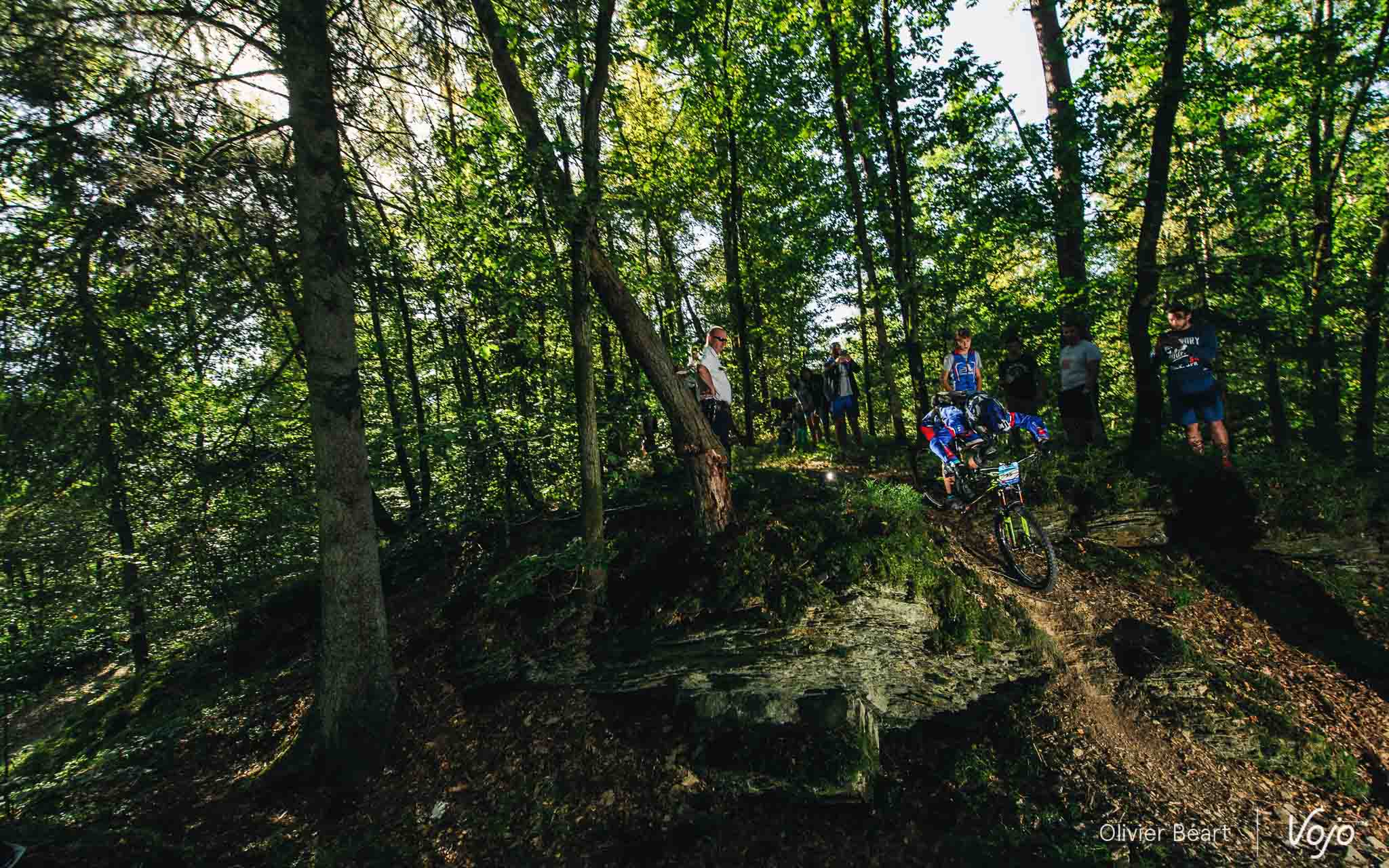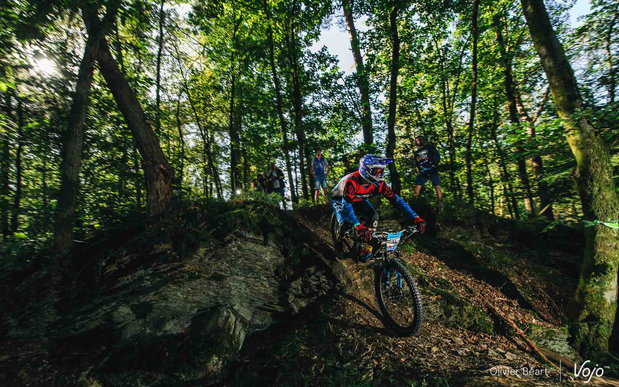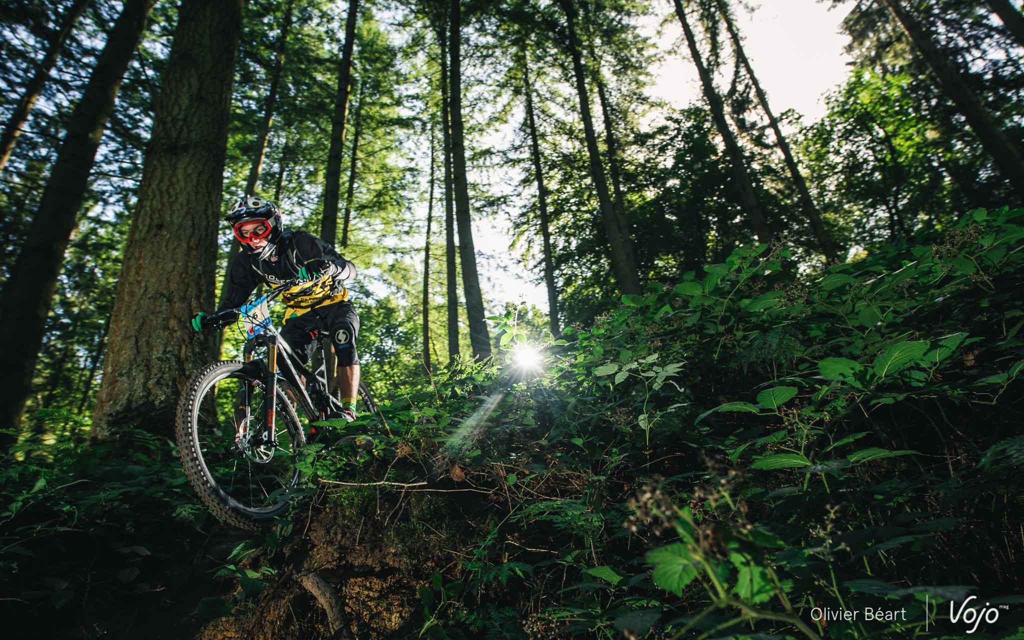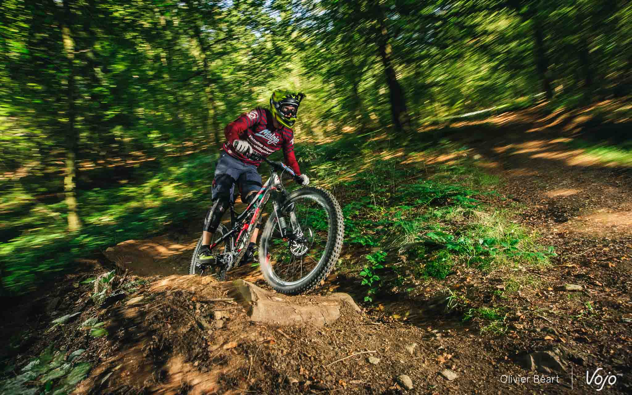Cette SP3 a fait des dégâts avec pas mal de crevaisons et de belles chutes à cause d’un terrain poussiéreux et glissant, façon World Cup DH à Andorre ou Worlds de Val di Sole. Sur la trace, on croise un des grands animateurs du début de saison de la Belgian Enduro Cup et vainqueur de l’Enduro de l’Amblève, Olivier Bruwiere, qui se remet doucement d’une fracture de la clavicule. Et hop, sans les mains !
