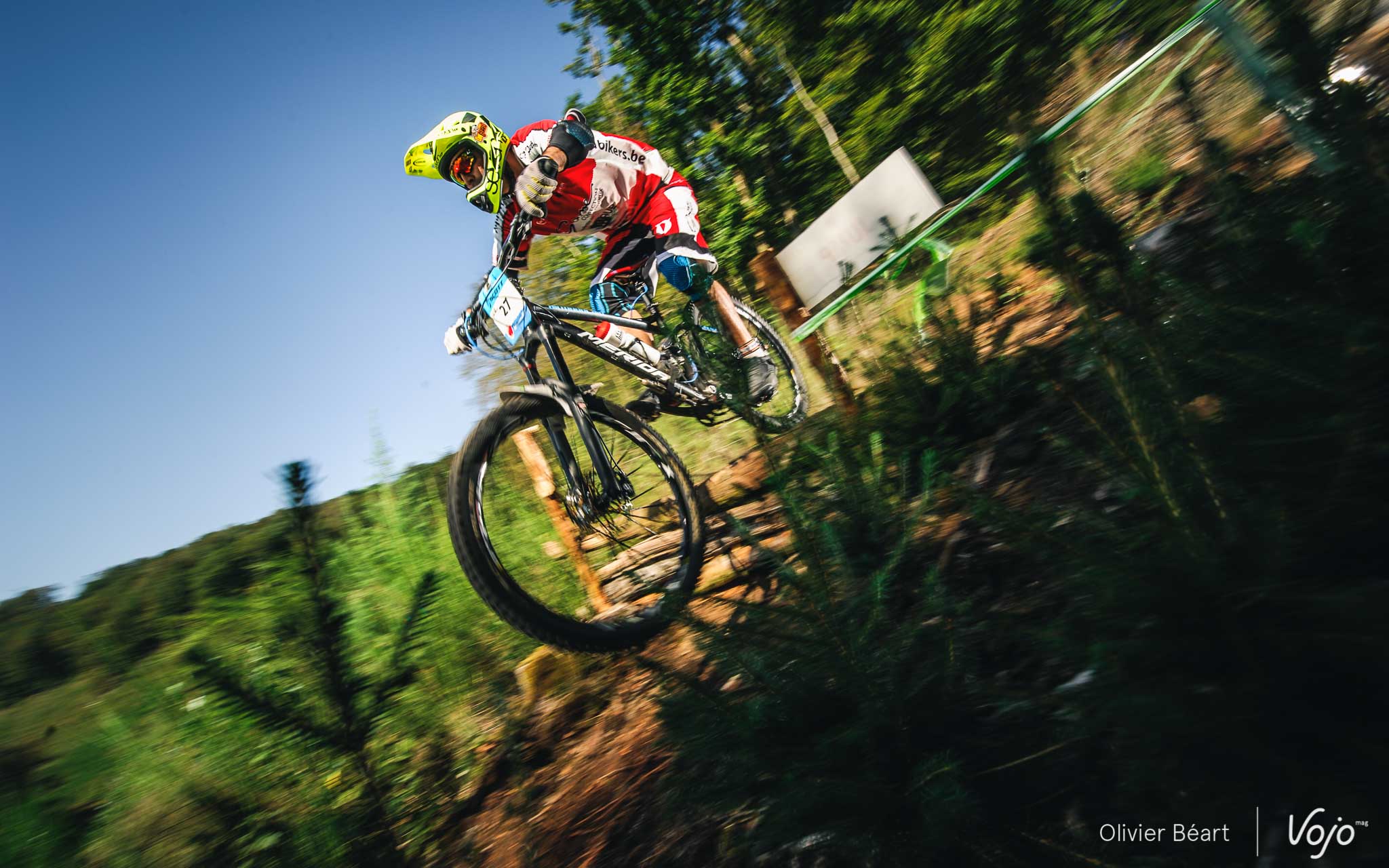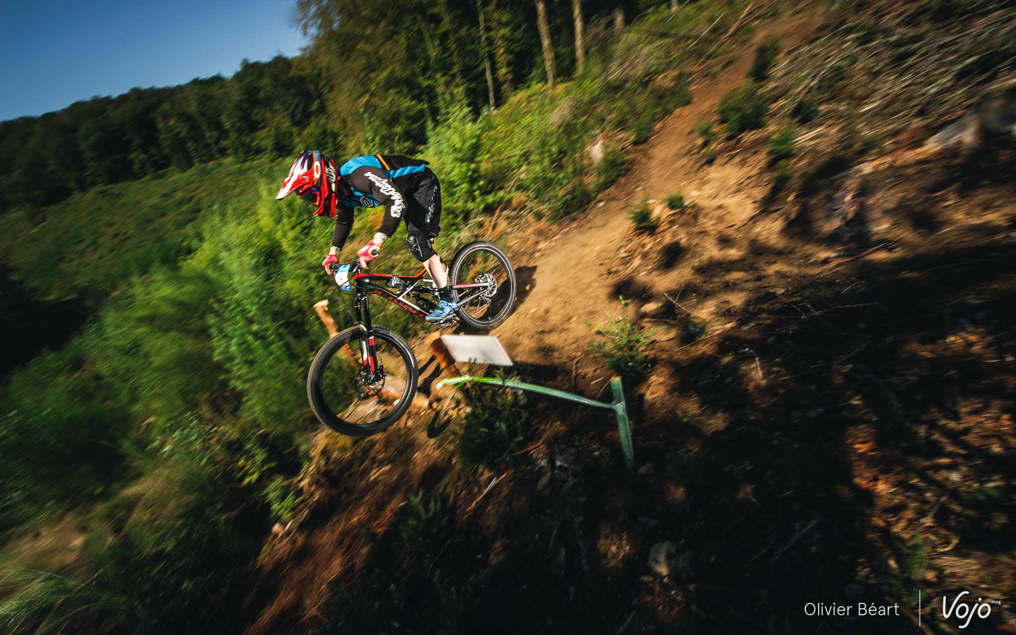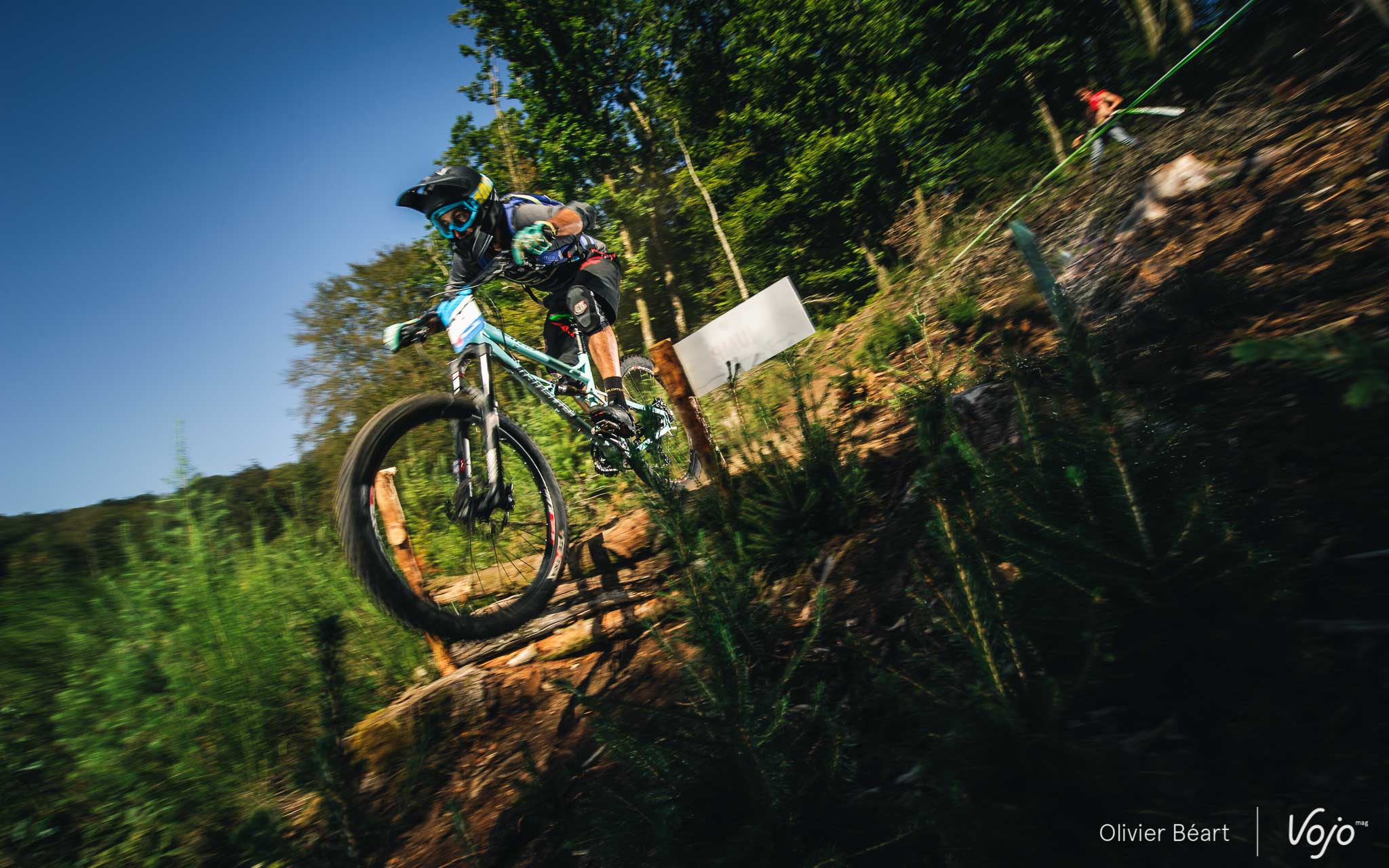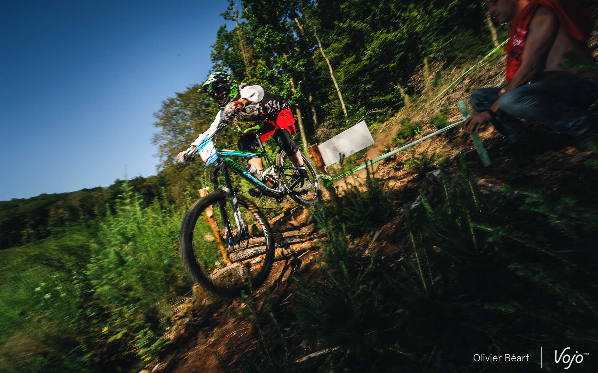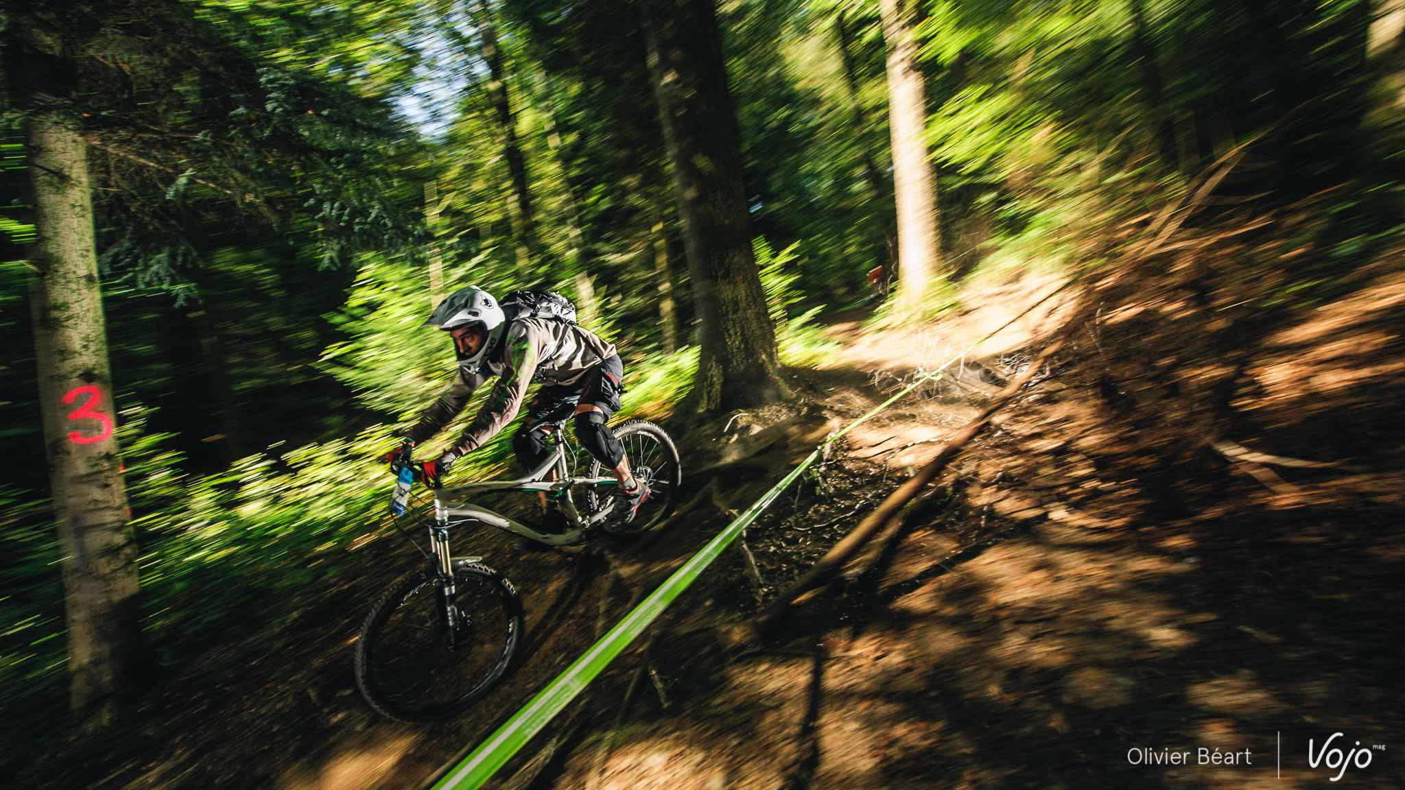 Cette SP3 a fait des dégâts avec pas mal de crevaisons et de belles chutes à cause d’un terrain poussiéreux et glissant, façon World Cup DH à Andorre ou Worlds de Val di Sole. Sur la trace, on croise un des grands animateurs du début de saison de la Belgian Enduro Cup et vainqueur de l’Enduro de l’Amblève, Olivier Bruwiere, qui se remet doucement d’une fracture de la clavicule. Et hop, sans les mains !