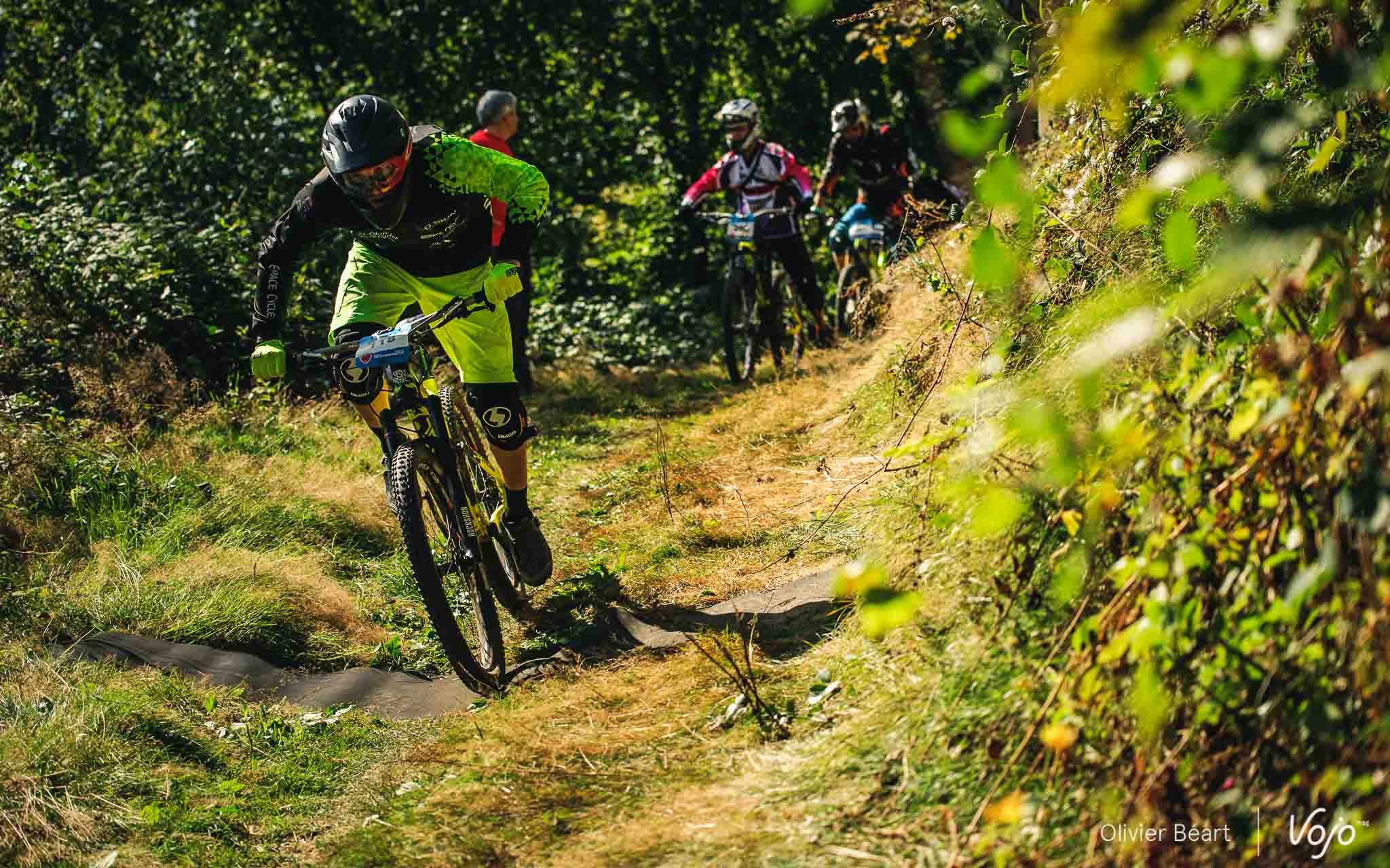 Au menu, pas mal de virages relevés et des jumps (où différents styles peuvent s’exprimer, plus aérien ou tassé sur la machine comme pour Greg Masson, le chef d’orchestre de la BEC qui s’est ici permis de prendre un dossard pour regoûter aux joies de la compétition)