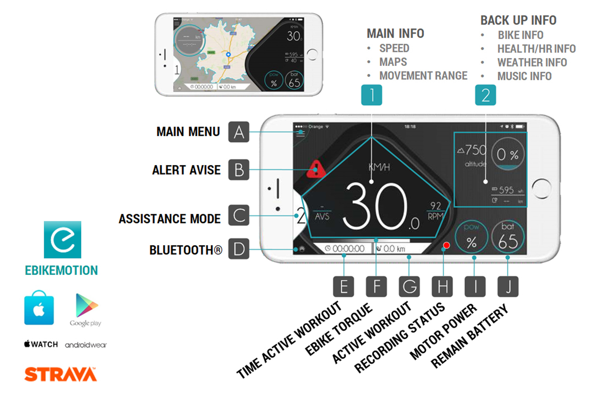 L’ensemble des données se paramètre sur votre smartphone grâce à l’application Ebikemotion, disponible sous Androïd et Apple. Il est également possible d’intégrer la fonction GPS et de télécharger gratuitement 4 cartes (Google Maps) d’Europe – ce qui n’était pas encore réalisable sur nos versions de test.