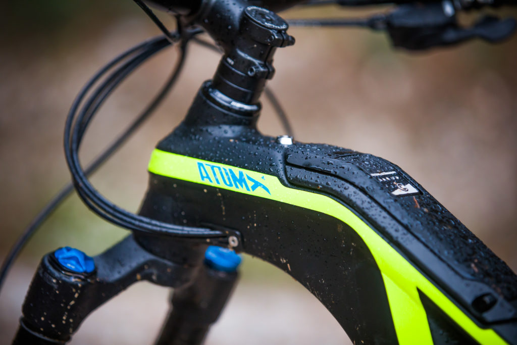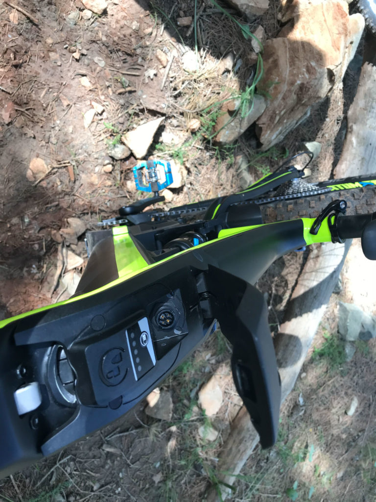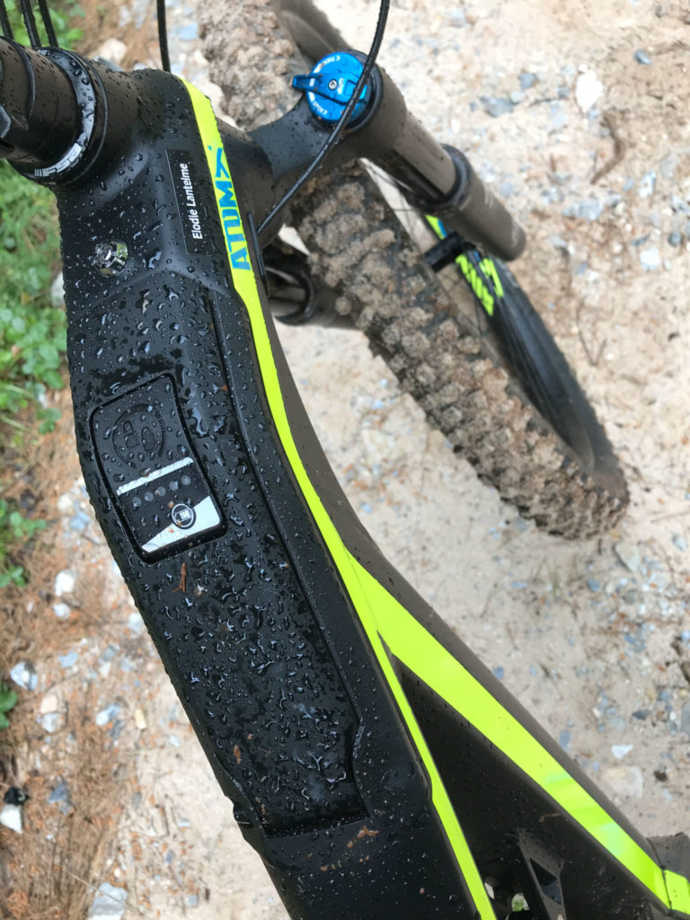 Pour la consommation, après un roulage de 40 km et un peu plus de 1300 m de dénivelé positif majoritairement avalés entre les modes Éco et Sport mais en réservant le Boost aux quelques portions plus raides ou à cette longue montée de 6 km façon bavante sur chemin carrossable, sans chercher vraiment à économiser la batterie, il restait encore 34 % à la fin de la journée. Un gros tiers qui, s’il est loin des 150 km annoncés, donne envie de tester l’Atom X sur nos chemins des Alpes, afin de voir si l’on bénéficie vraiment du gain de 40% de temps de roulage annoncé par la marque en regard de la concurrence.