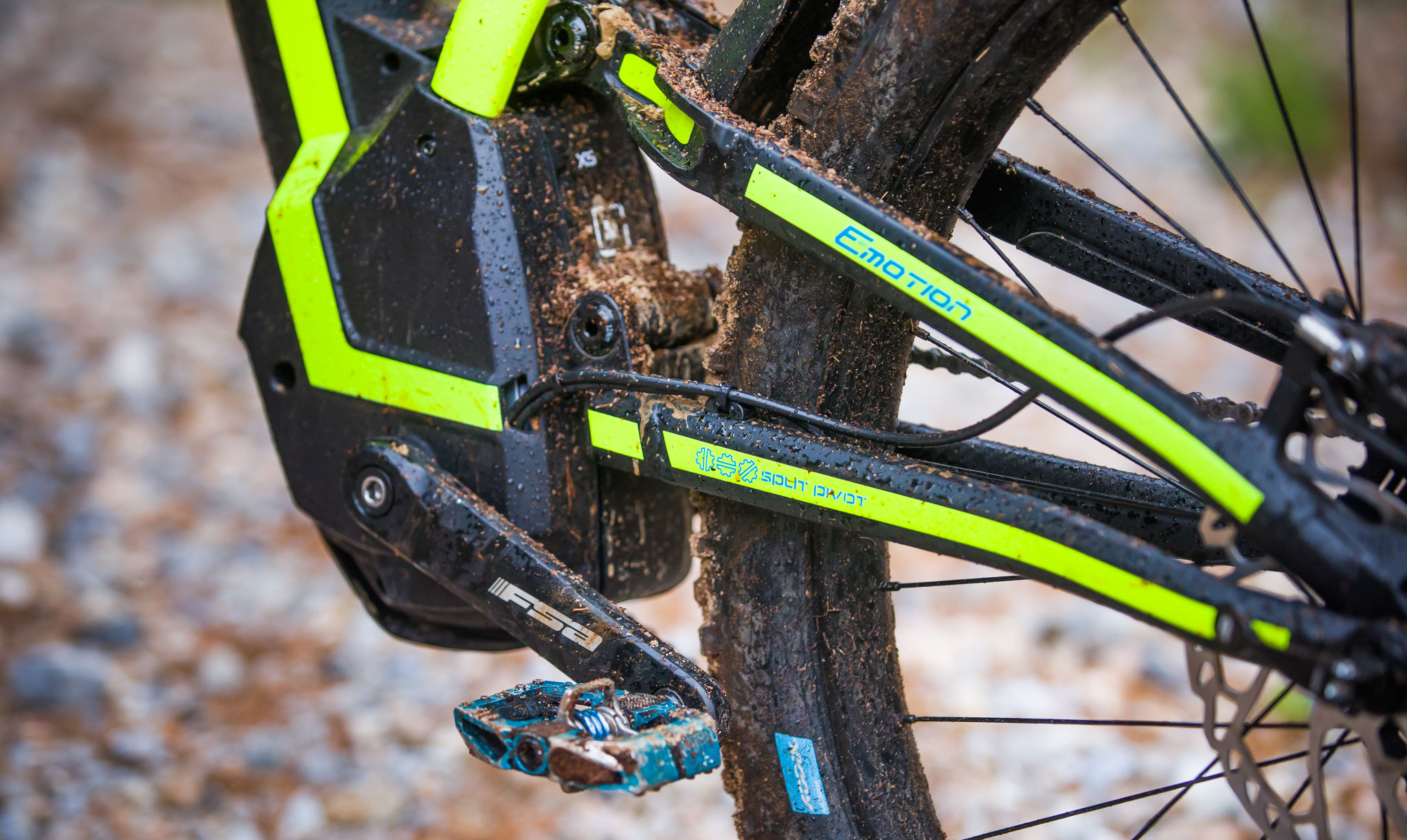 Notre dernier – et premier – contact avec la motorisation Brose remontant au Specialized Levo lors d’un court run durant le Roc d’Azur 2015, on avait hâte de voir l’évolution de sa technologie. Nous en avions gardé le souvenir d’un moteur silencieux mais qui peinait parfois à se faire sentir dans les jambes et, surtout, chauffait jusqu’à la coupure intempestive. Pour prévenir tout effet de surchauffe, les Espagnols de BH ont d’ailleurs doté leur Atom X d’une assiette latérale spéciale qui dissiperait jusqu’à 15% de chaleur.