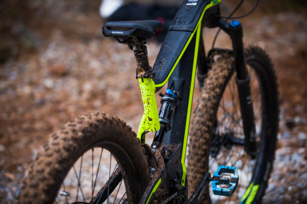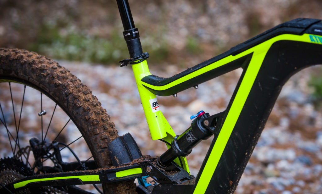 Avant de partir, il a fallu un peu adapter le BH AtomX, parce que dans cette version Lynx 6, à cause des contraintes qui obligerait à redessiner l’avant du cadre (rigidifié par un apport de matière) et l’insertion de l’amortisseur dans une taille plus petite, il n’est proposé qu’en tailles M et L.