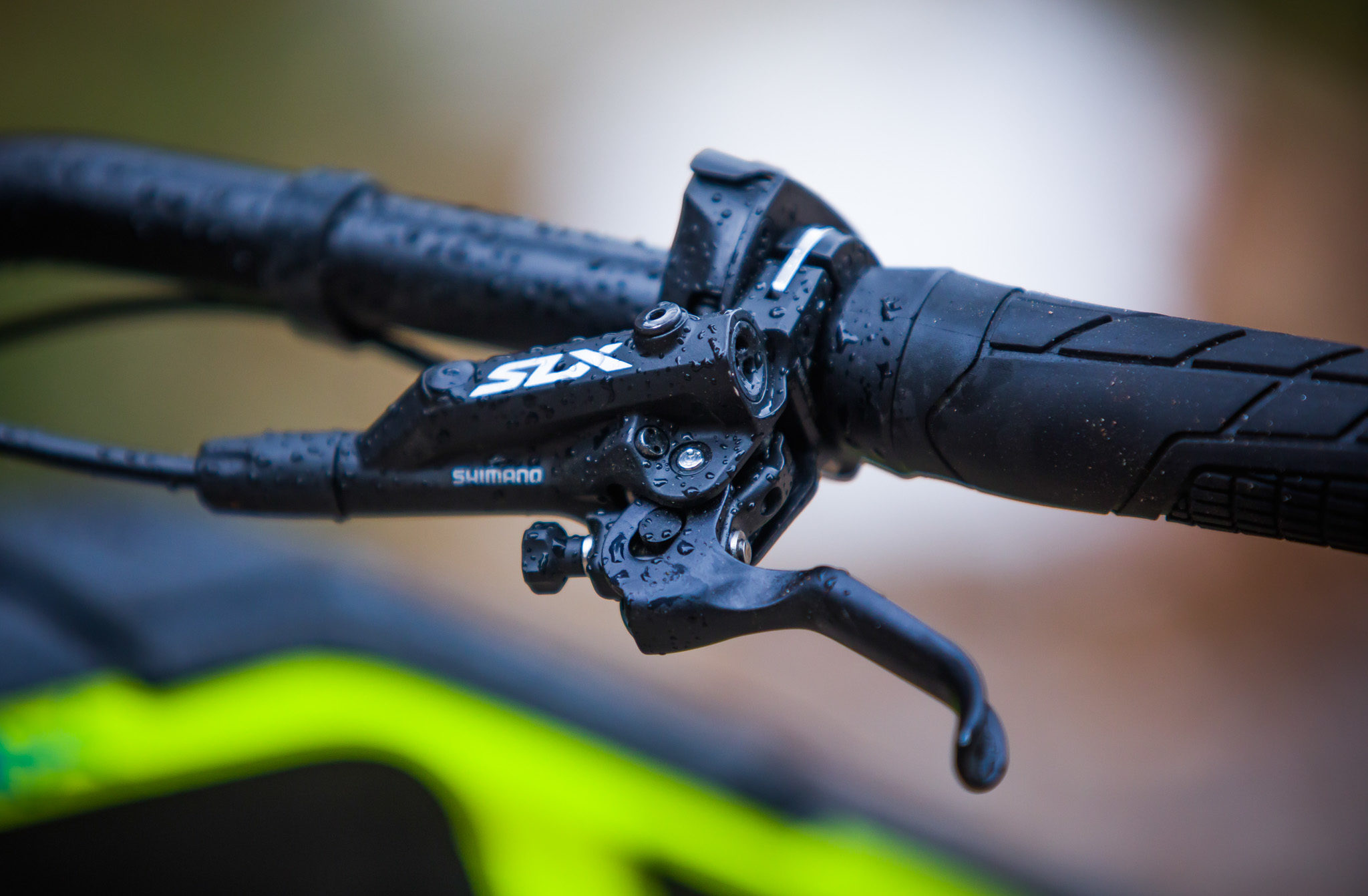Le montage laisse ensuite la part belle à Shimano, avec des freins SLX en 200 mm à l’avant et 180 à l’arrière, et une transmission évidemment monoplateau (le double a-t-il existé un jour ?), en 1×11, cassette SLX 11/46 et plateau de 32 dents, le tout actionné via des shifters SLX sur un cintre maison de 780 mm.