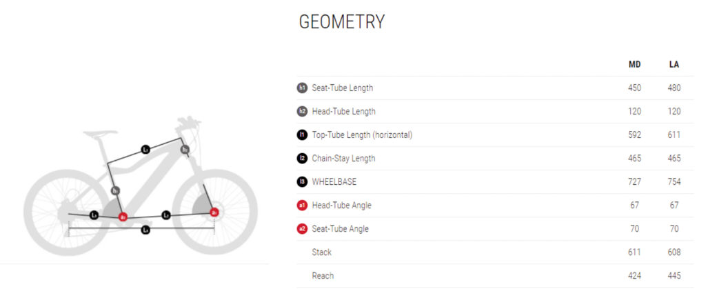 Côté géométrie, pour le taille M toujours, avec des bases de 460 mm, un angle de fourche de 67°, un angle de selle de 74, un reach de 425 et un stack de 611, on sent la volonté de BH de proposer des ebikes au comportement proche de ses modèles “classiques”, et aussi d’avoir un vélo taillé pour un pilotage qui peut être engagé.