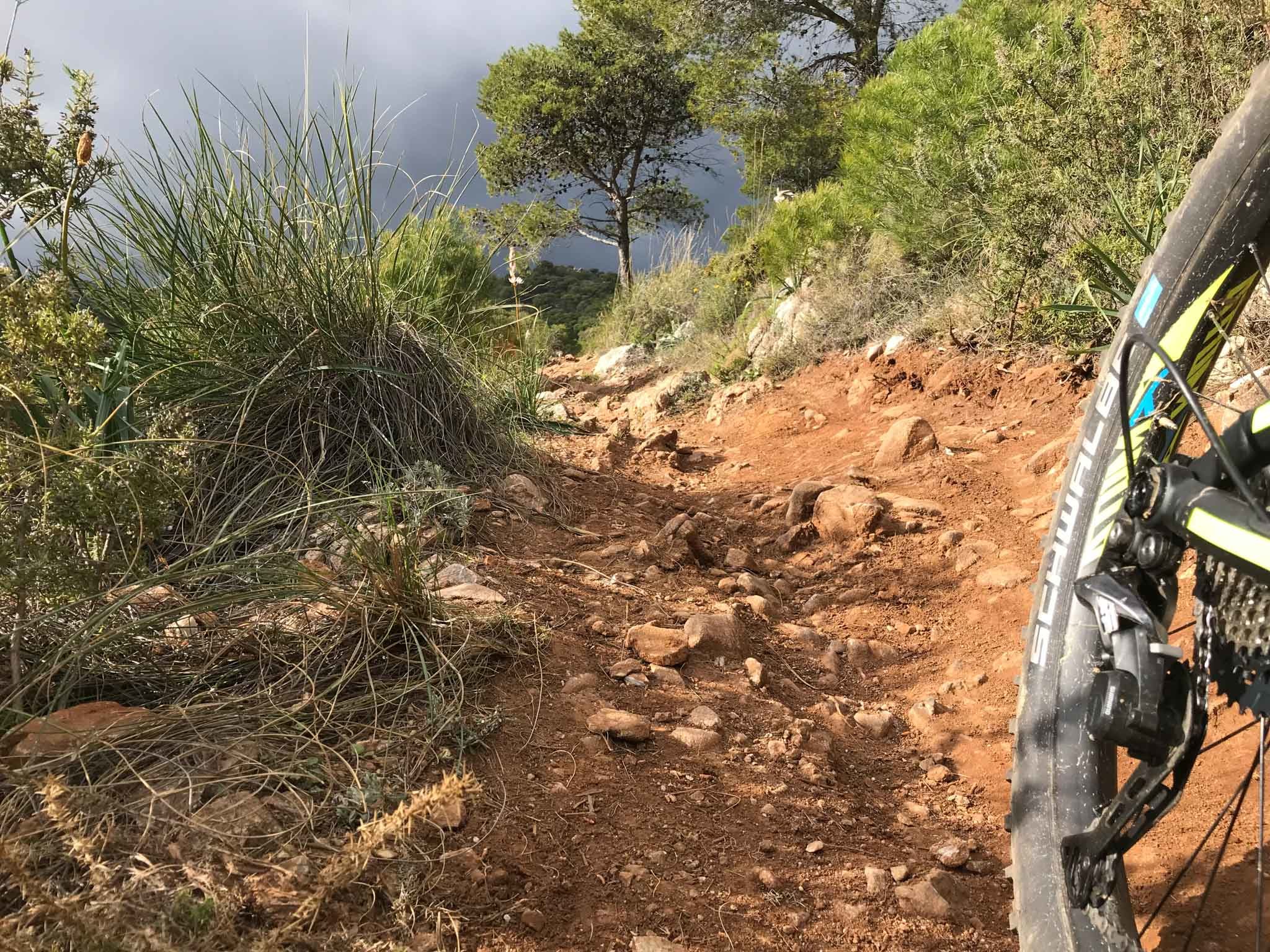 Pour le train roulant, roues Alexrims Volar en 3,8, jantes en 35 et pneus Schwalbe Nobby Nic en 27,5+ de section 2,8 compatibles (et montés ainsi pour notre galop d’essai) tubeless avec gomme Addix Speedgrip (une gomme légèrement renforcée, selon le manufacturier allemand, qui la destine à une pratique trail/all-mountain) ont été choisis.Il ne nous restait donc plus qu’à les emmener se promener dans les montagnes andalouses.