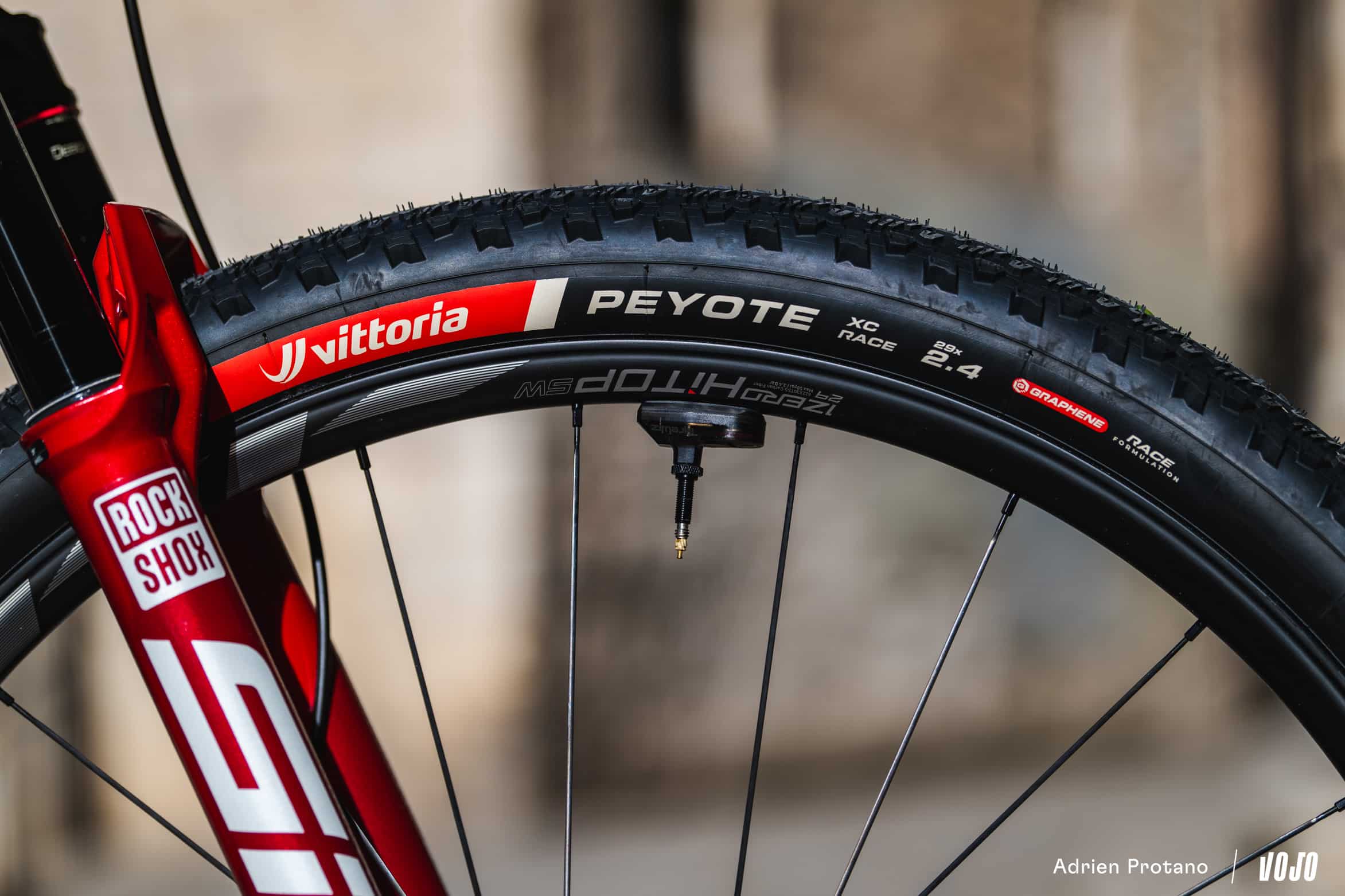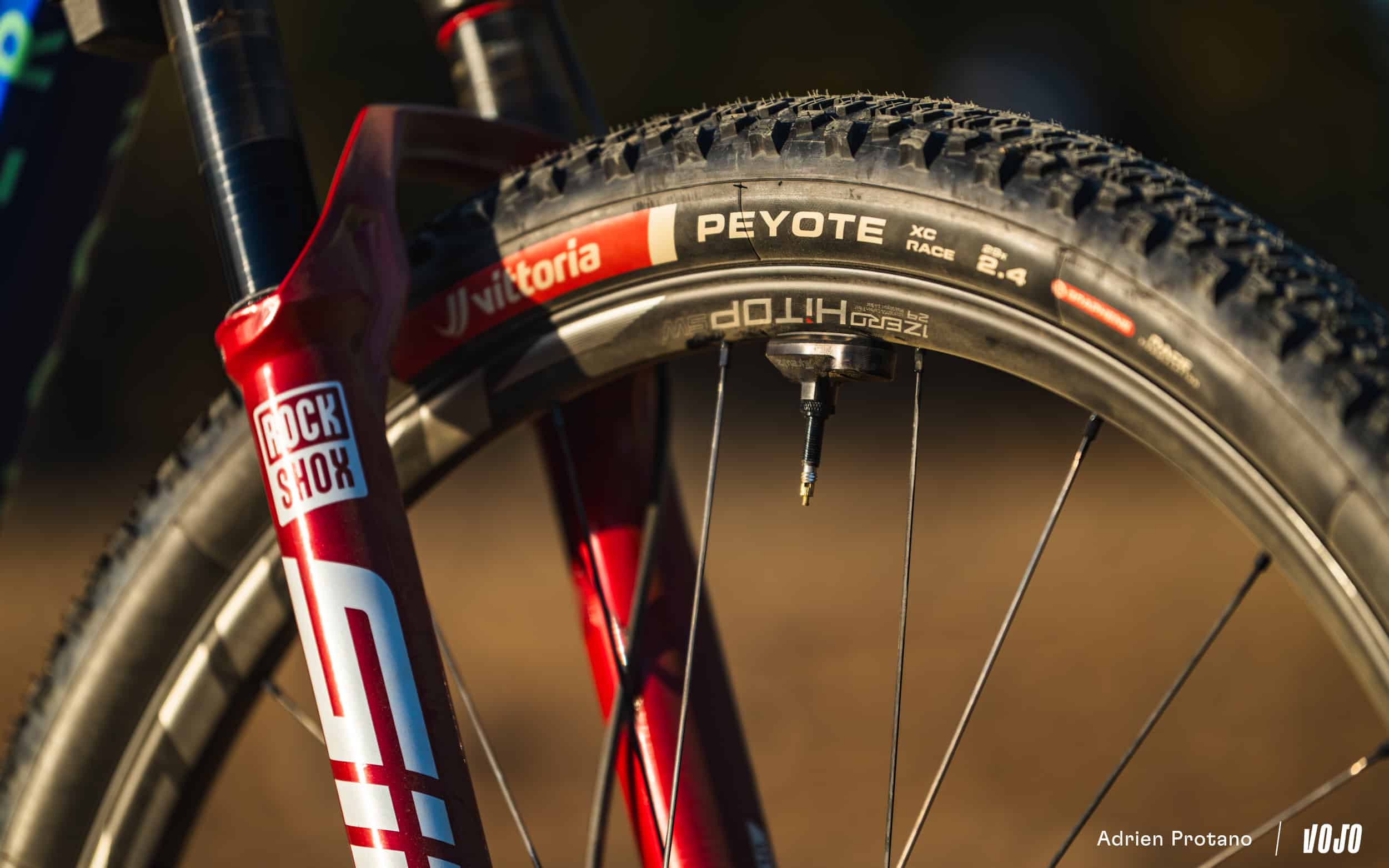 Après trois années de collaboration avec Hutchinson, le Decathlon Ford Racing Team s’associe à Vittoria pour 2025. Pour les conditions sèches de Gérone, c’est le modèle Peyote qui a été choisi par l’équipe pour ces premiers tests de la saison, avec une gomme Graphène, une carcasse en 60 TPI et une section de 2.4.