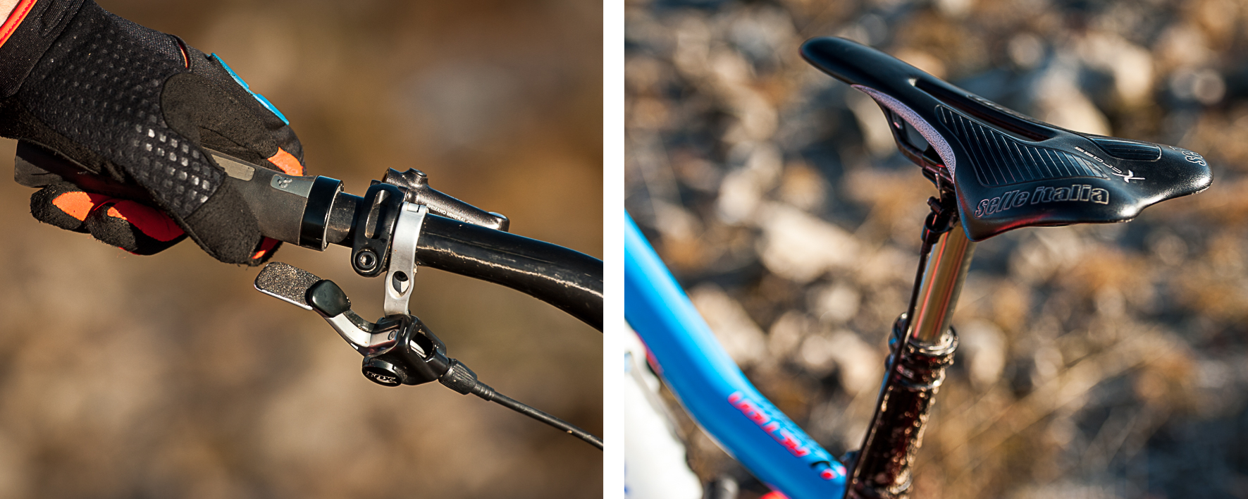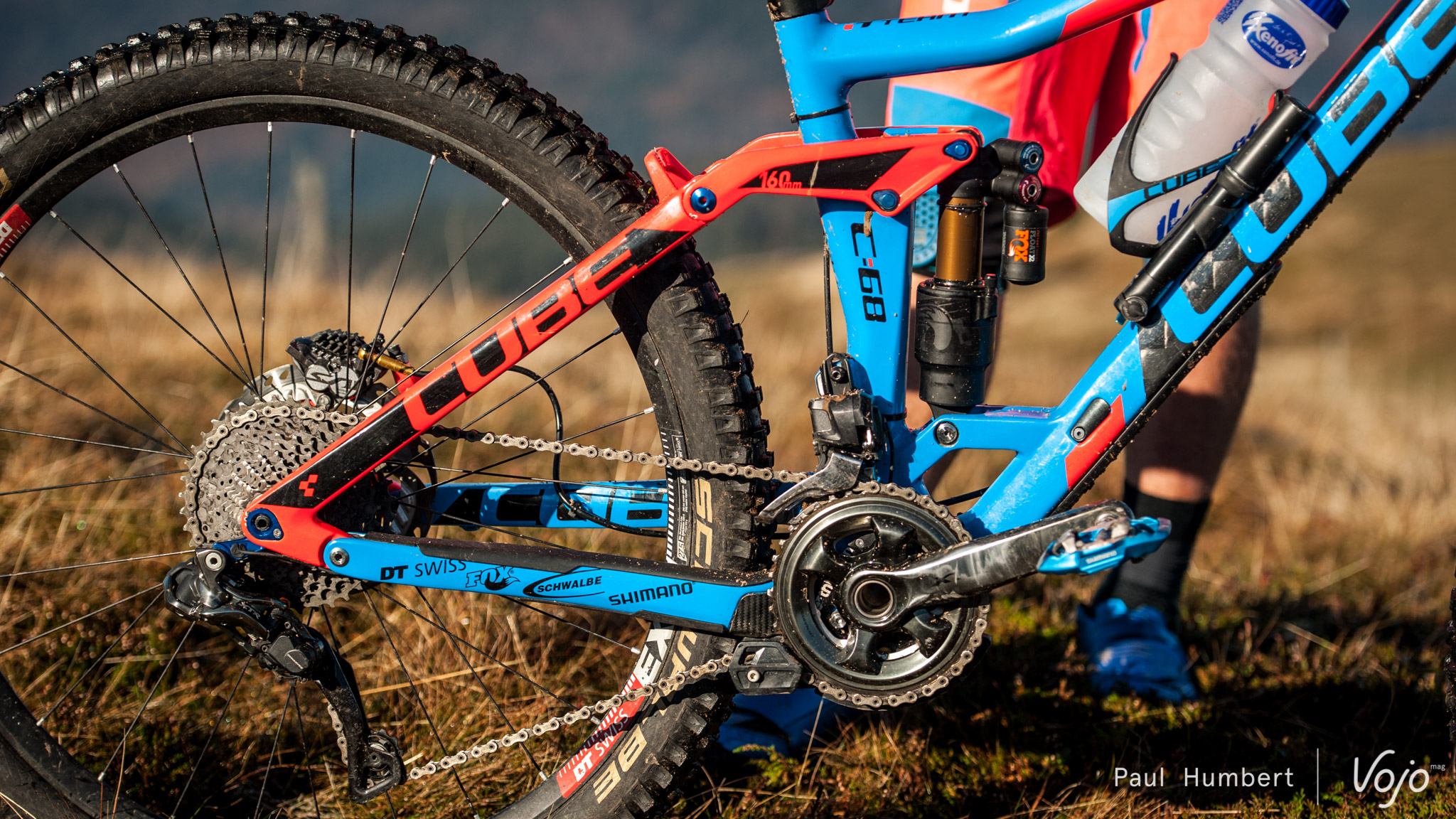 Nicolas Lau a customisé sa commande de tige de selle fox avec un petit ajout de papier de verre sur la commande pour avoir un maximum de grip. Les rumeurs d’une nouvelle tige de selle télescopique Fox, alimentées par la marque elle-même qui a « teasé » quelques photos sur son compte Instagram, sont confirmées par le pilote qui n’a pourtant pas encore eu l’occasion d’en tester un exemplaire. Il continue donc à utiliser ce modèle 3 positions nécessitant un passage de cable en externe. Ce nouveau Cube Stereo C:68 est pourtant conçu pour accueillir des modèles « stealth » assurant un passage interne.