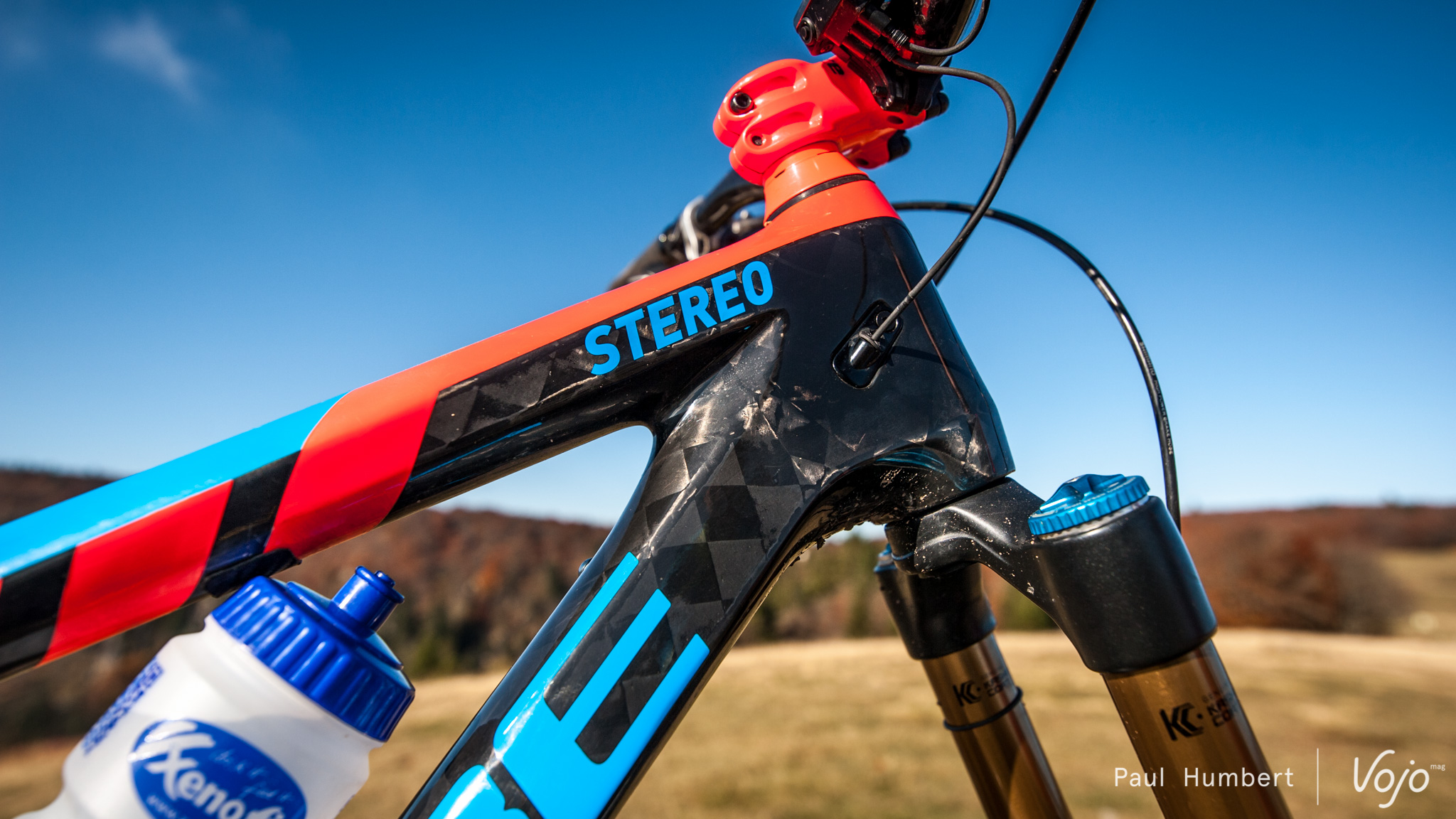 Sur le nouveau Stereo, la douille de direction est plus haute et elle a été renforcée, ce qui a permis au pilote alsacien (qui aime rouler avec un poste de pilotage assez haut) de retirer deux des entretoises qui surélevaient son poste de pilotage, soit presque 1cm.