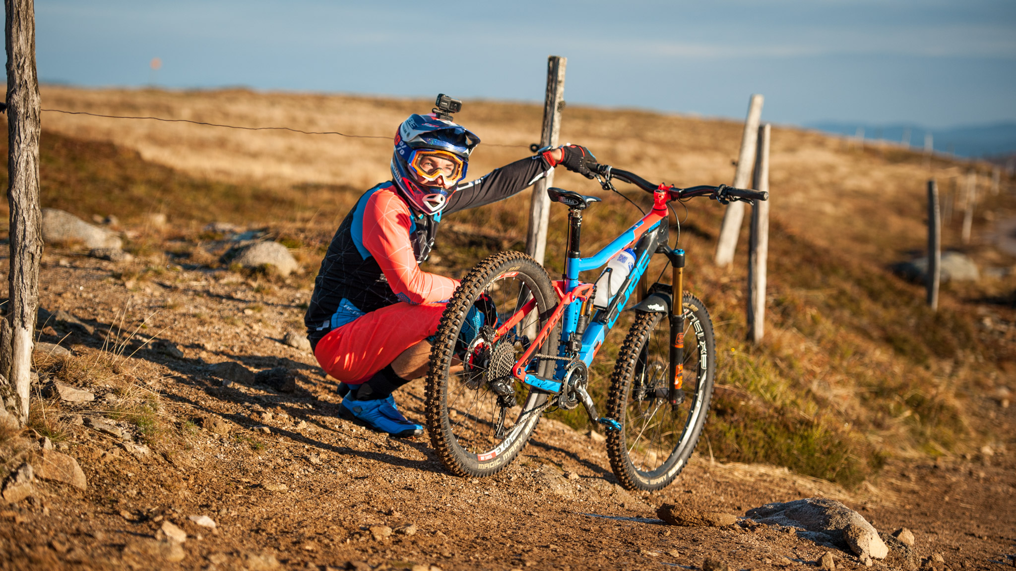 Longtemps partagé entre son Stereo et son Fritzz 180, le pilote a revu ses préférences depuis l’arrivée du Stereo C:68 : J’adore aller en bikepark à fond avec mon Fritzz 180 mais avec le nouveau 160 qui vient d’arriver, j’ai fait mon choix : ce sera le Stereo 160 avec un ressort. Le nouveau bike est rigide et dispose d’angles un peu plus « slack ». Le chassis est là et maintenant on choisit l’amorto en fonction du terrain. Si ça pédale, on va utiliser un amorto avec un lockout et si on veut faire du park ou des trucs qui défoncent, on utilise un ressort. J’ai toujours mon 180 mais je n’en n’ai pas recommandé pour l’année prochaine… j’ai commandé un DH !