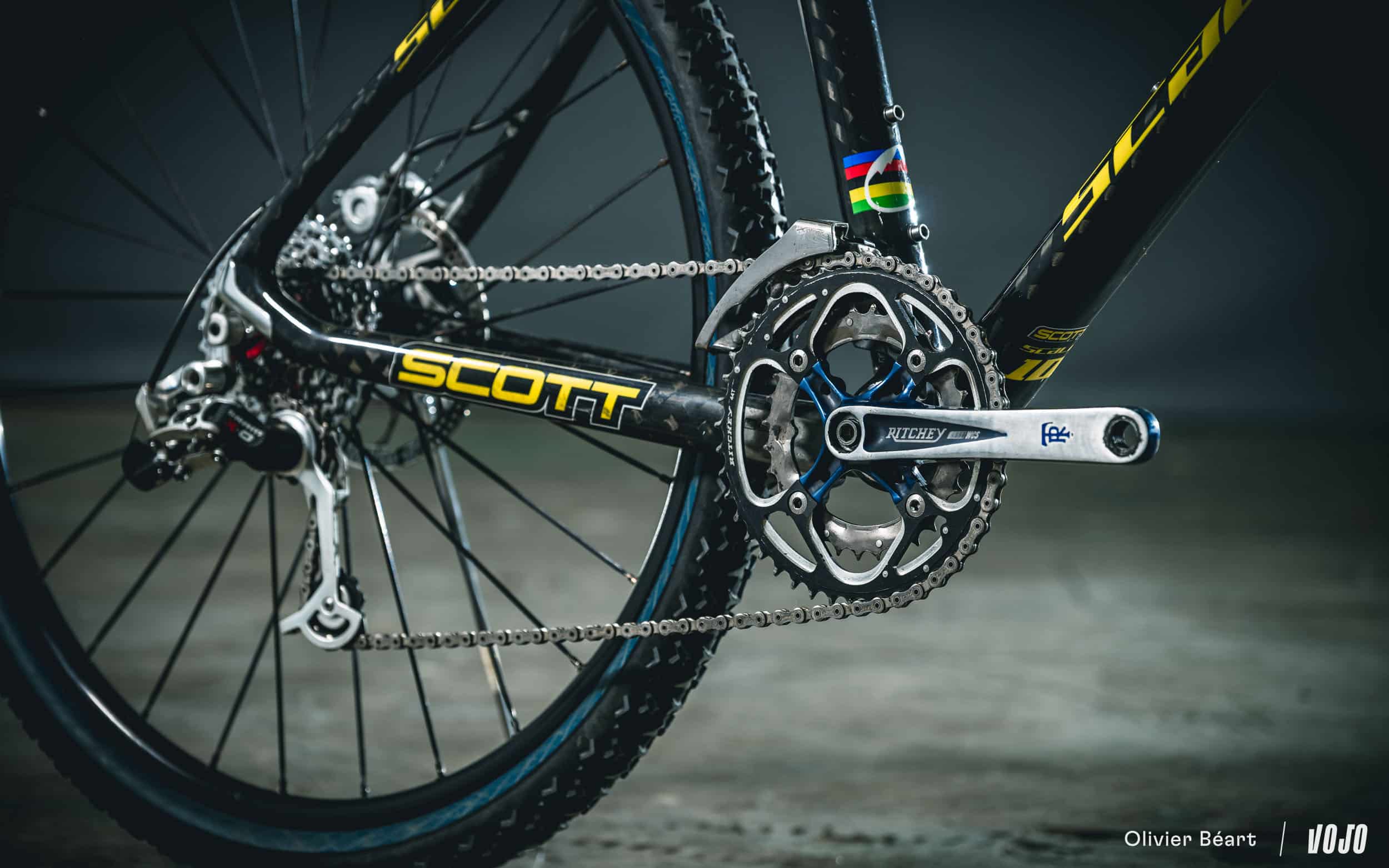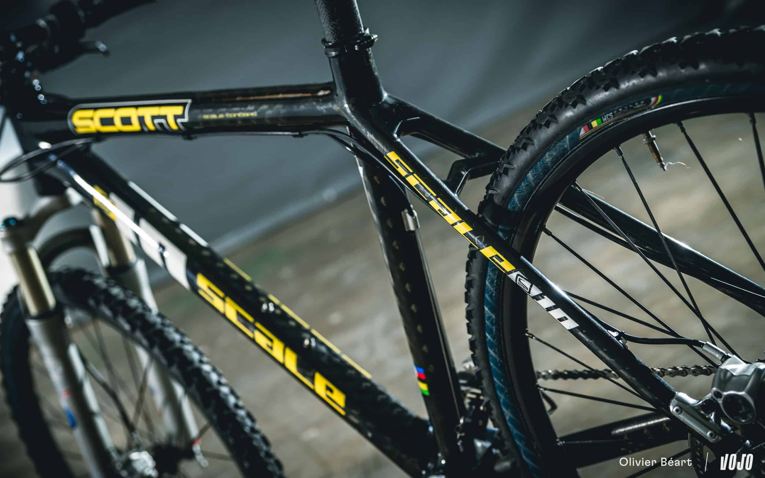 En effet, alors que beaucoup de ses rivaux roulaient encore sur des cadres en aluminium (dont son dauphin Stéphane Tempier qui, bien que dans une équipe soutenue par Scott, n’avait droit qu’au Scott Team en alu), ou sur des carbone bien plus lourds, le Scott Scale 10 a marqué son époque en étant le premier cadre de série à passer sous la barre symbolique du kilo.