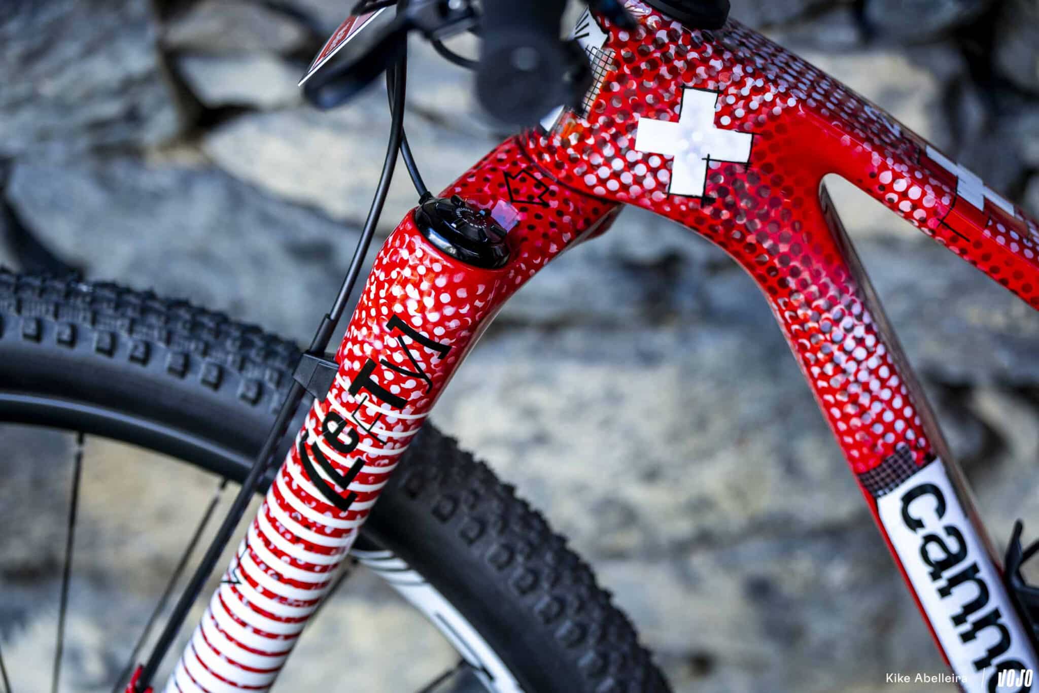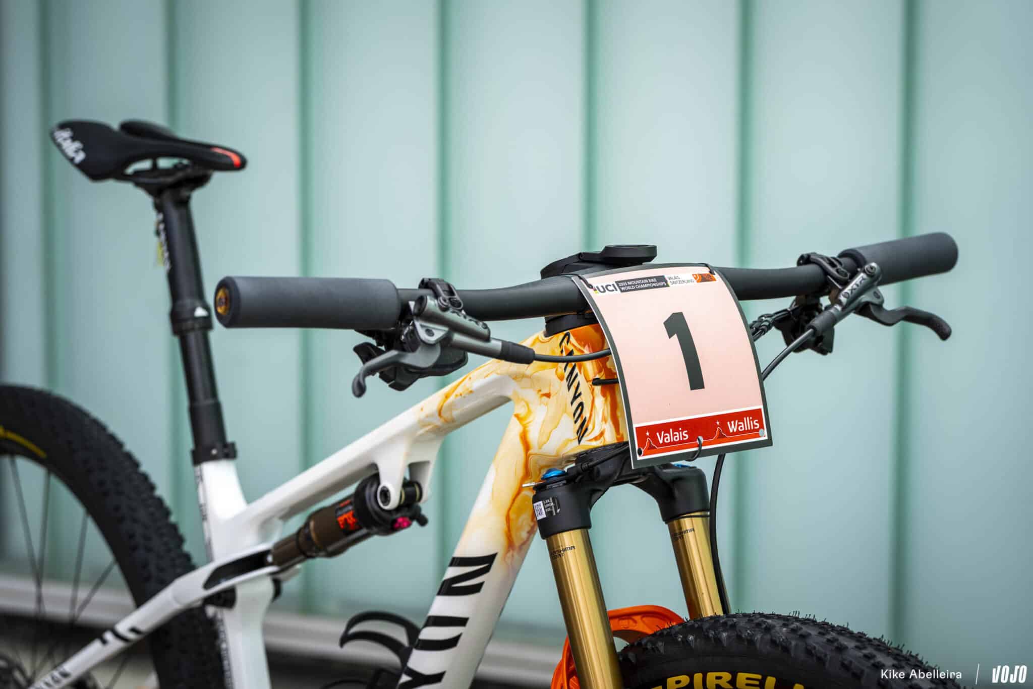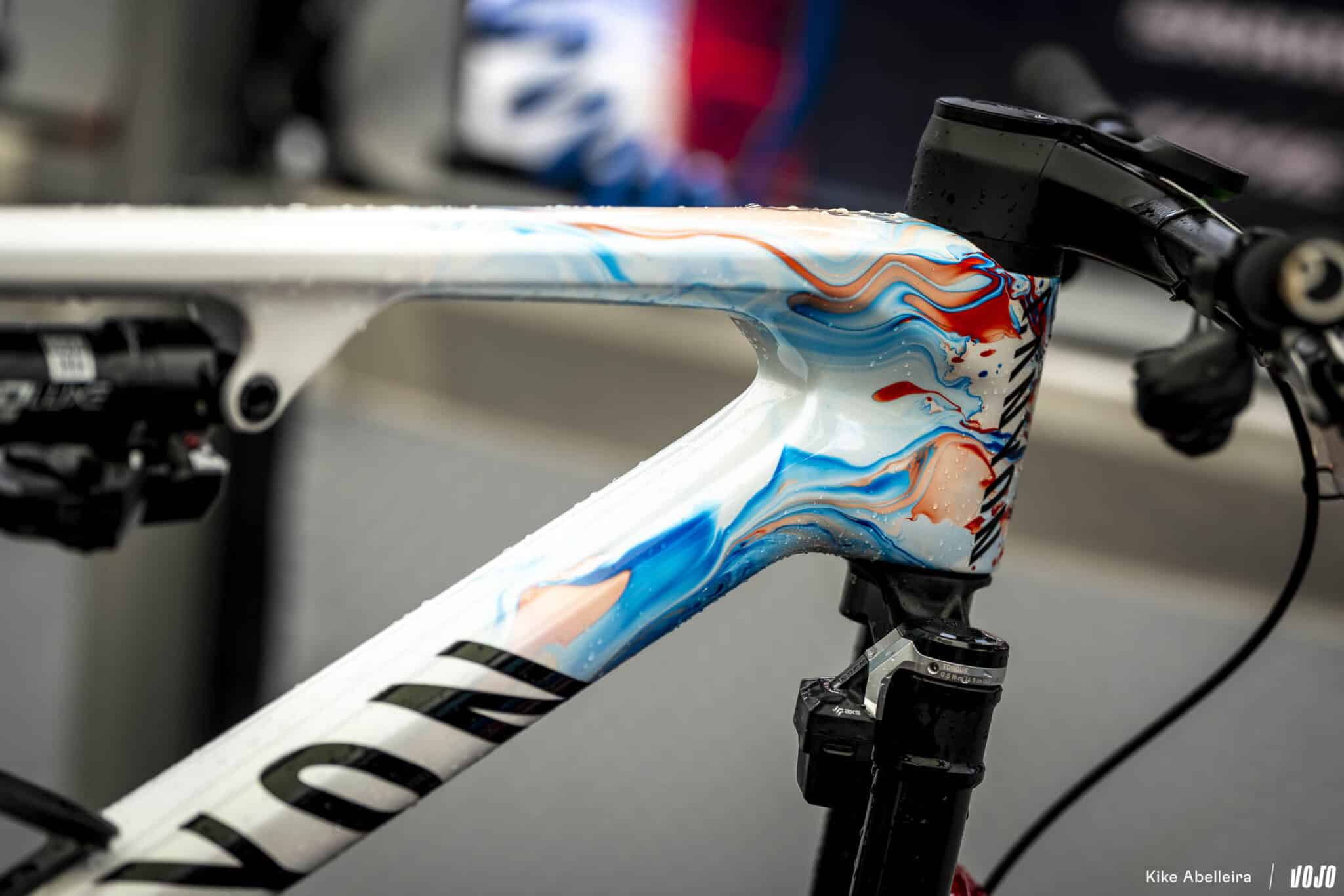 Comme à chaque édition, les championnats du monde sont aussi une grande fête pour les yeux. Les équipes et leurs partenaires en profitent pour sortir des vélos inédits, habillés de livrées spéciales aux couleurs de leurs pilotes. Au-delà du coup de projecteur médiatique, c’est aussi une façon de donner un supplément de motivation avant la course la plus attendue de l’année. On vous emmène faire un tour d’horizon des plus belles machines de cross-country aperçues dans les paddocks :
