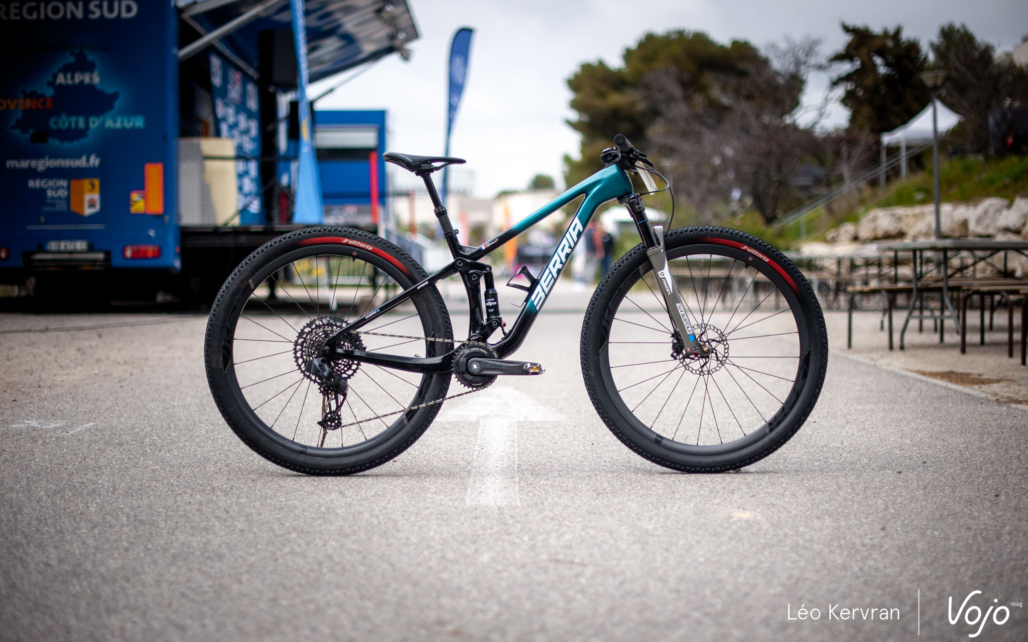 Roues Mavic Crossmax SL Ultimate et pneus prototypes Hutchinson pour le train roulant. Le dessin des pneus est celui des Skeleton, ce qui signifie que la nouveauté se cache soit dans la carcasse soit dans la gomme.