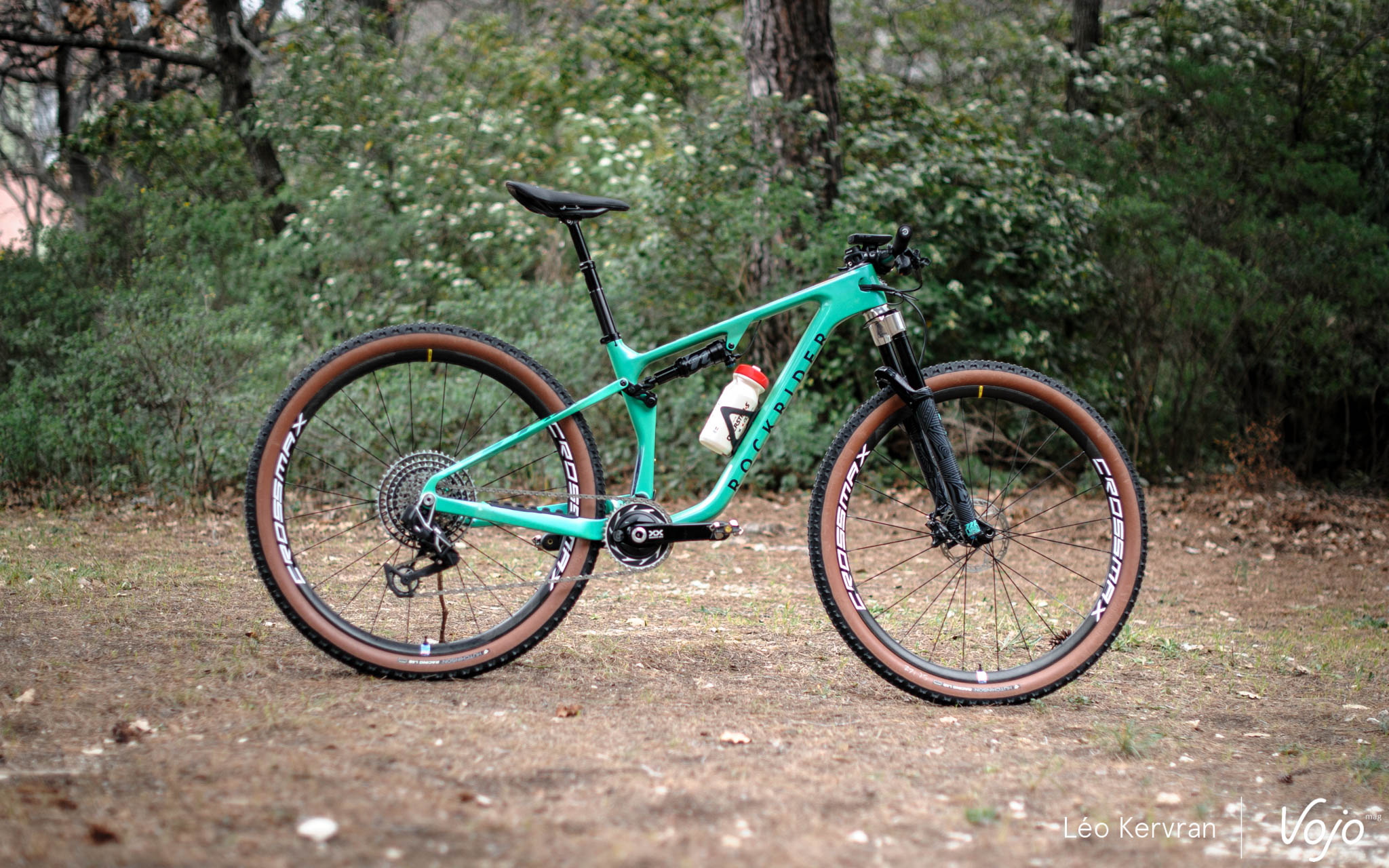 D’après ce qu’on a pu apprendre, le cadre est annoncé à 1 540 g et le châssis est conçu autour d’un débattement de 120 mm à l’avant comme à l’arrière. On remarque un imposant pontet de rigidification entre les haubans, pas si courant en XC.