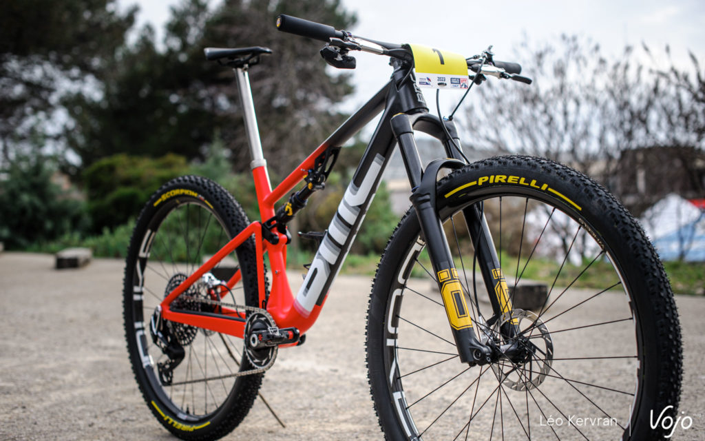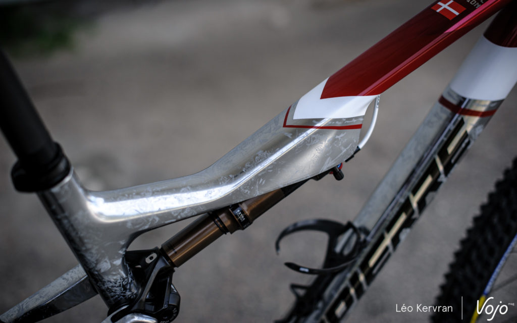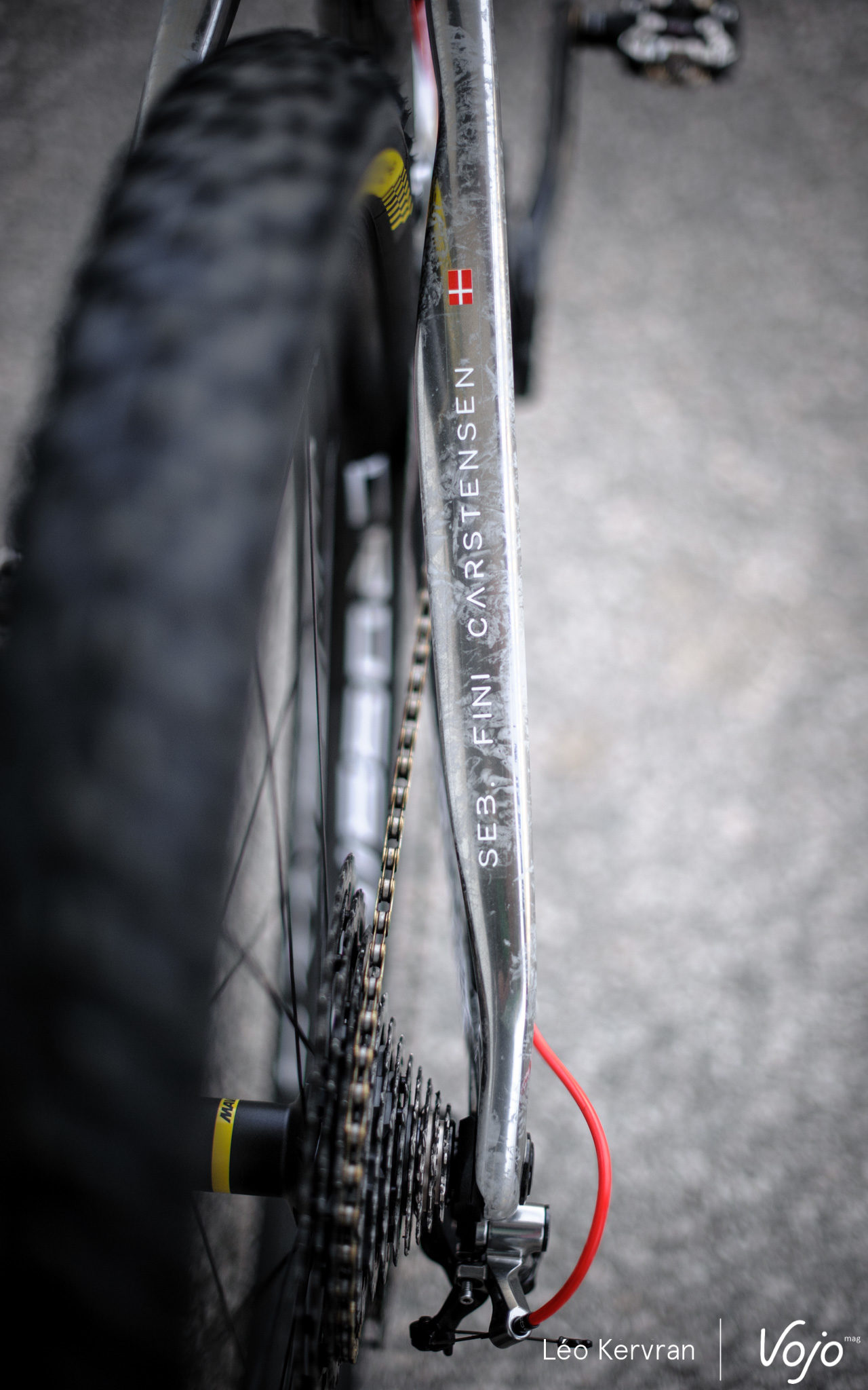 Enfin, on termine notre tour des vélos avec le Lapierre XR de Sebastian Fini, le champion du Danemark qui porte depuis cet hiver les couleurs de Lapierre-Mavic Unity.
