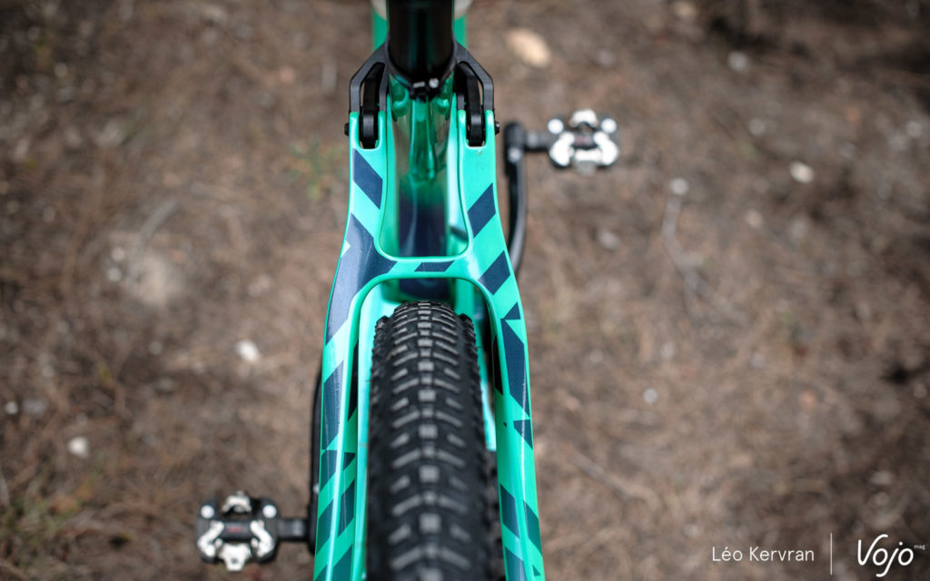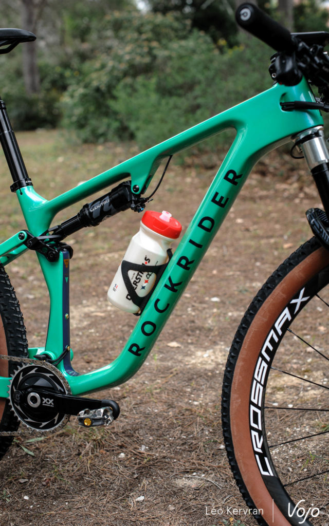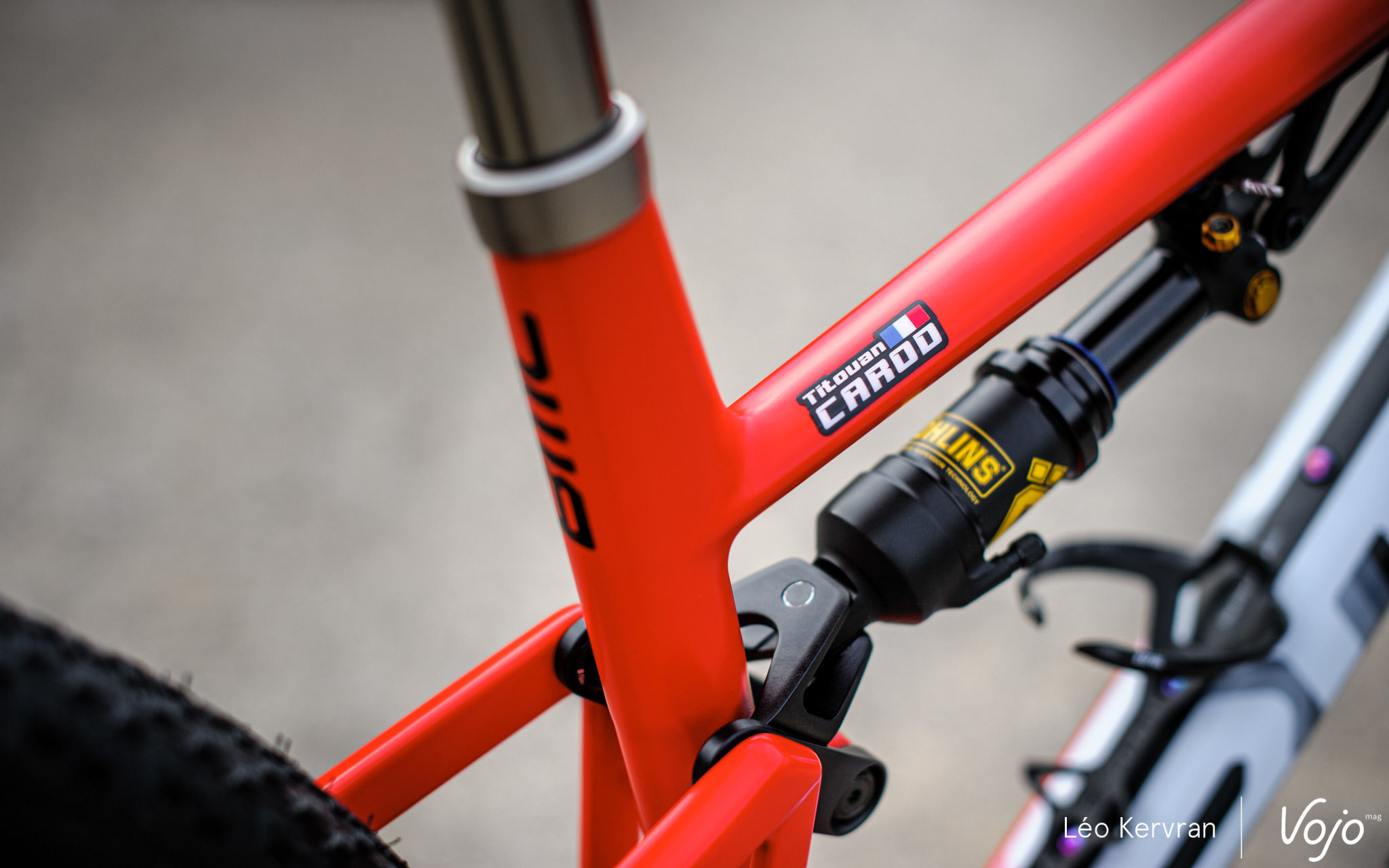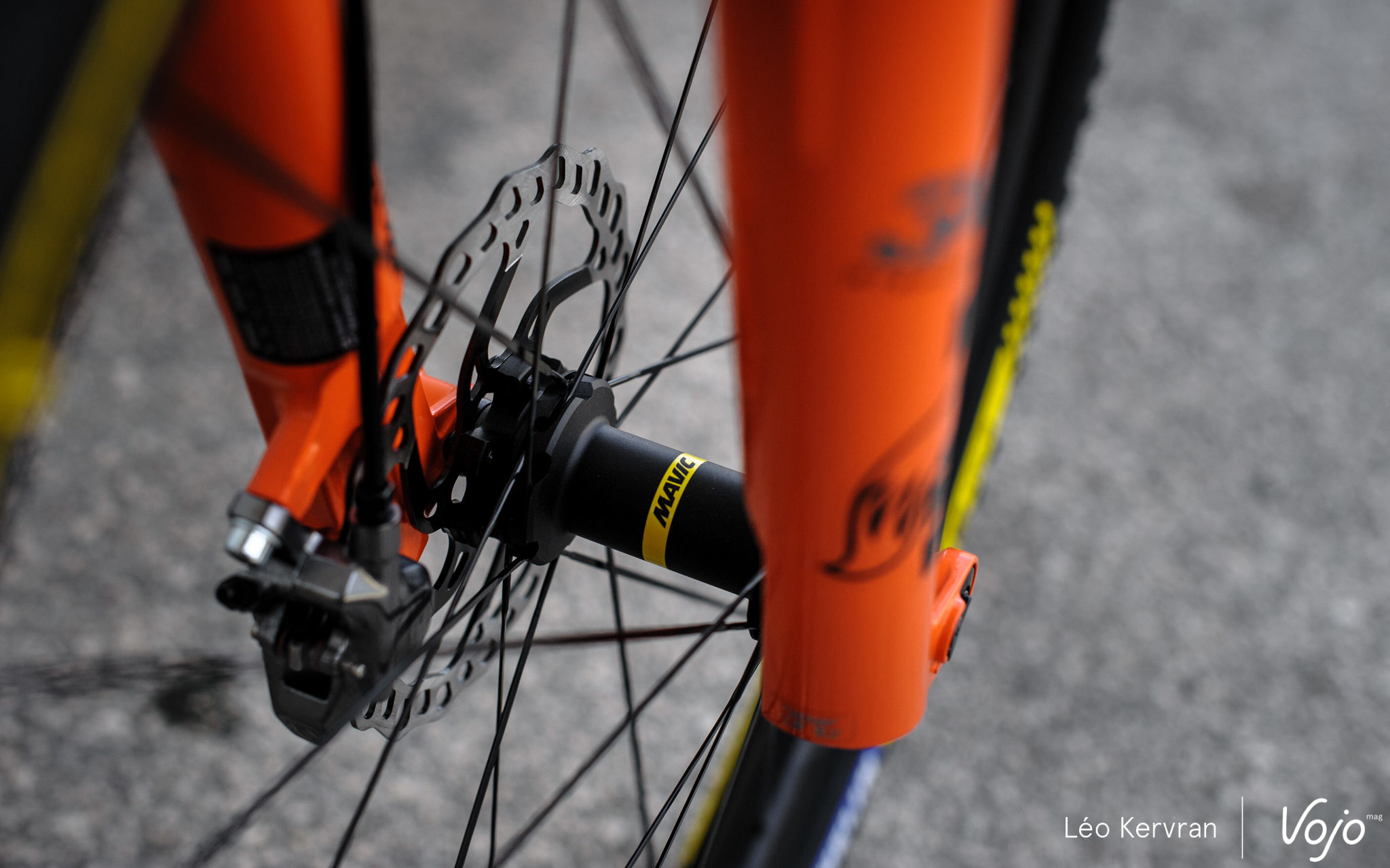 Roues Mavic Crossmax SL Ultimate et pneus prototypes Hutchinson pour le train roulant. Le dessin des pneus est celui des Skeleton, ce qui signifie que la nouveauté se cache soit dans la carcasse soit dans la gomme.