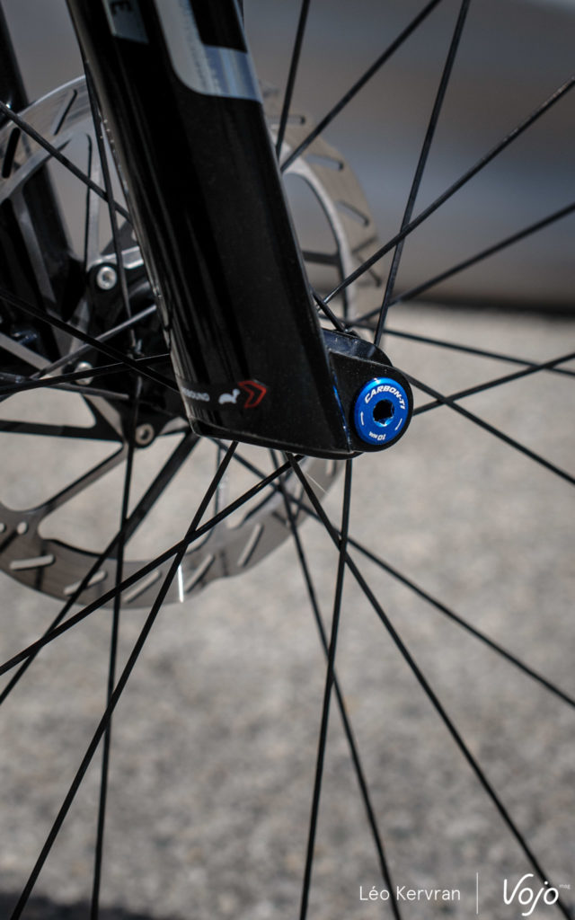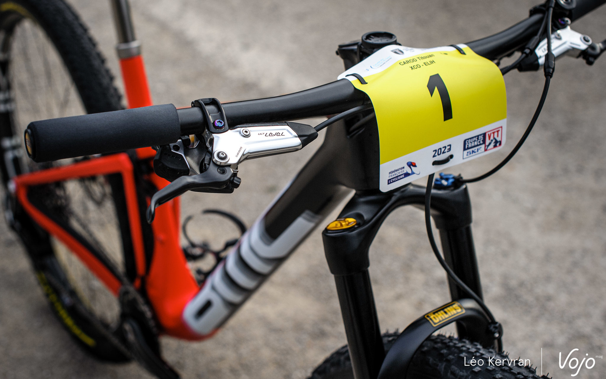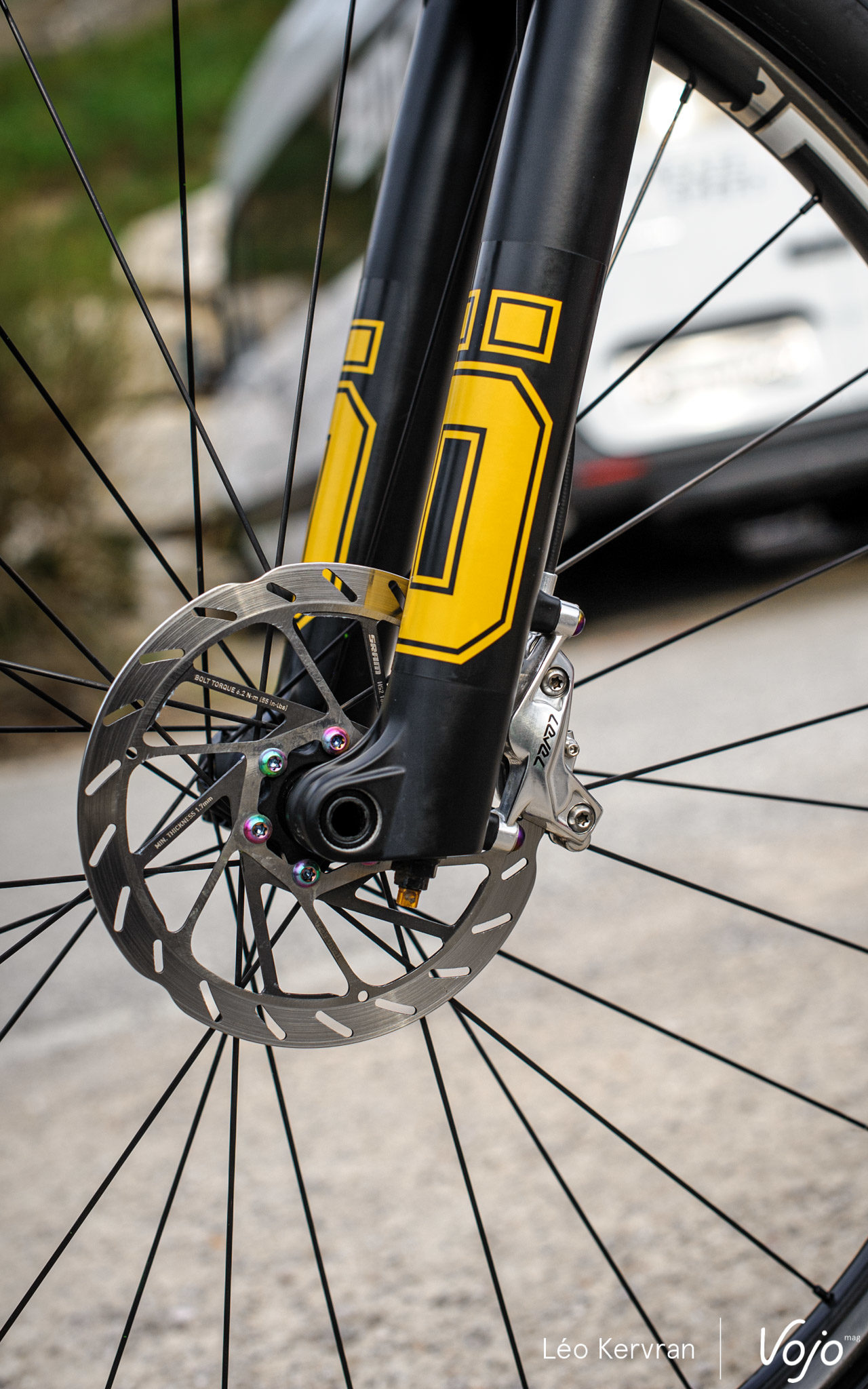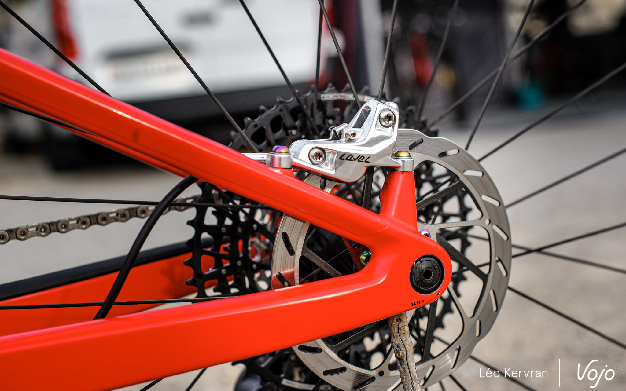 Vous l’avez peut-être remarqué sur les photos d’au-dessus : Titouan Carod roule avec des Level… 4 pistons ! Nouvelle addition à la gamme Sram, ces freins sont voués à remplacer les G2 tout en étant plus légers (de 10 g) que des Level 2 pistons. On a pu les tester et on vous en reparle dans quelques jours !