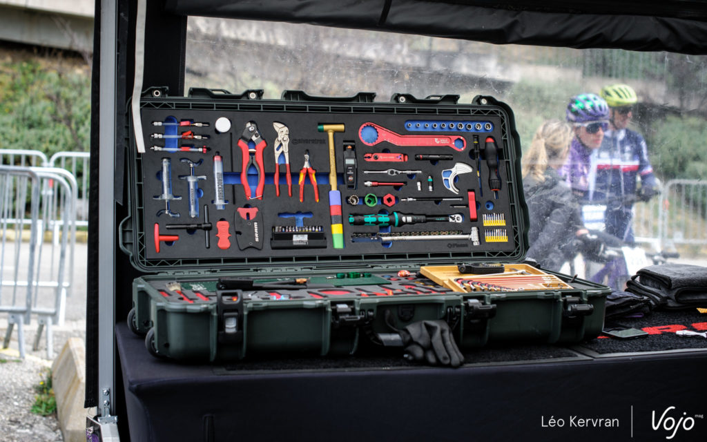 Un tour des paddocks n’est jamais complet sans quelques photos de caisses à outils et cette fois, on vous laisse avec celles des mécaniciens du Canyon Cllctv XCO. Plutôt carbone et aimants comme Thibault Riviere ou mousse découpée avec une précision digne d’un laser comme Alvaro Dominguez ?