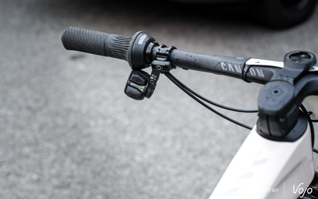 TRP est partenaire du Rockrider Ford Racing Team, mais bien que la marque taïwanaise vienne de présenter sa nouvelle transmission, cette association ne concerne que les freins. Pour le groupe, l’équipe fait confiance à Sram et comme les autres grandes équipes, le nouveau XX SL est déjà sur les vélos. Notez les deux petites protections toujours présentes sur la commande, qui permettent de remplacer facilement les boutons en caoutchouc. A l’heure où nous avons pris ces photos, Maxime Marotte n’avait pas encore arrêté son choix entre la forme concave et la forme convexe.