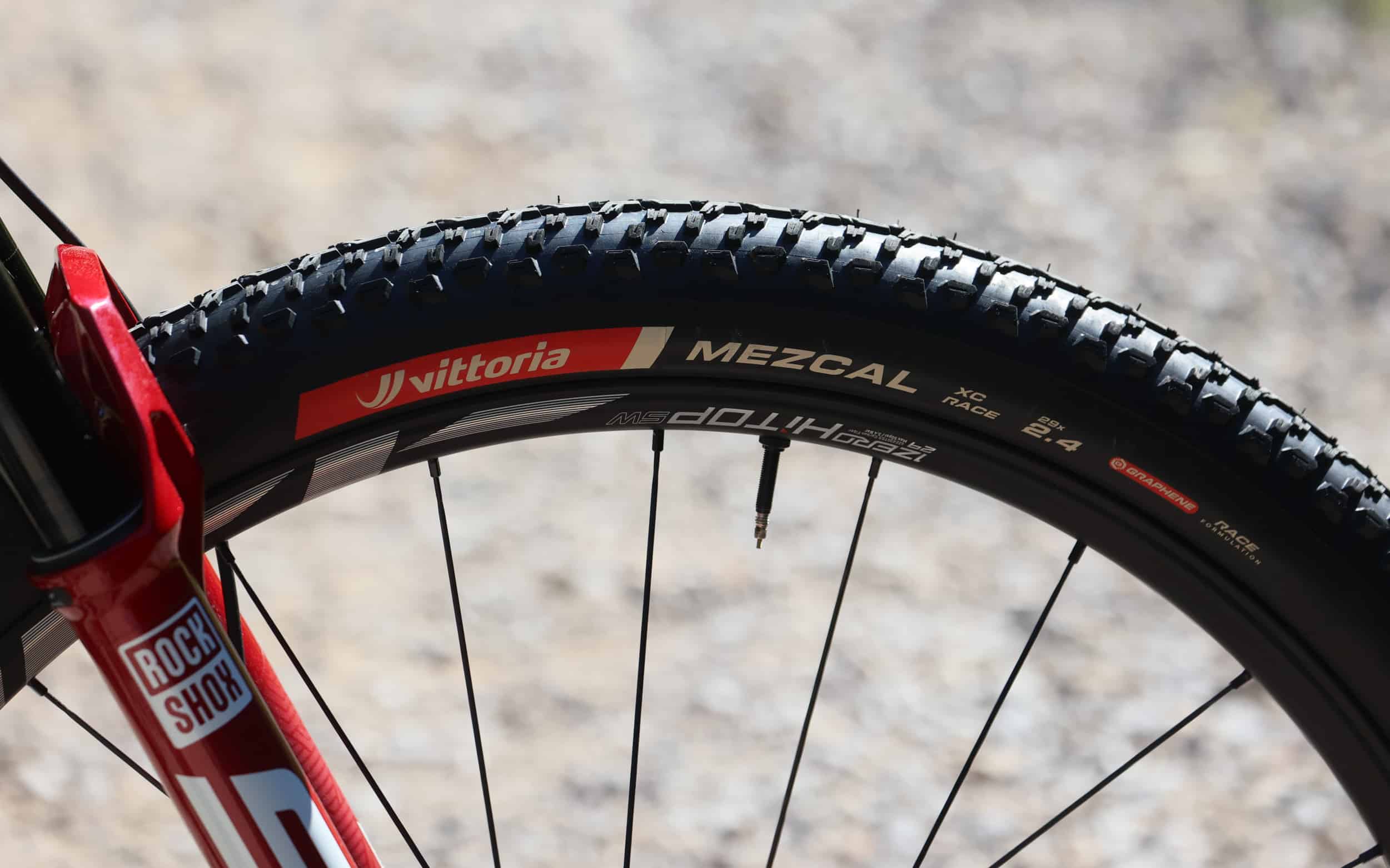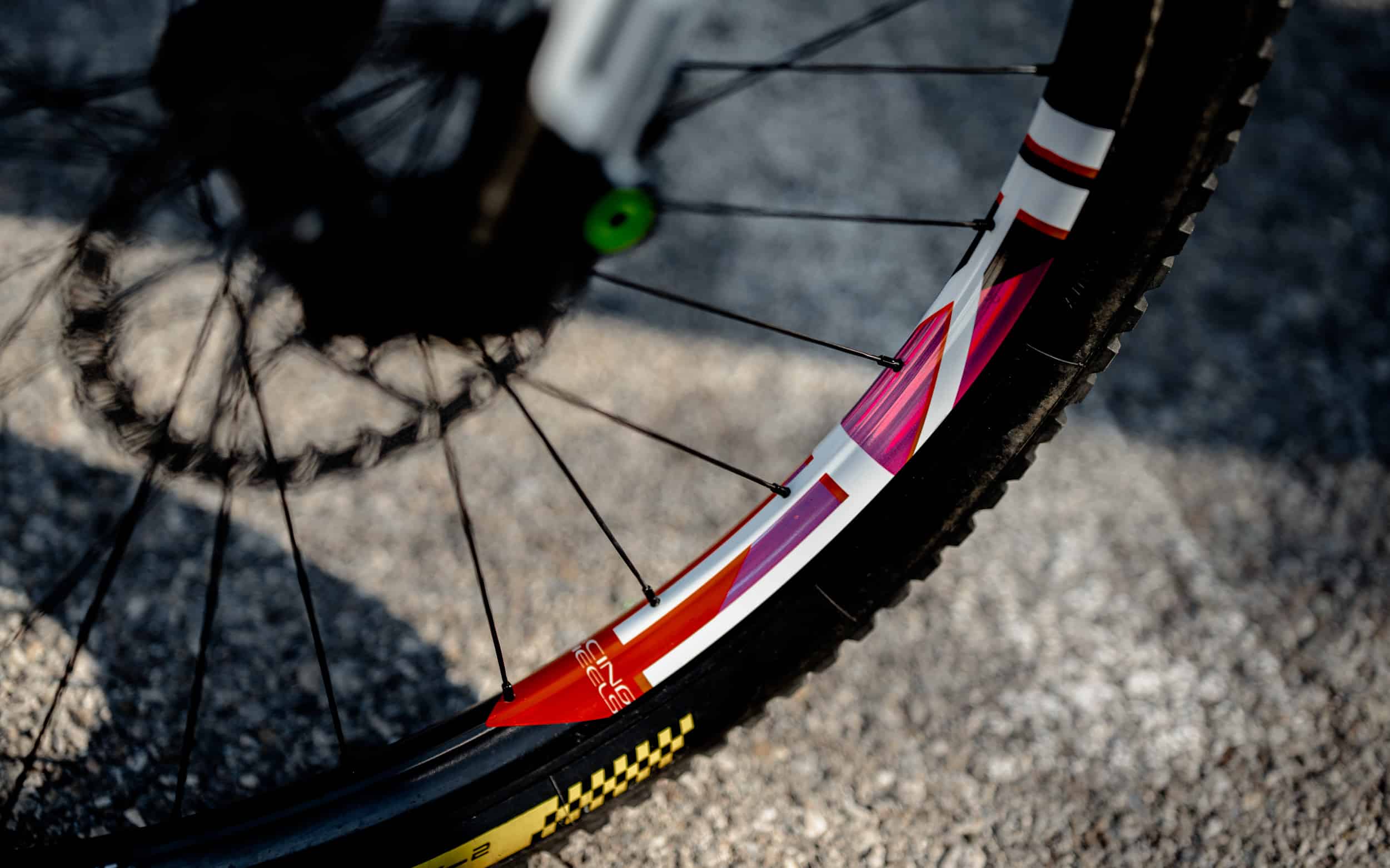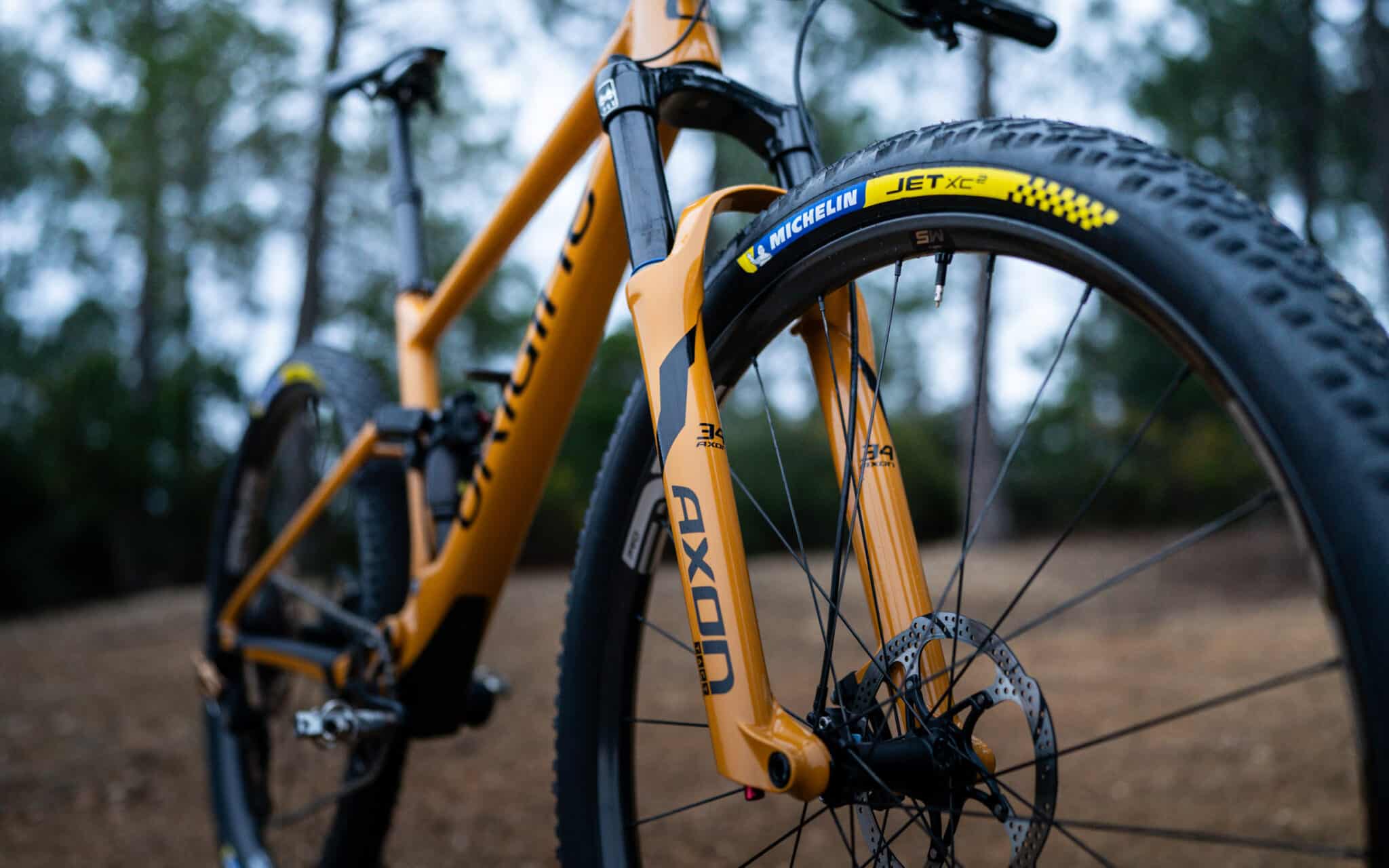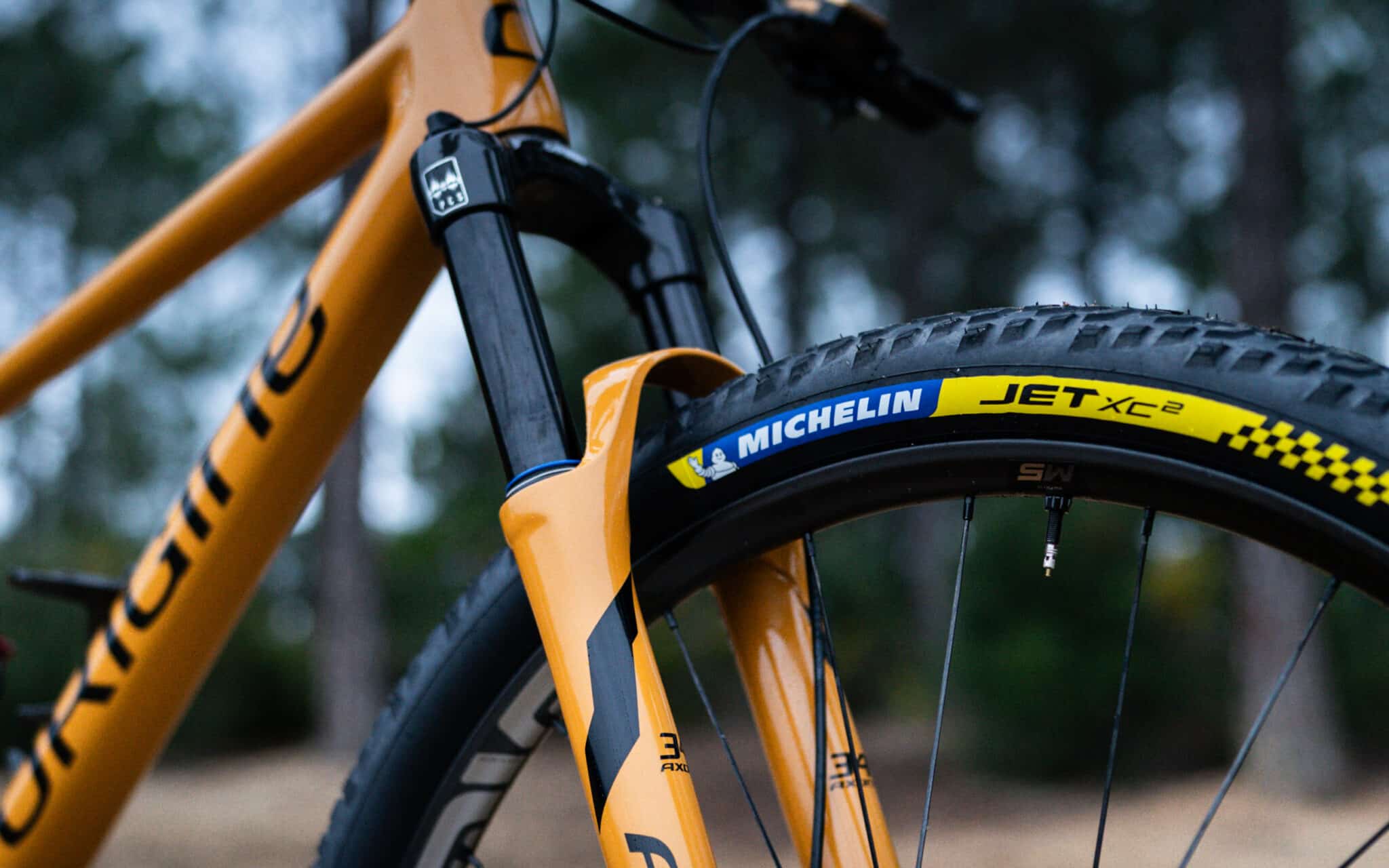 Mix des deux vélos que l’on a vu juste au-dessus au niveau du train roulant : roues Duke Lucky Jack et pneus Michelin (Force XC2).