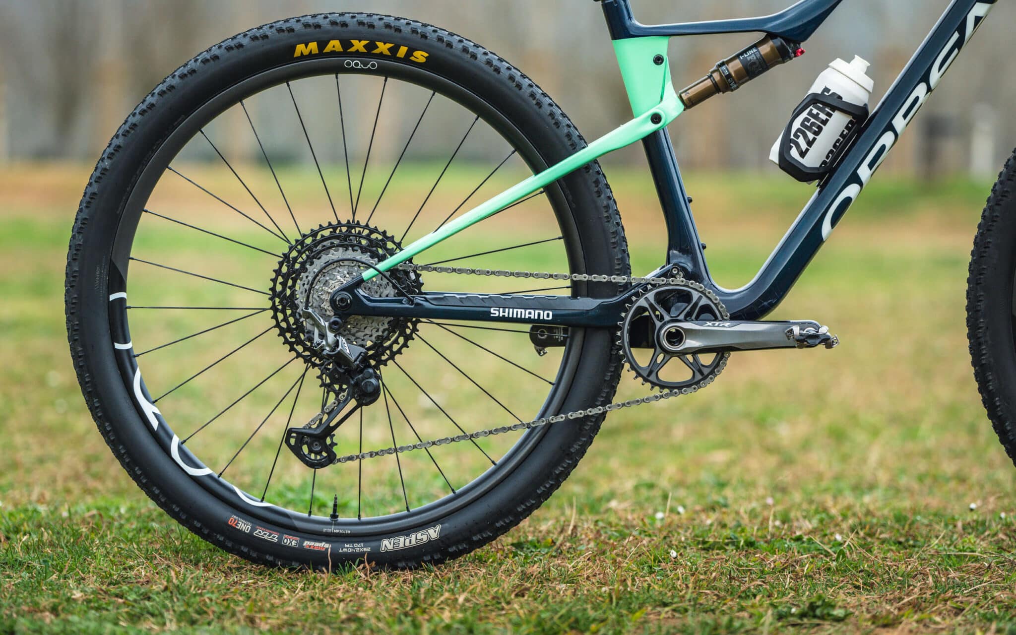 C’est désormais assez rare dans le peloton que pour être souligné, le vélo utilisé par l’Orbea Fox Factory Team n’est pas équipé de suspensions électroniques, ni même de transmission sans fil.