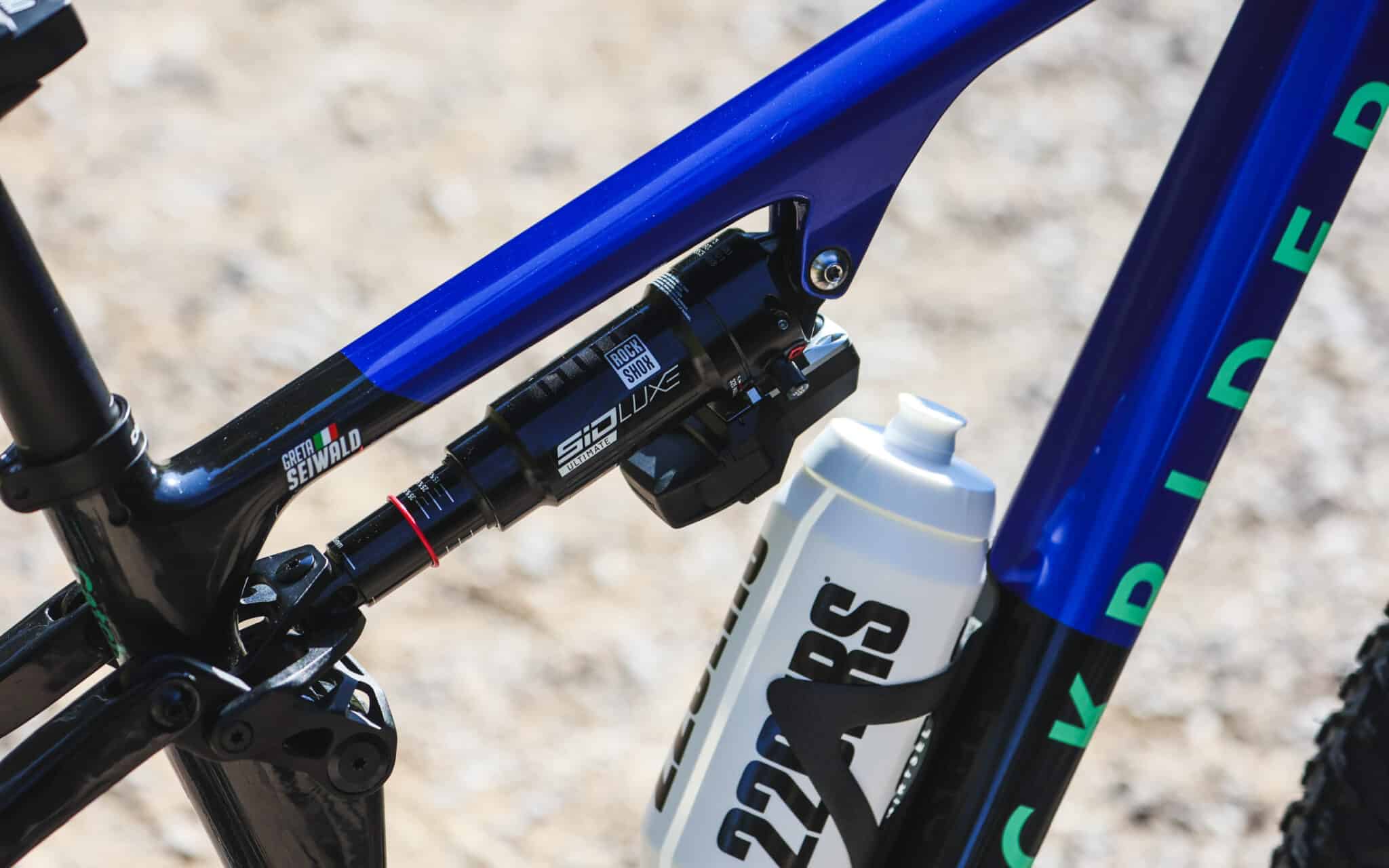 Impossible de passer à côté malgré leur très bonne intégration, les suspensions de chez Öhlins sont électroniques ! Encore au stade de prototypes, le BMC Factory Racing et Öhlins travaillent main dans la main au développement de ces futures suspensions, qui étaient déjà présentes sur le vélo de Titouan Carod et de Jordan Sarrou la saison dernière. On peut notamment apercevoir ce qu’on imagine être l’emplacement de la batterie/unité centrale au niveau de la jonction amortisseur/cadre. Difficile d’avoir plus d’infos à ce stade…